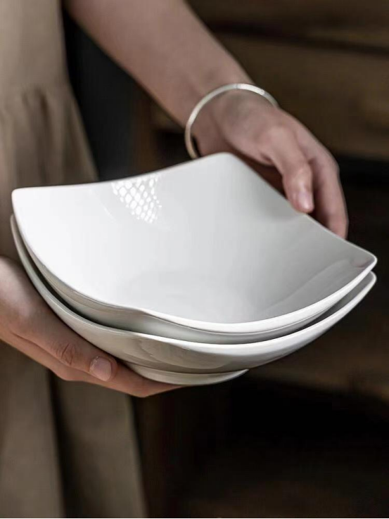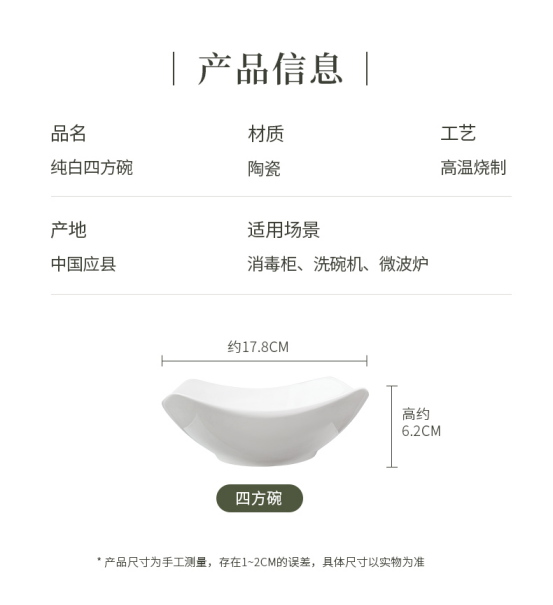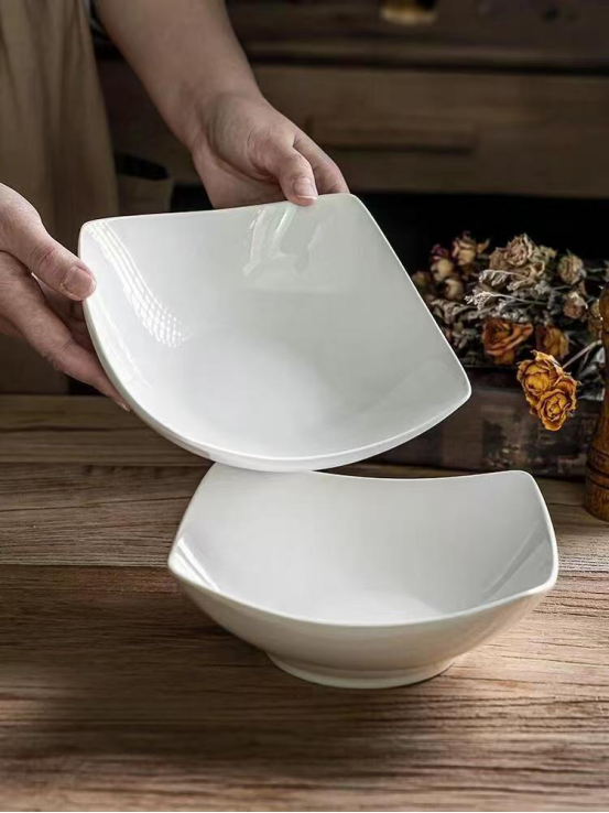 👊出口欧洲29.9💰4只清仓❗️温柔又不失纯净✨【孟垣纯白8英寸四方碗🌸】 ✅1350°高温烧成,釉下彩工艺🎈
