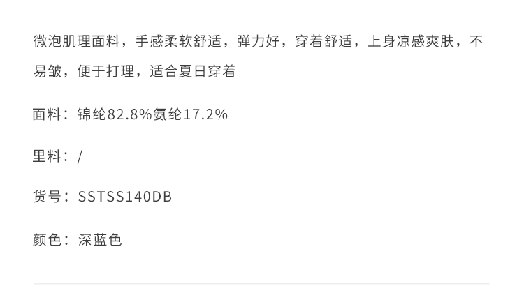 callisto深蓝色微泡肌理T恤 SSTSS140C