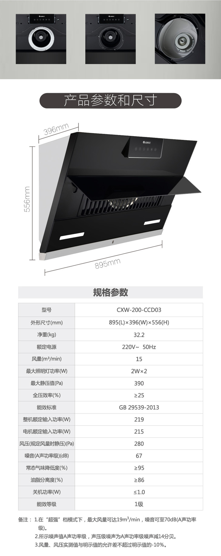格力·侧吸式油烟机 CXW-200-CCD03顶 黑色