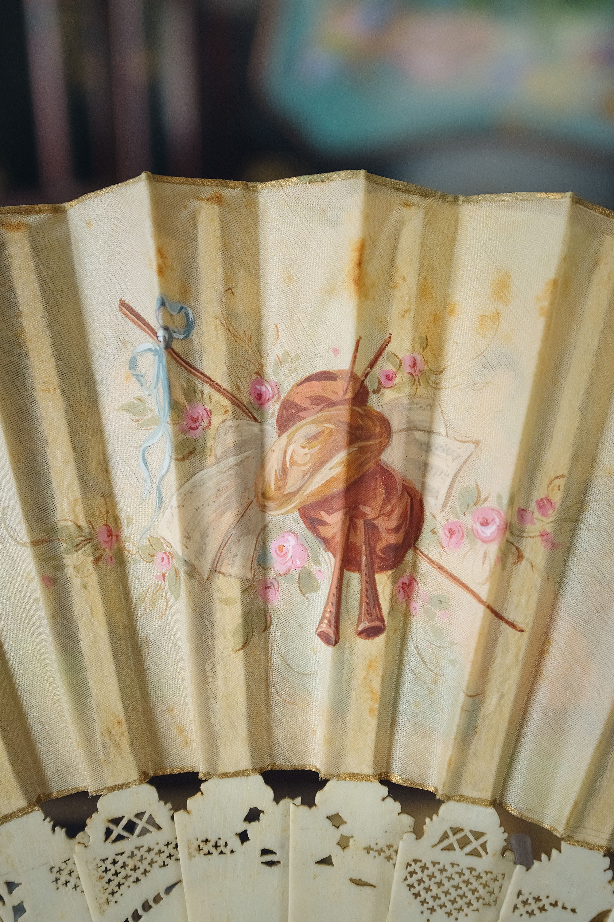 独角鹿西洋古董19世纪末20世纪初西班牙艺术家Ruano Llopis签名创作卷叶纹描金骨雕扇骨装饰田园恋歌及神话主题手绘扇面双面折扇