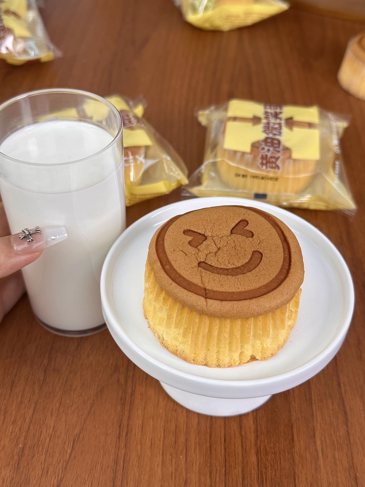 一打开袋子就是浓郁的奶香味!早上一杯牛奶+一块黄油微笑蛋糕,简直完美!蓬松蛋香浓郁的蛋糕,一口下去,直接上头的幸福甜蜜口感。