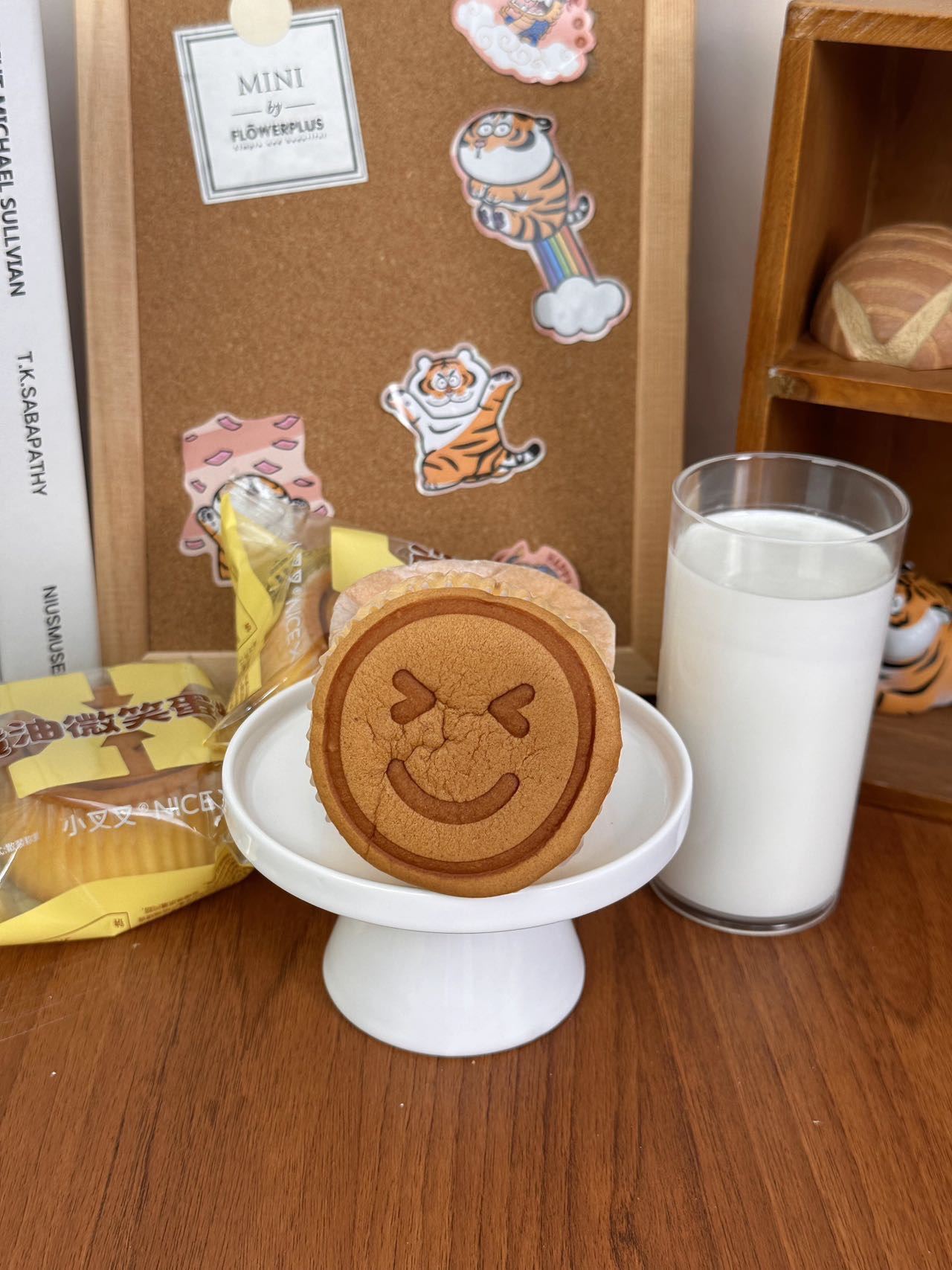 刚拿到这款蛋糕的时候,微笑的表情就吸引到我了,早餐来一块,开启一整天的美好心情~