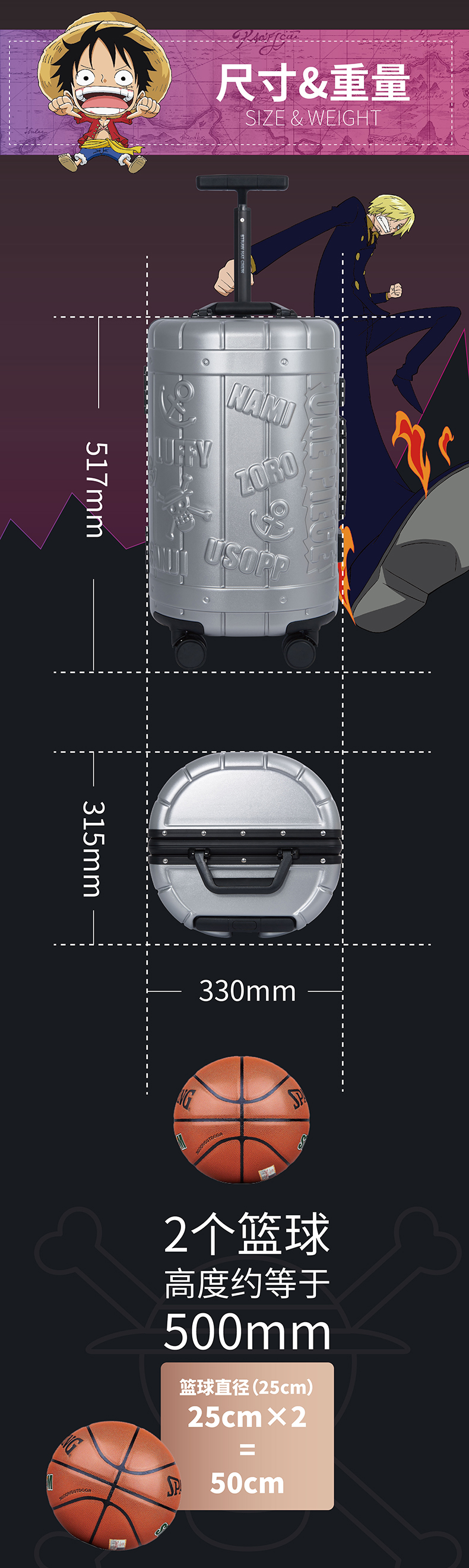 银座X航海王IP正版授权20寸酒桶箱A6623