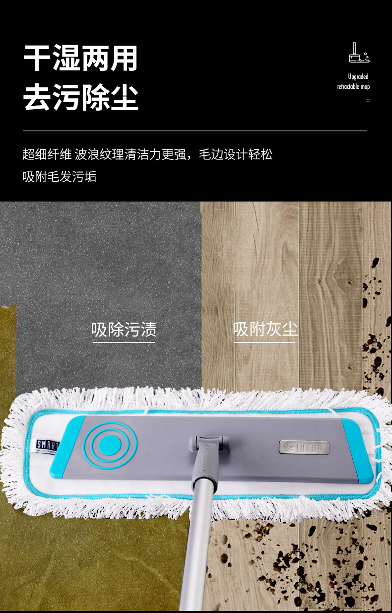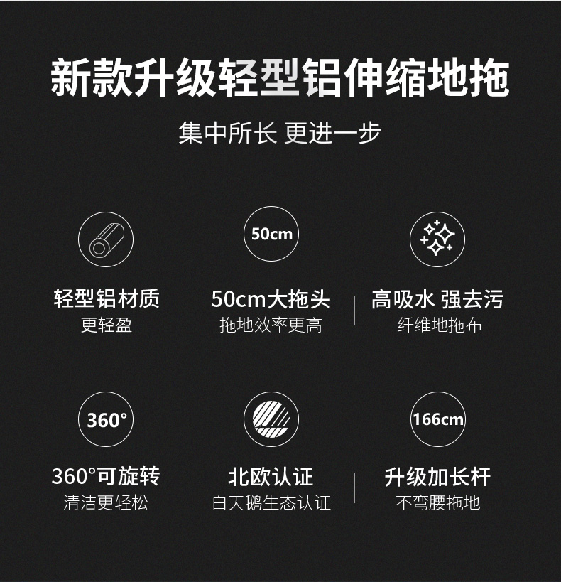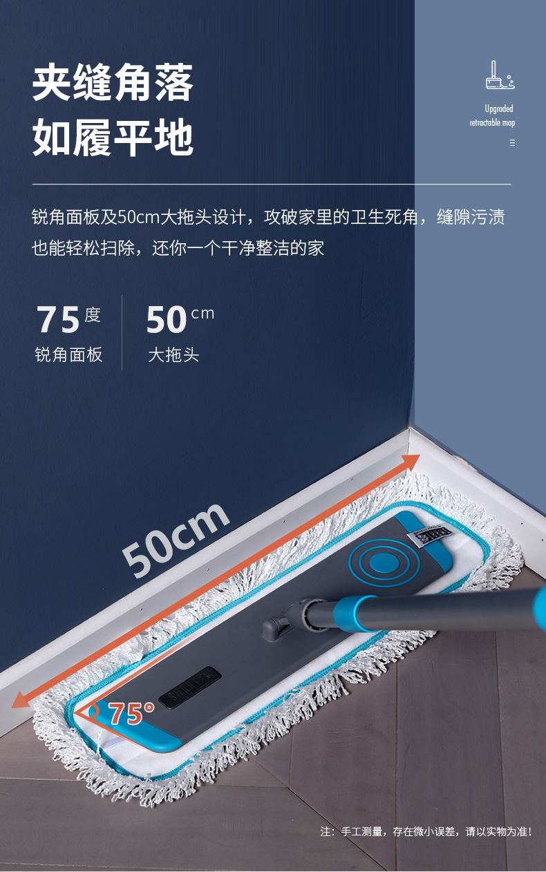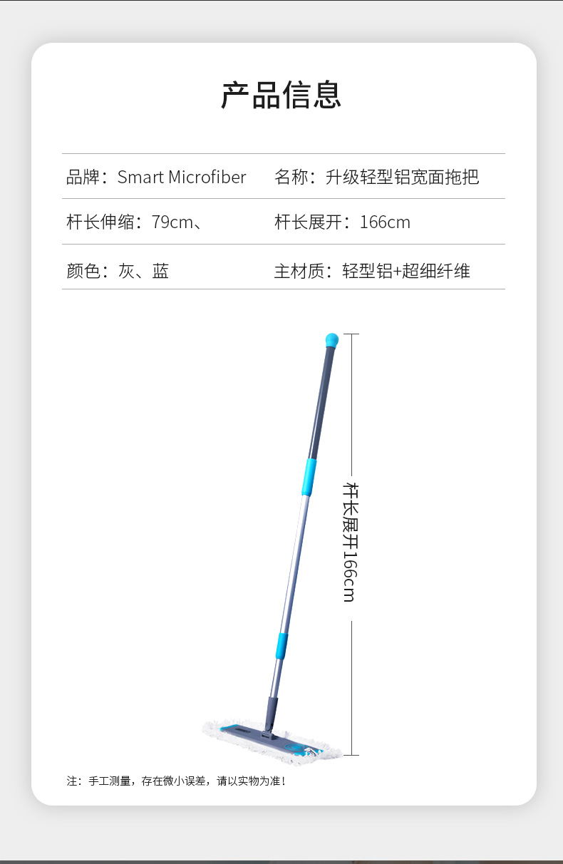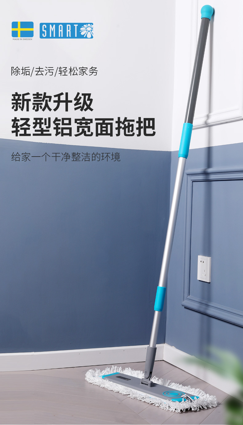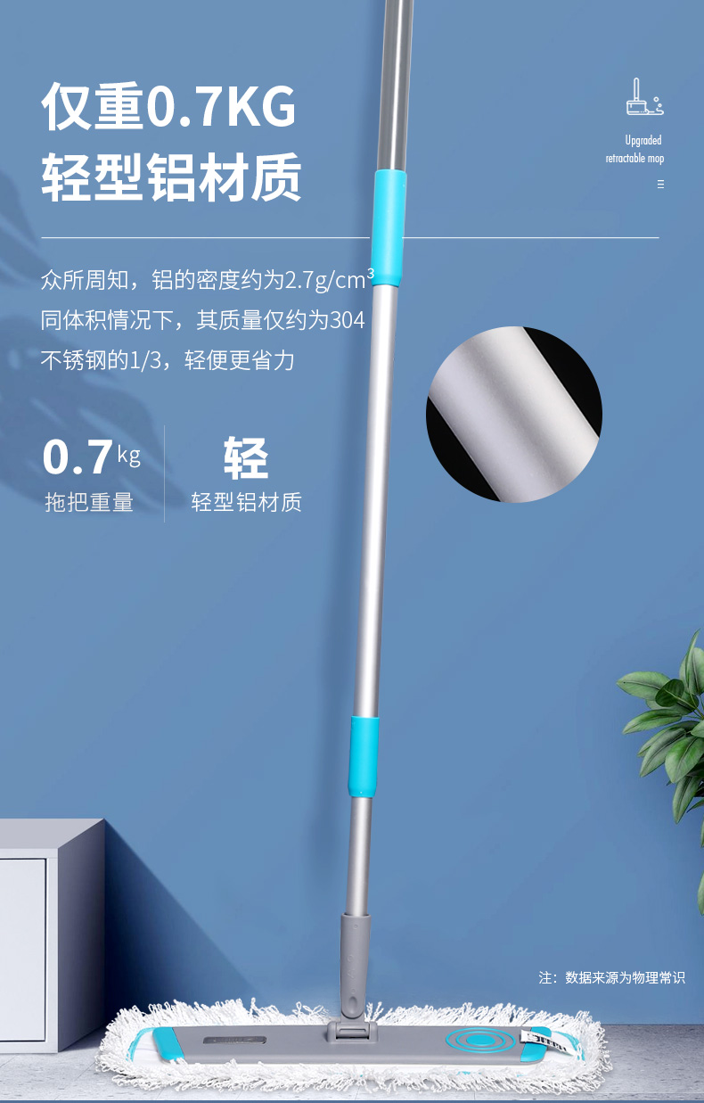利快平板拖把瑞典进口升级加长铝杆可伸缩大面板地拖50cm墩布