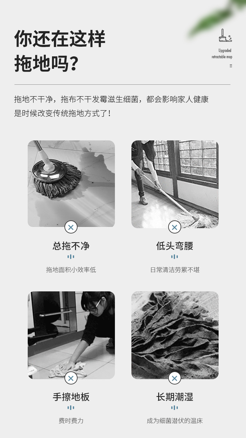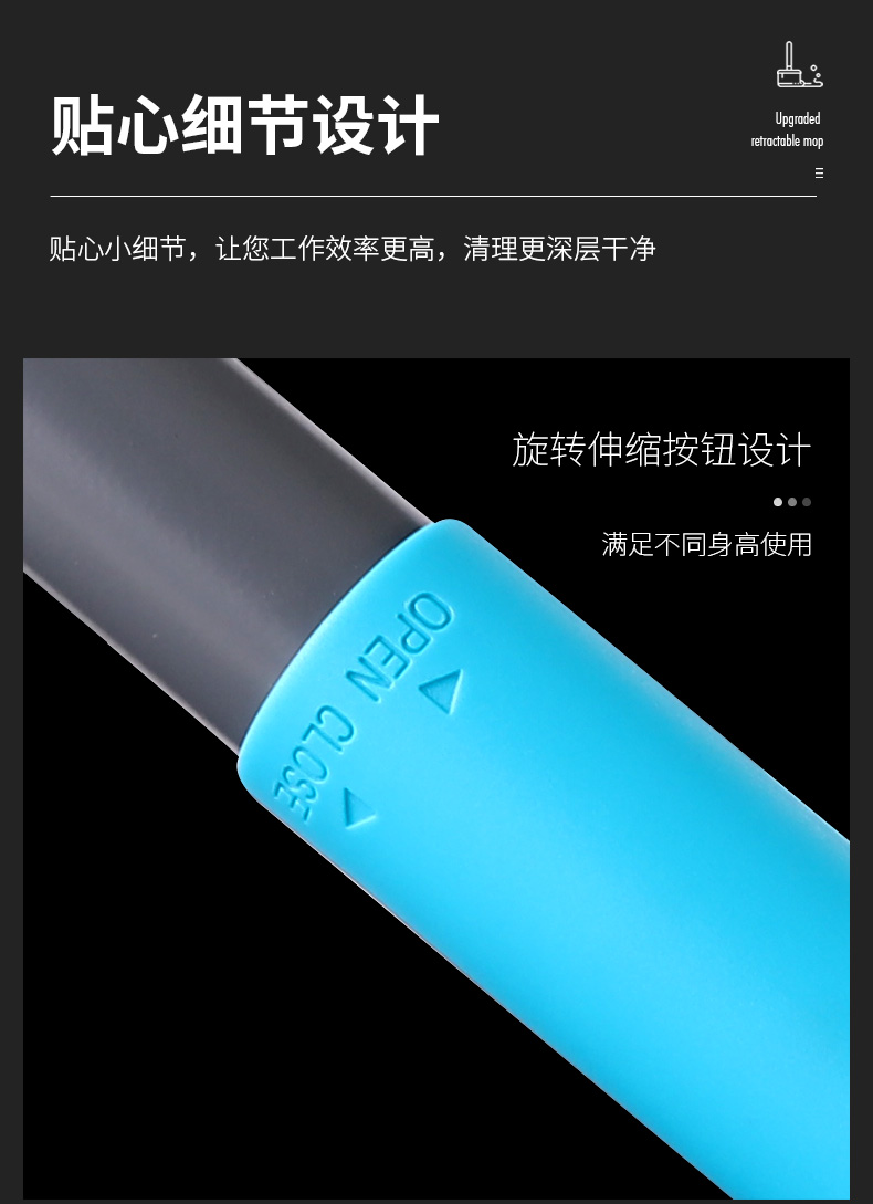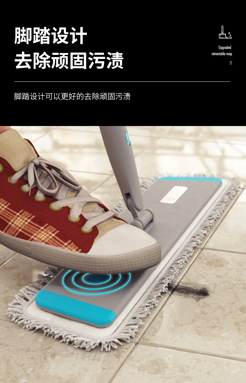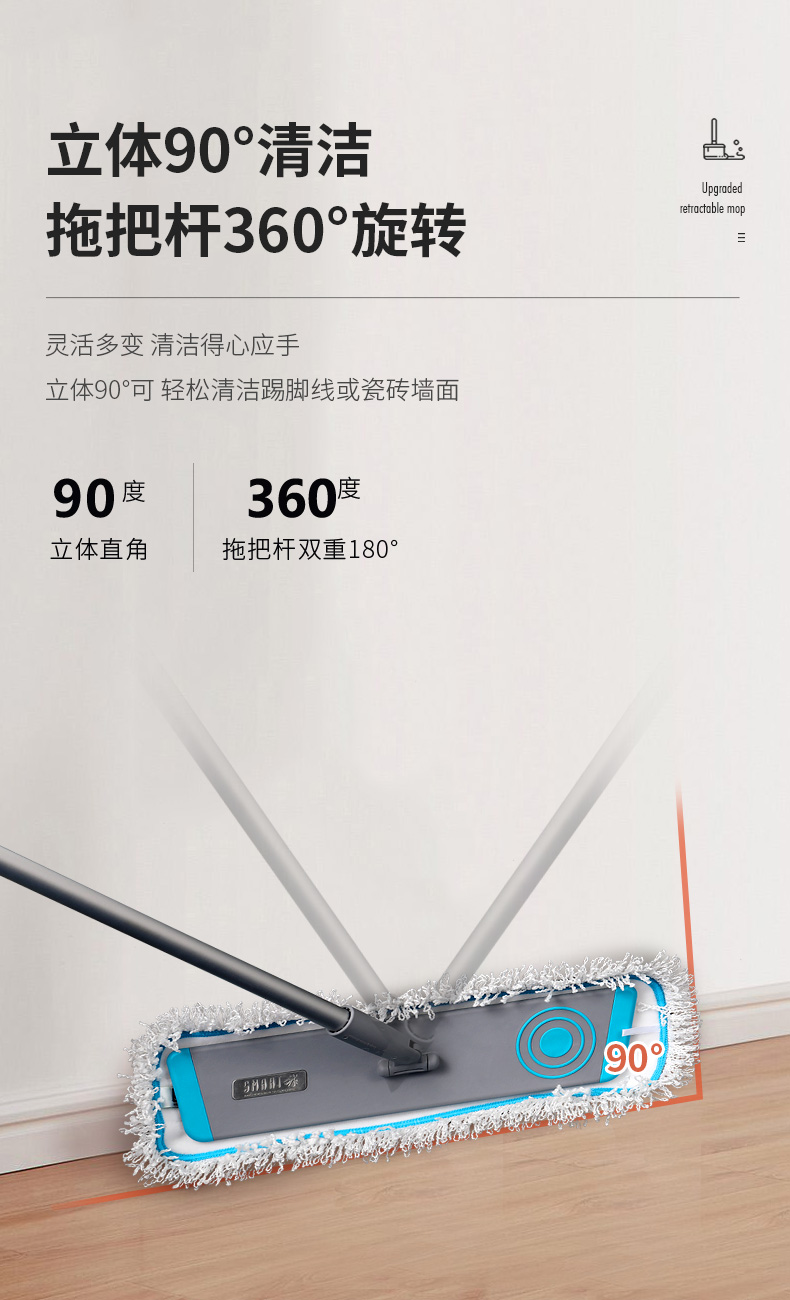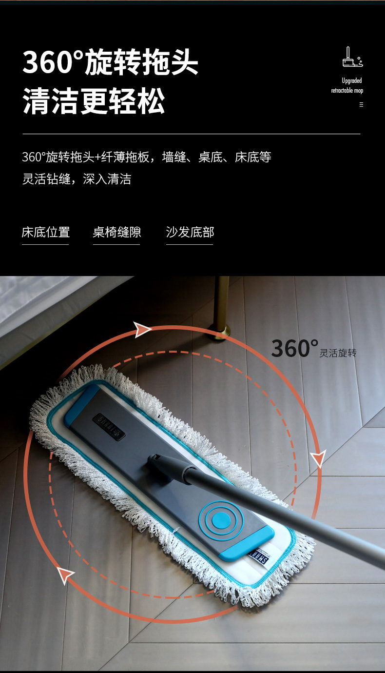 利快平板拖把瑞典进口升级加长铝杆可伸缩大面板地拖50cm墩布