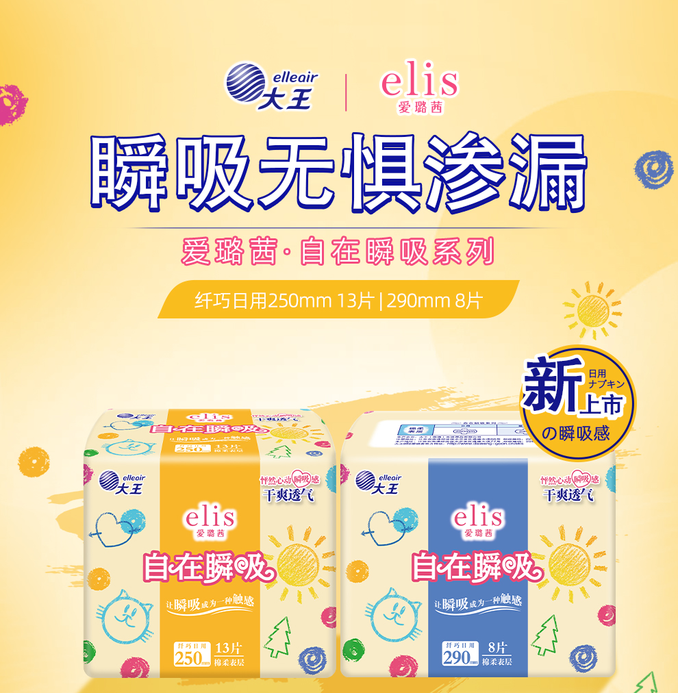 大王elis 爱璐茜 自在瞬吸系列 卫生巾 250mm/290mm