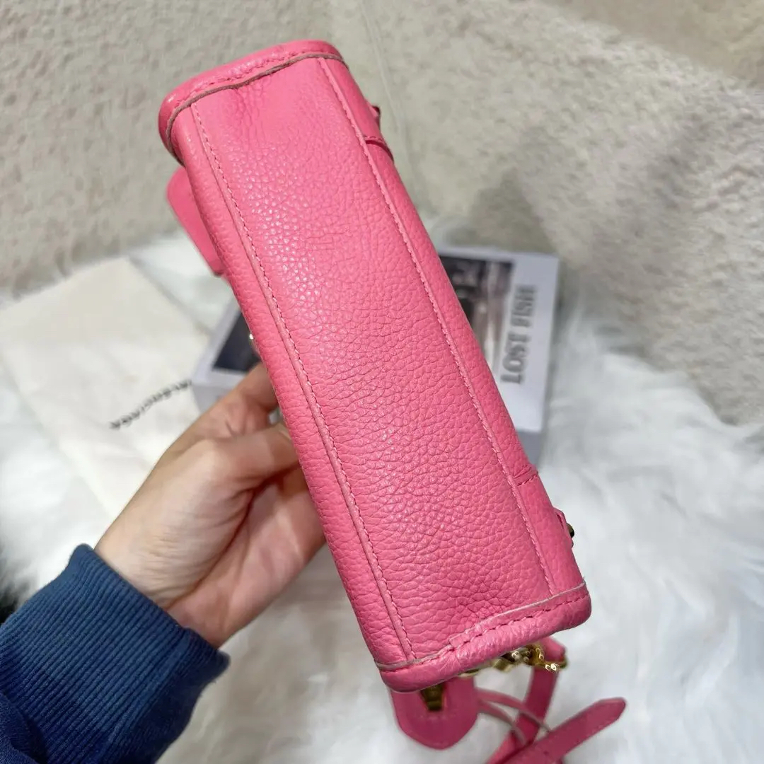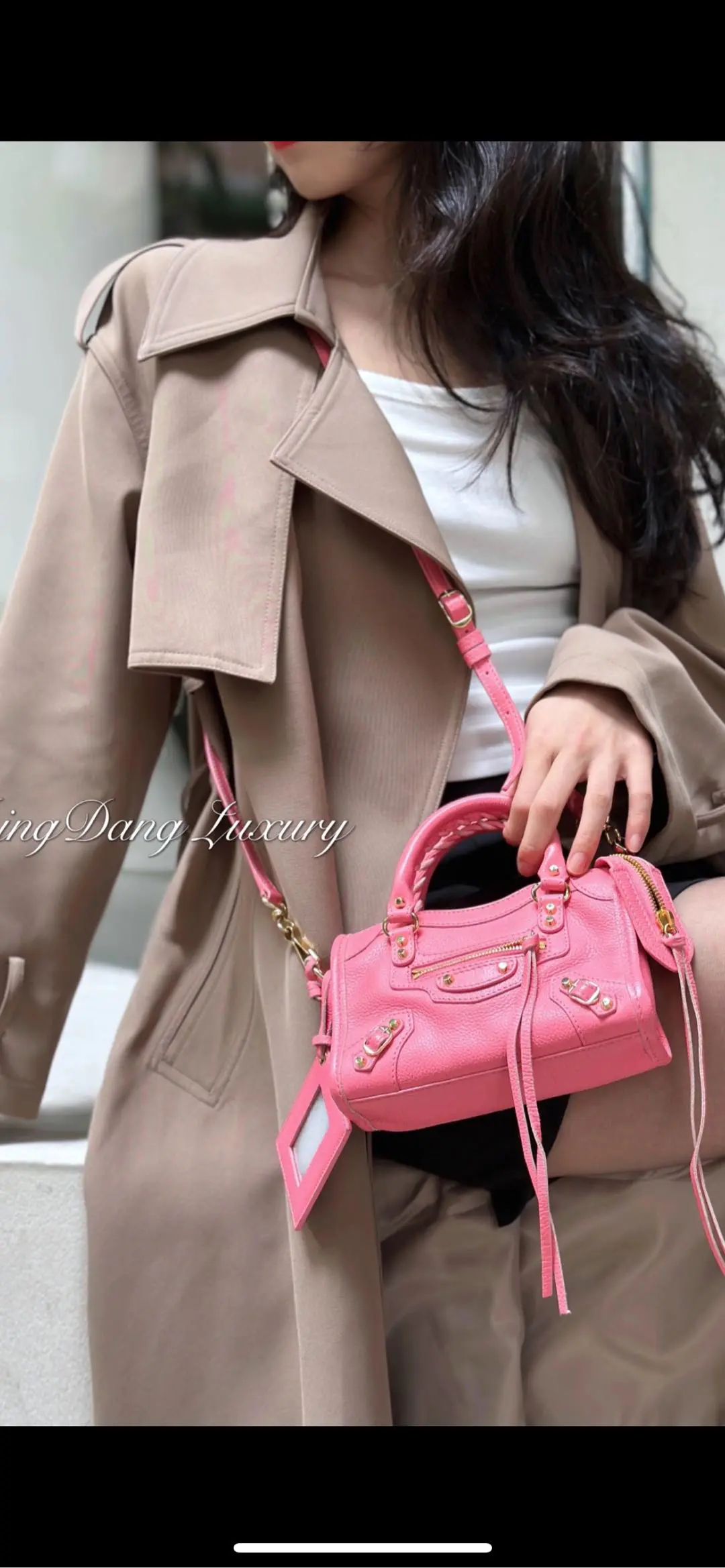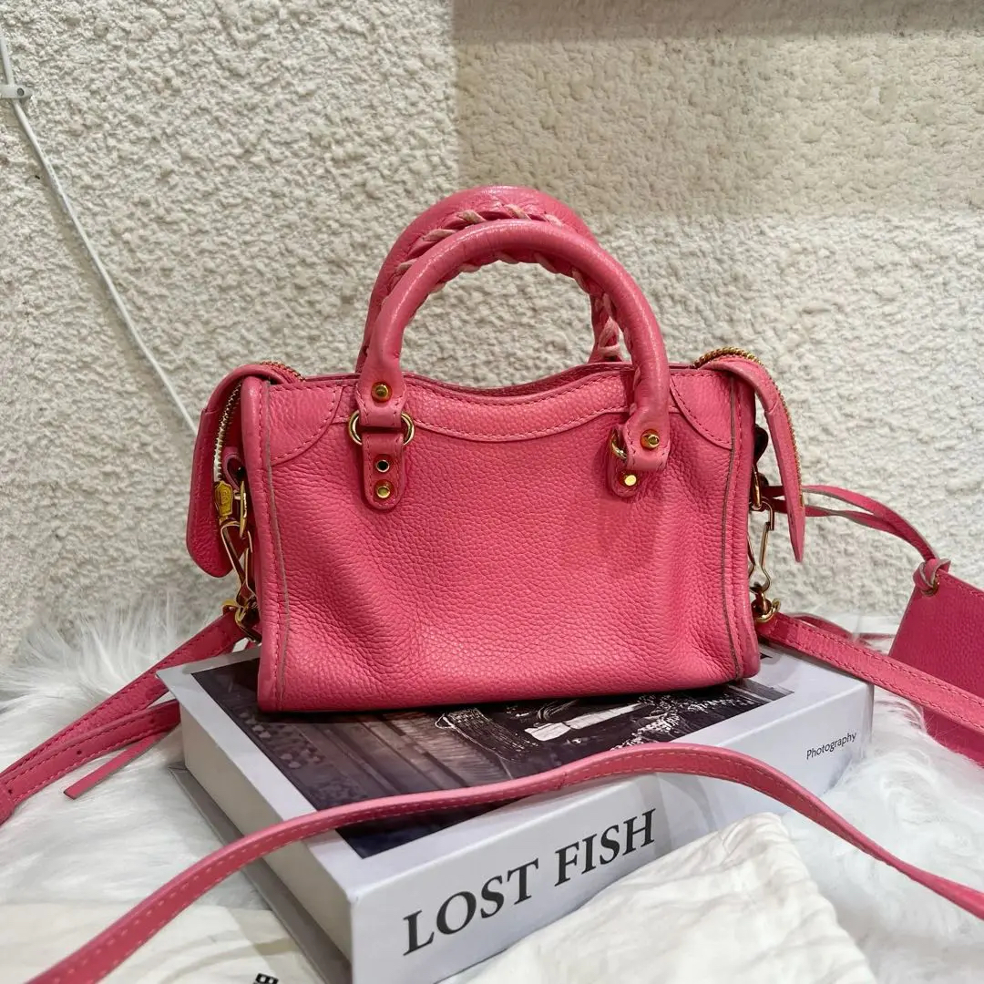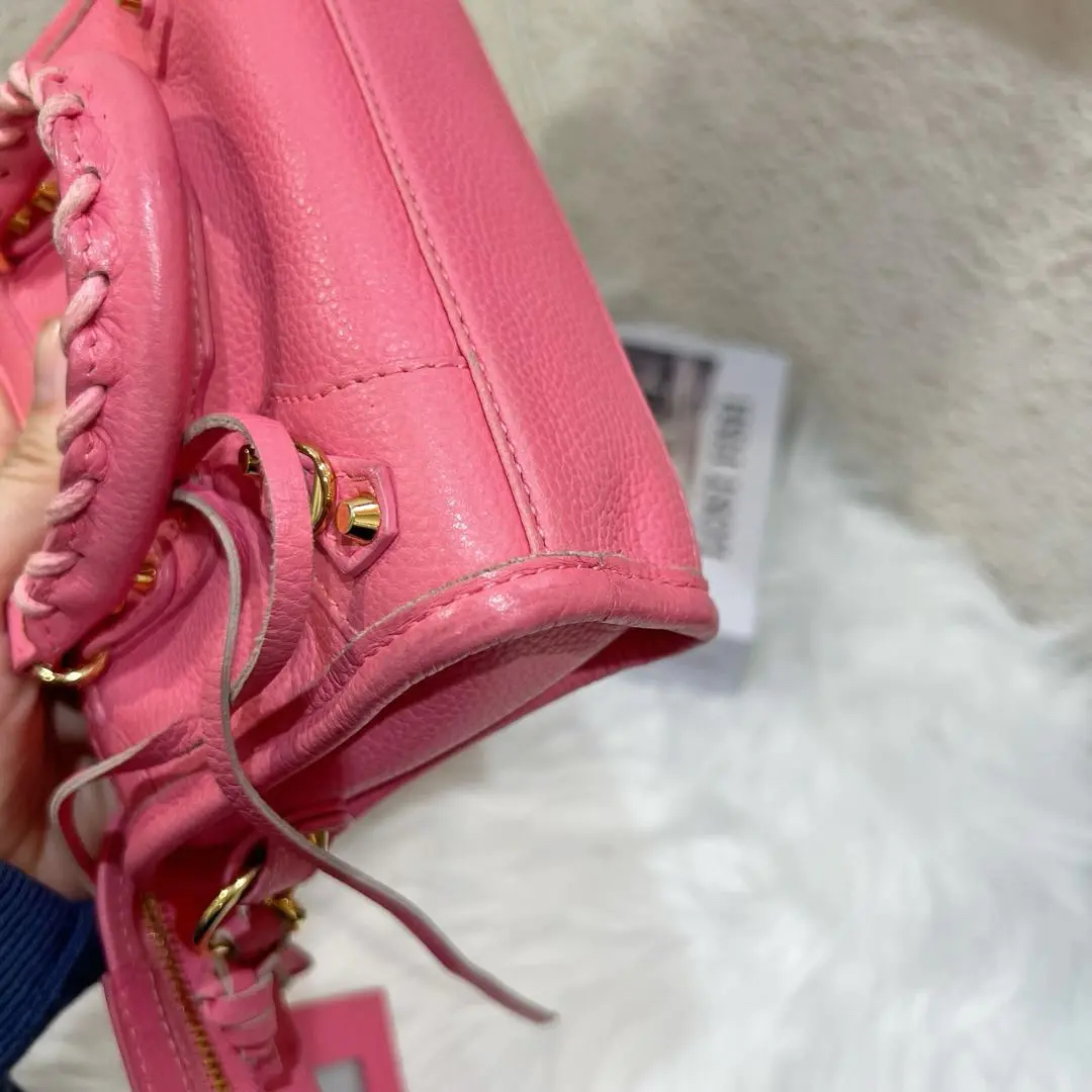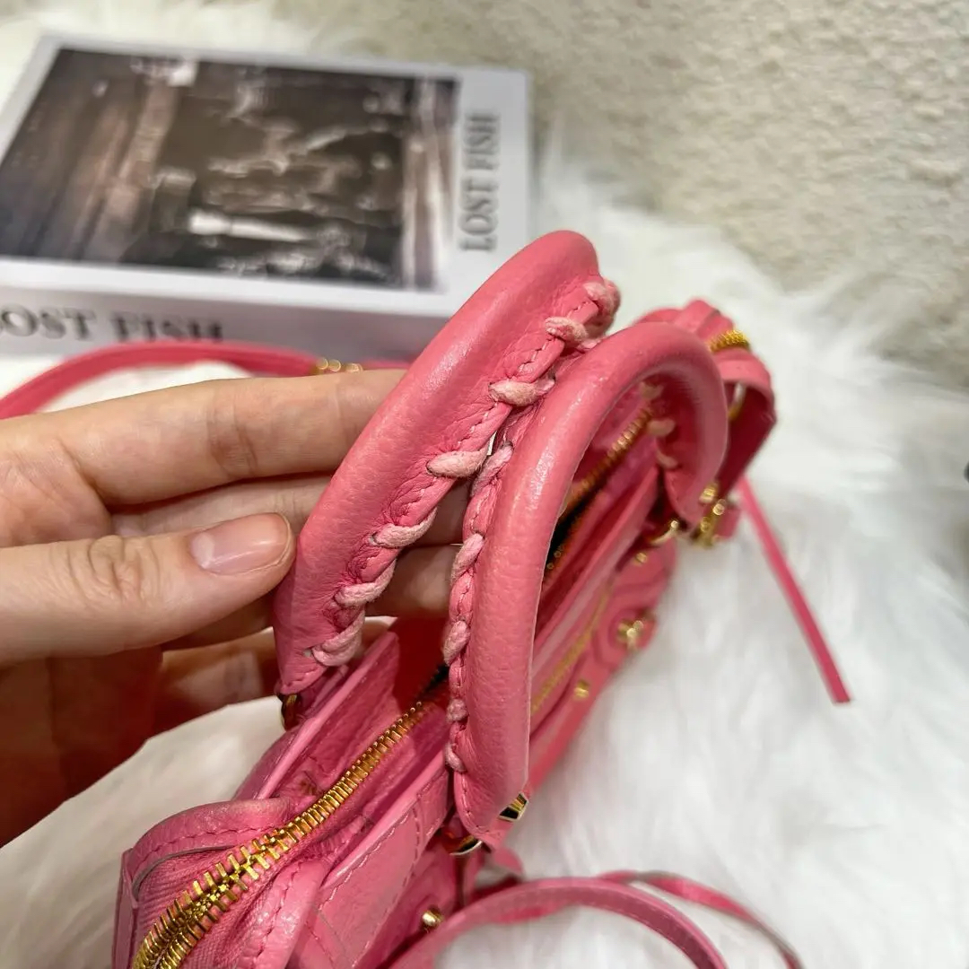 商品详情】正品二手 巴黎世家 Le City mini 粉色 羊皮 机车包🏍️ 97新 18*12 配件:镜子 肩带 防尘袋。金属铆钉 拉链开合 甜酷复古