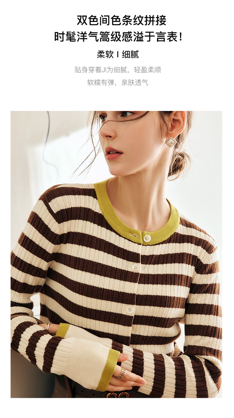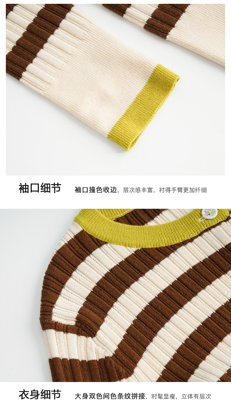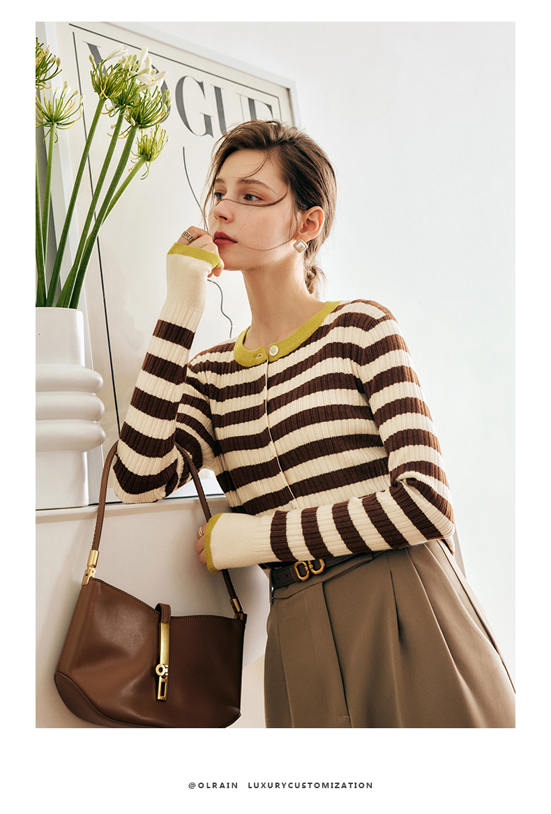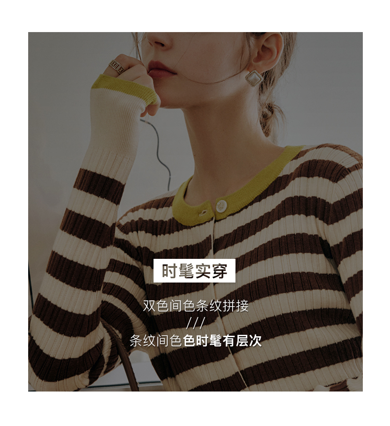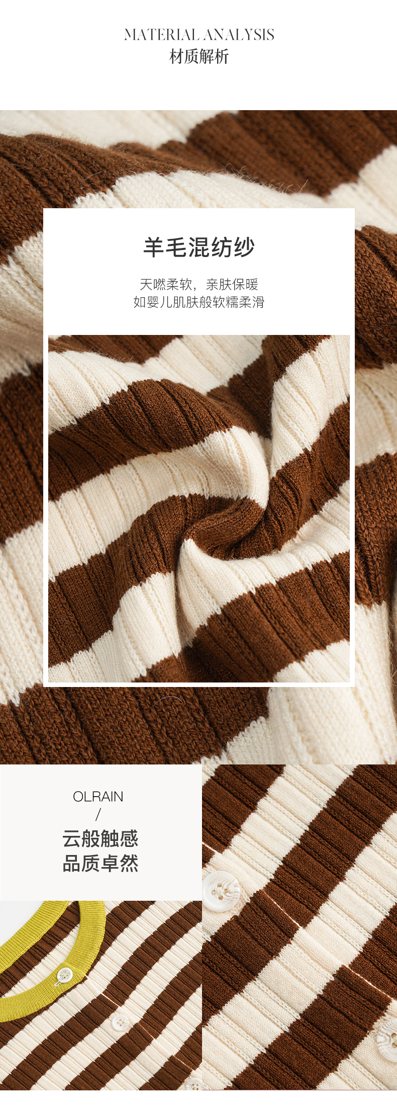 OLrain欧芮儿法式条纹针织开衫女早秋2022新款慵懒风撞色圆领上衣