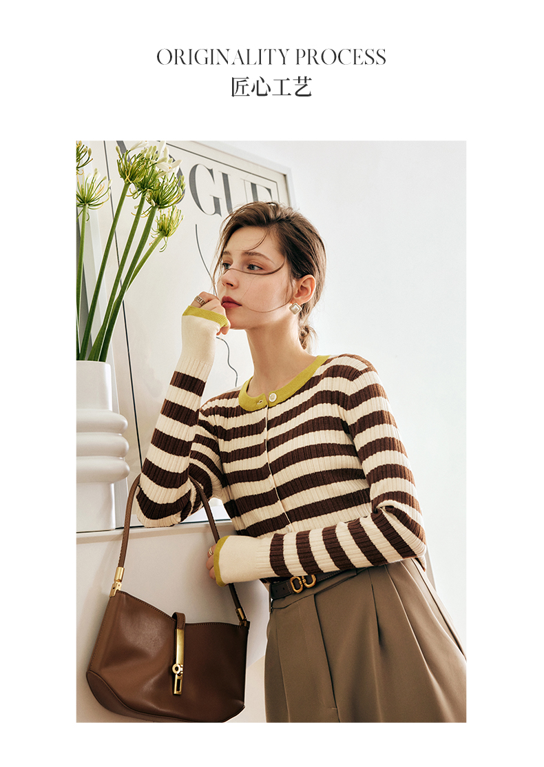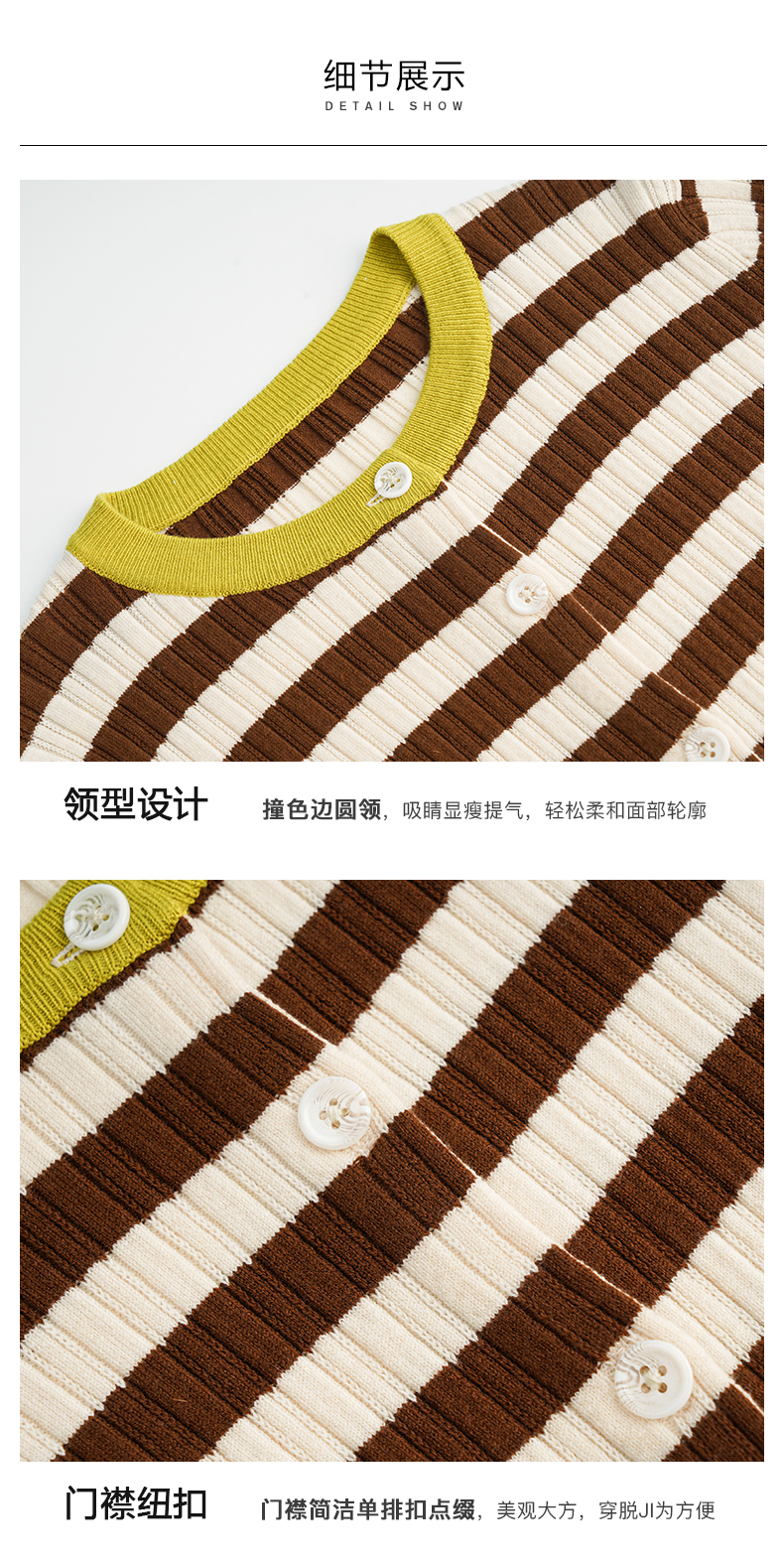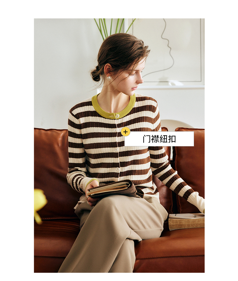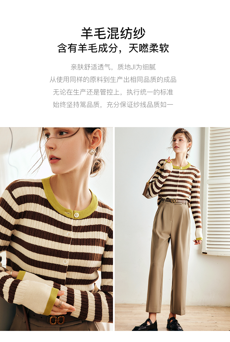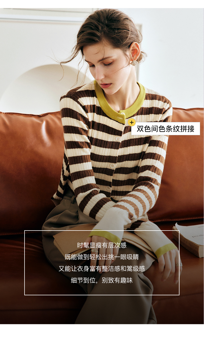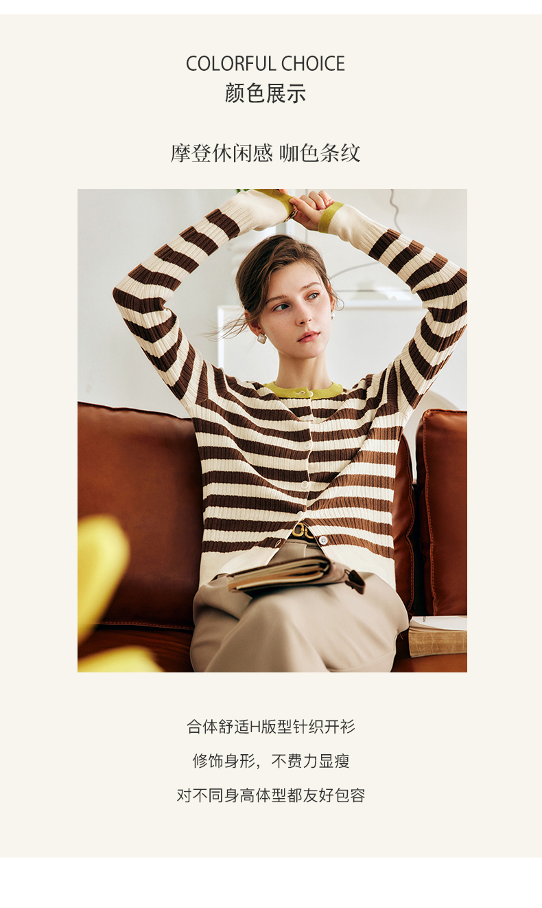 OLrain欧芮儿法式条纹针织开衫女早秋2022新款慵懒风撞色圆领上衣