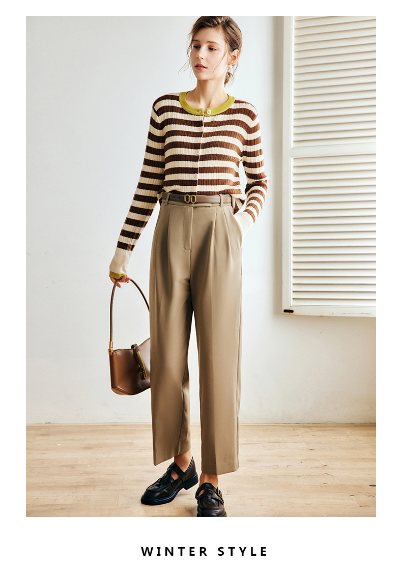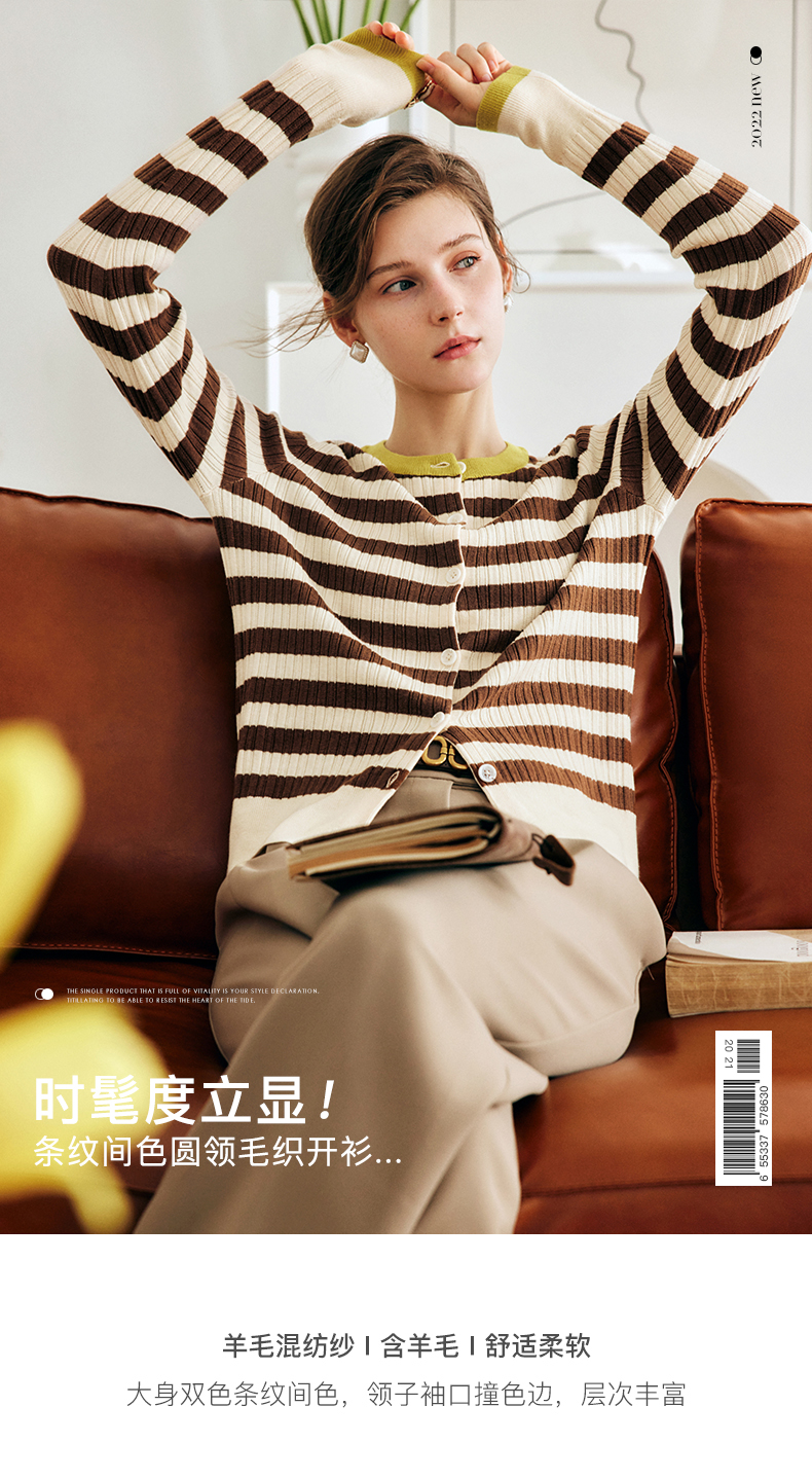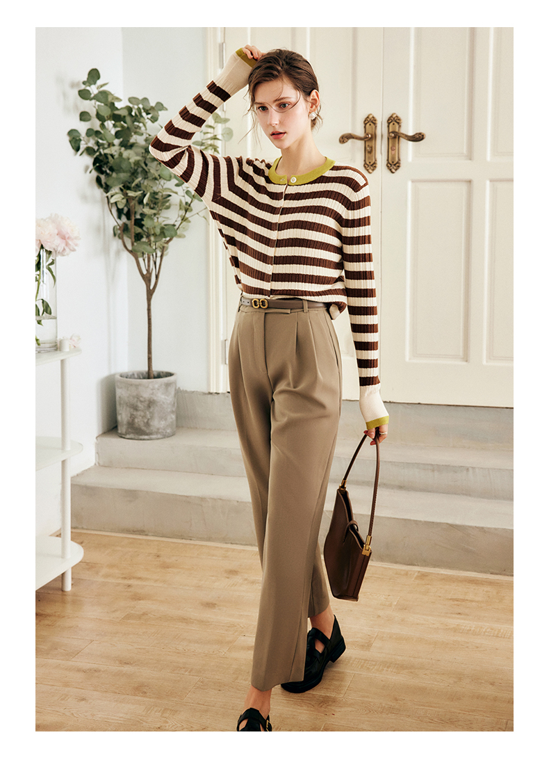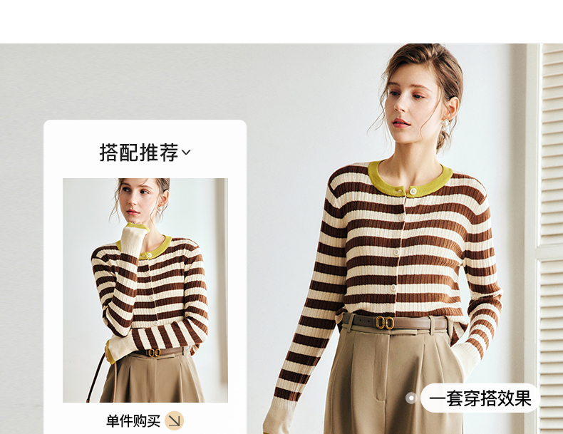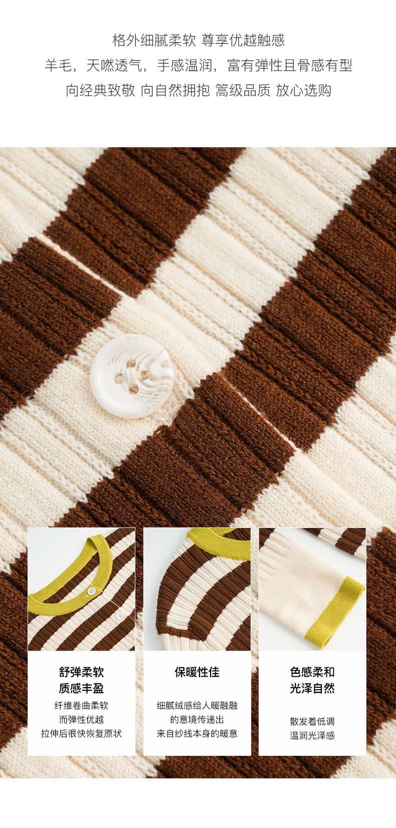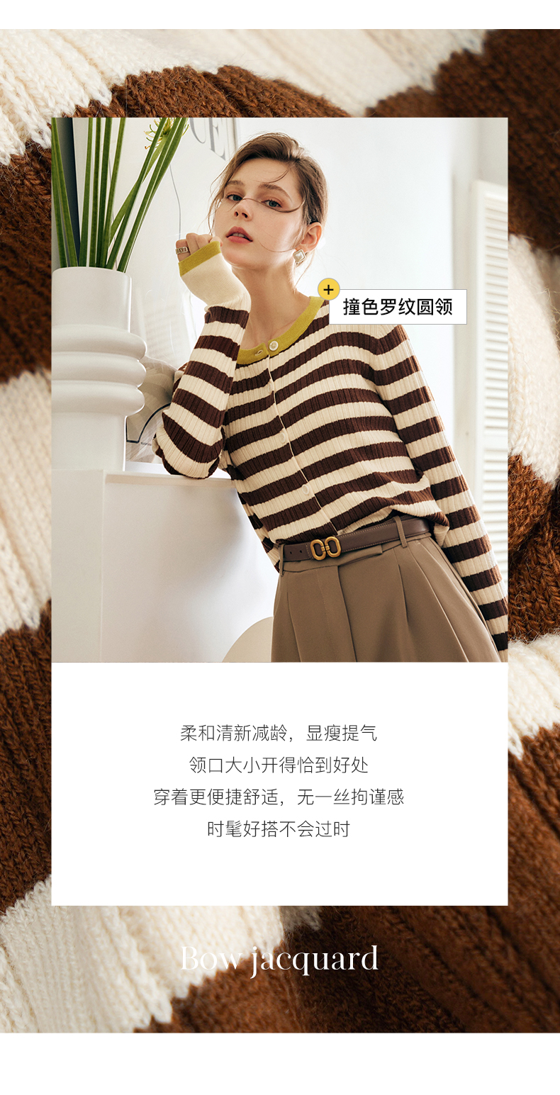 OLrain欧芮儿法式条纹针织开衫女早秋2022新款慵懒风撞色圆领上衣
