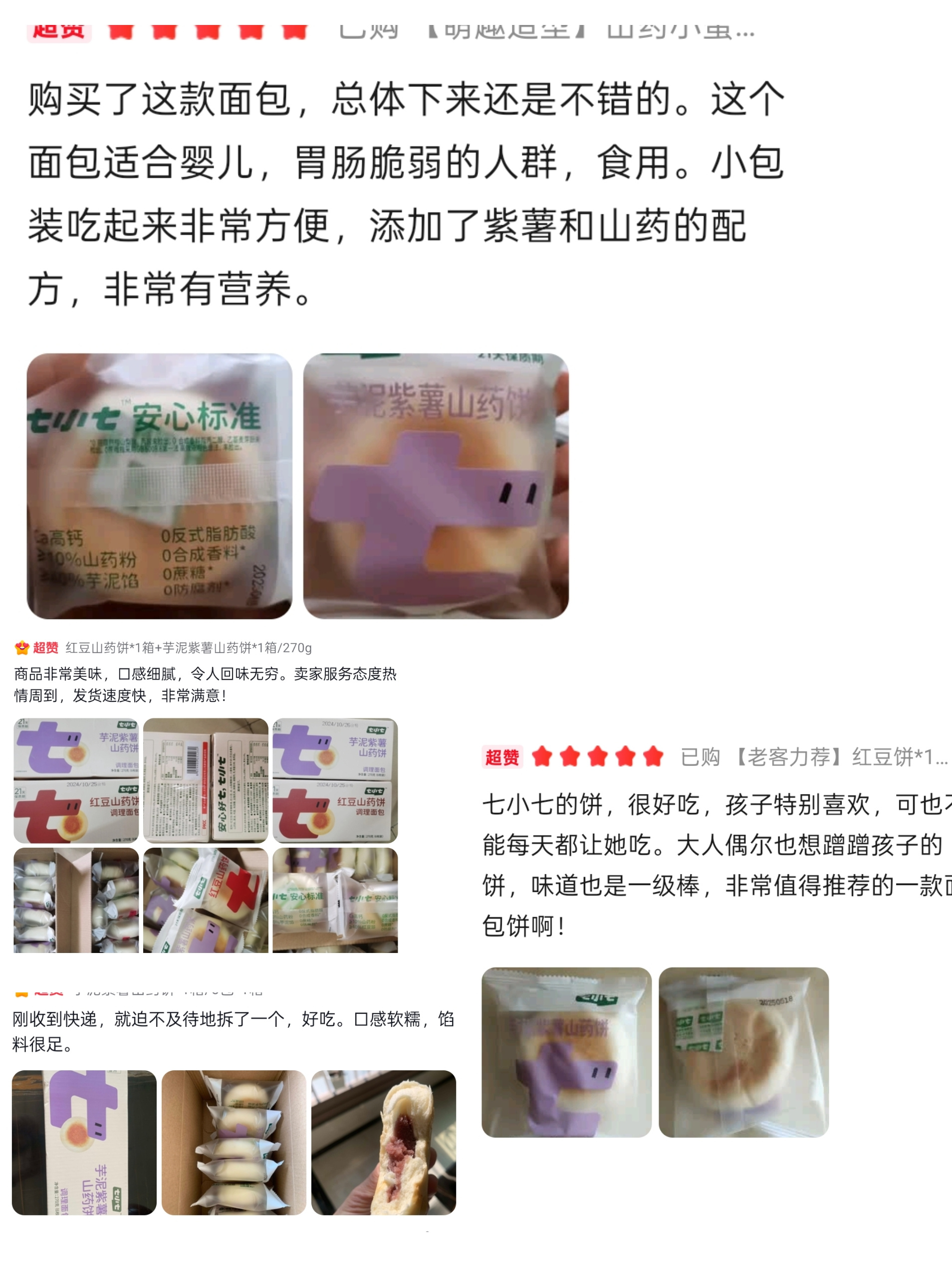 【多妈团购 七小七红豆芋泥紫薯山药饼/绿豆饼】0油0蔗糖 软乎乎糯叽叽,老人小孩都爱吃!好消化,不上火,自然香甜,一口下去满满都是料 营养代餐!活力下午茶-七小七