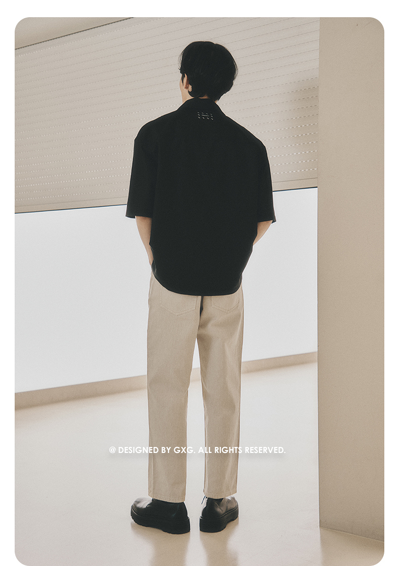 GXG男装 浅军绿阔形质感面料年轻时尚短袖衬衫 夏季热卖