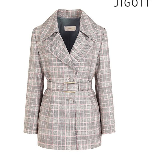 Jigott 背部百褶细节羊毛格纹夹克JPY带授权招加盟代理