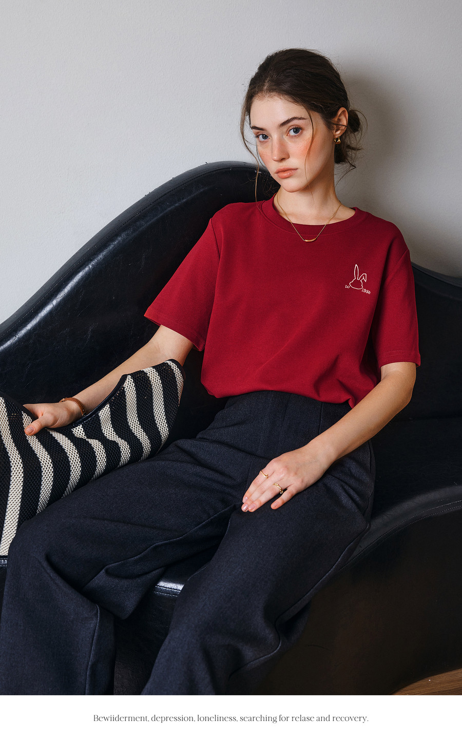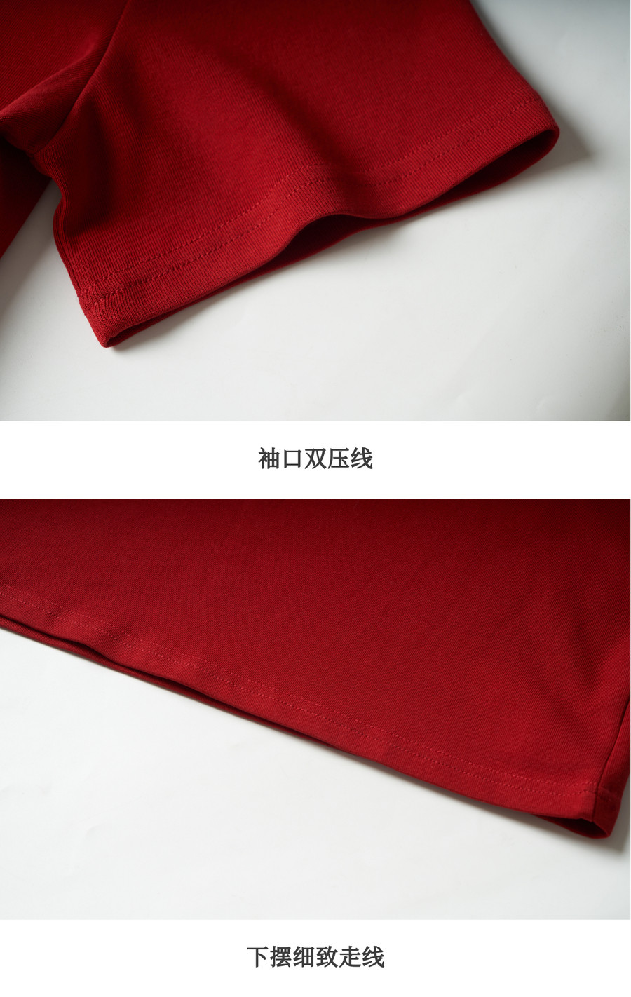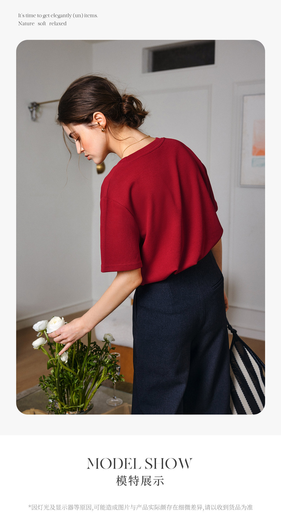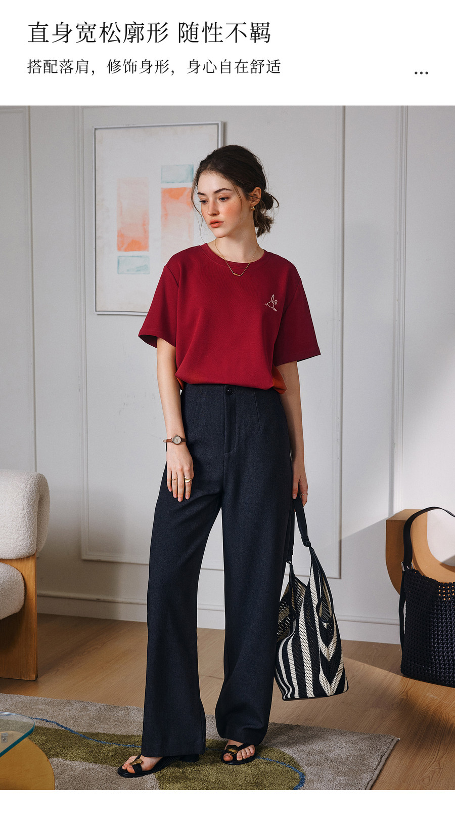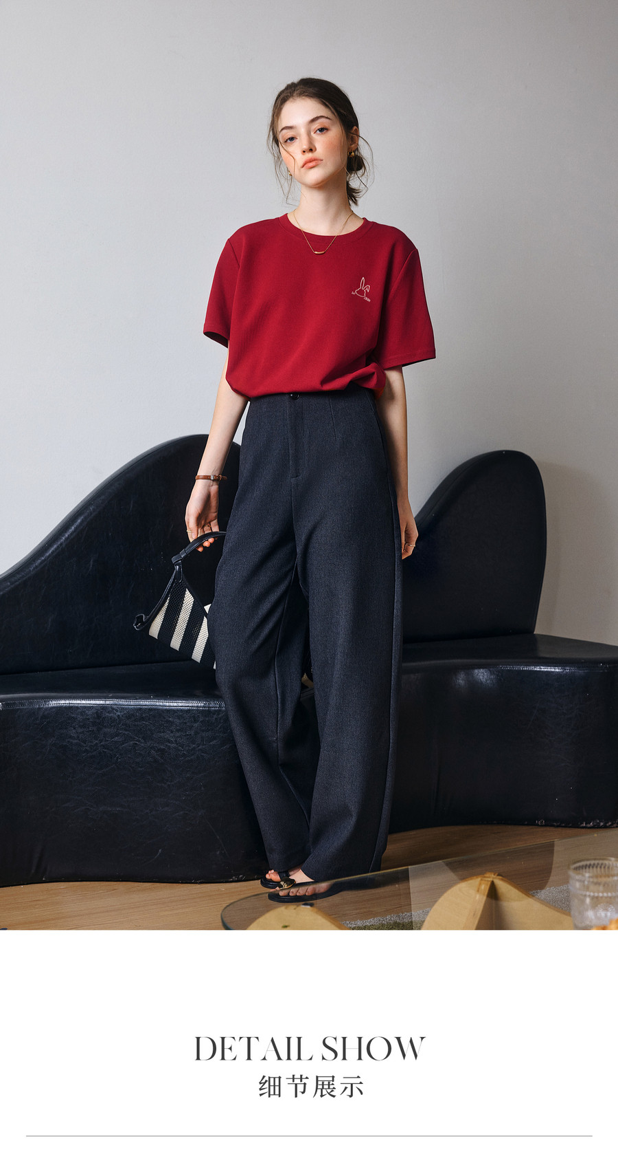 欧芮儿2026年新款夏季红色绣花设计感圆领宽松短袖休闲简约T恤女