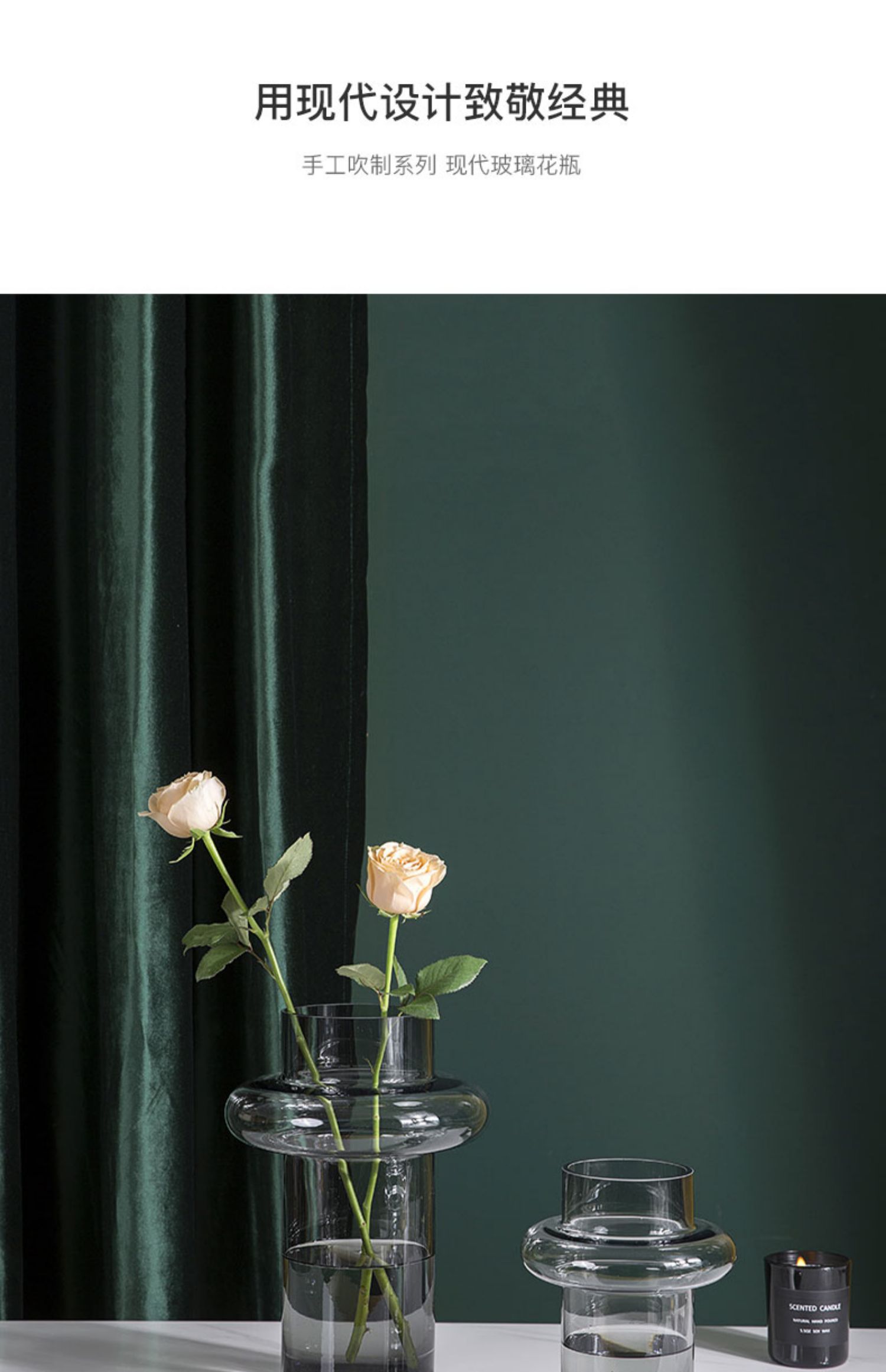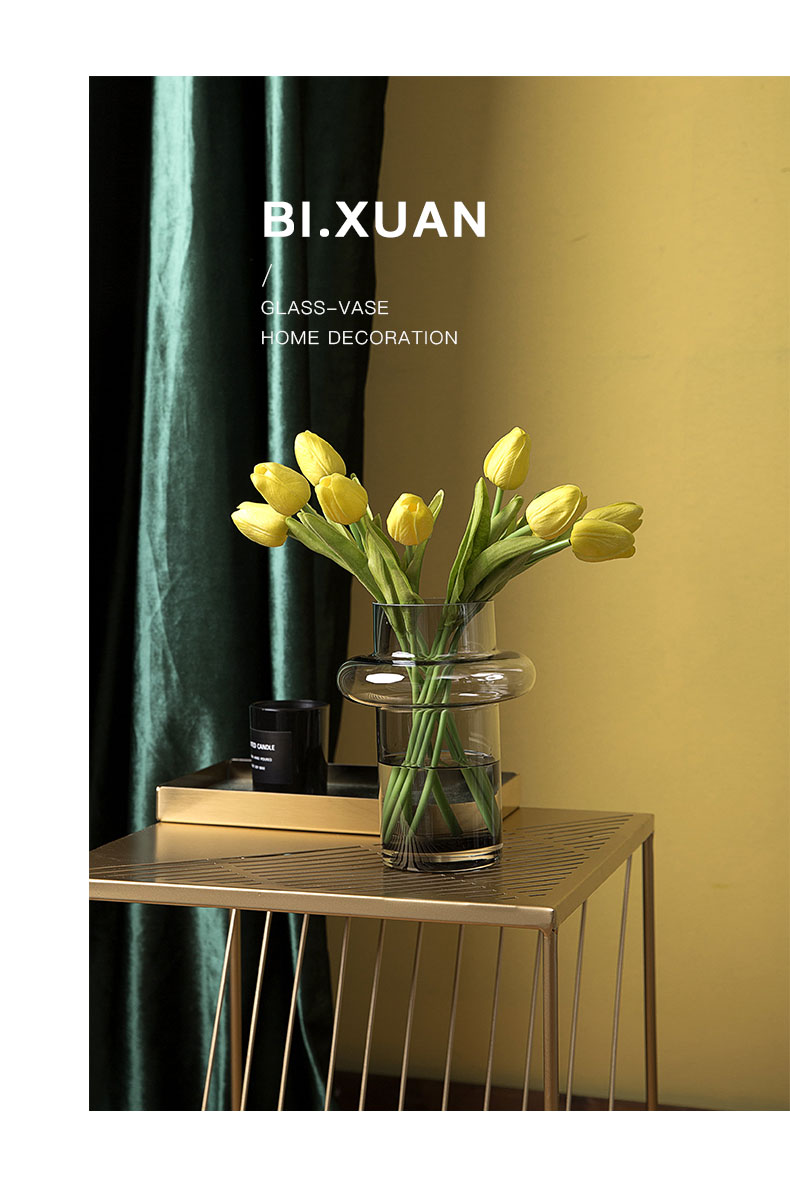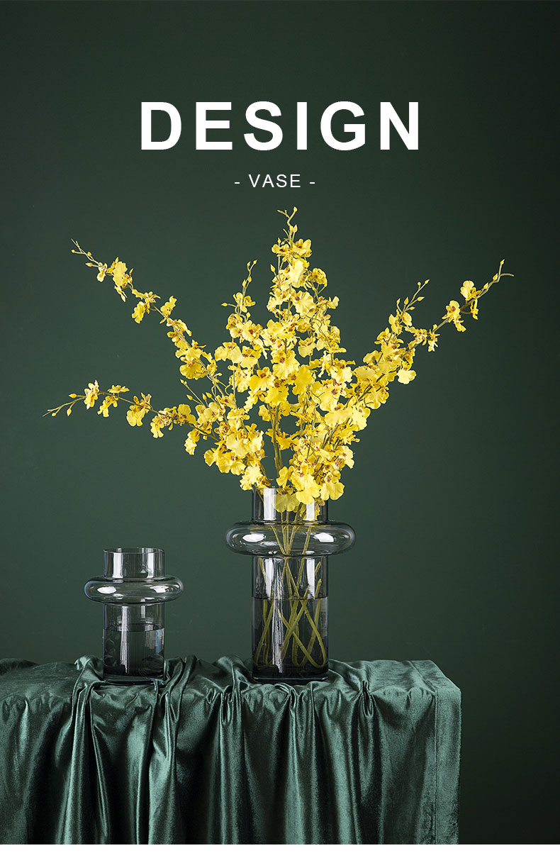 碧轩北欧轻奢灰色小蛮腰玻璃花瓶富贵竹水培插花花器家居装饰摆件