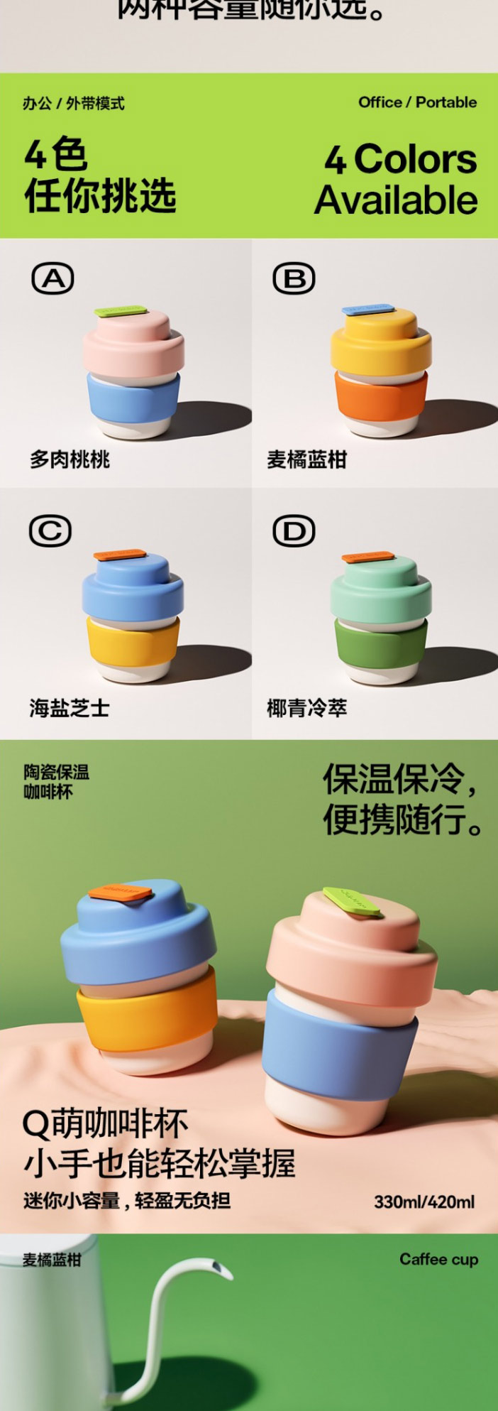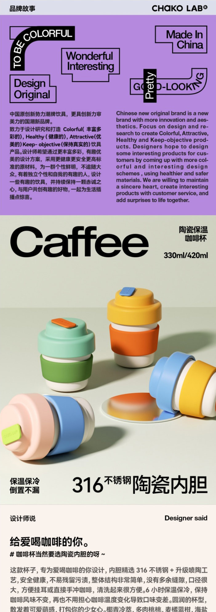 【chakolab】咖啡杯陶瓷内胆保温杯女生高颜值可爱不锈钢便携随行水杯