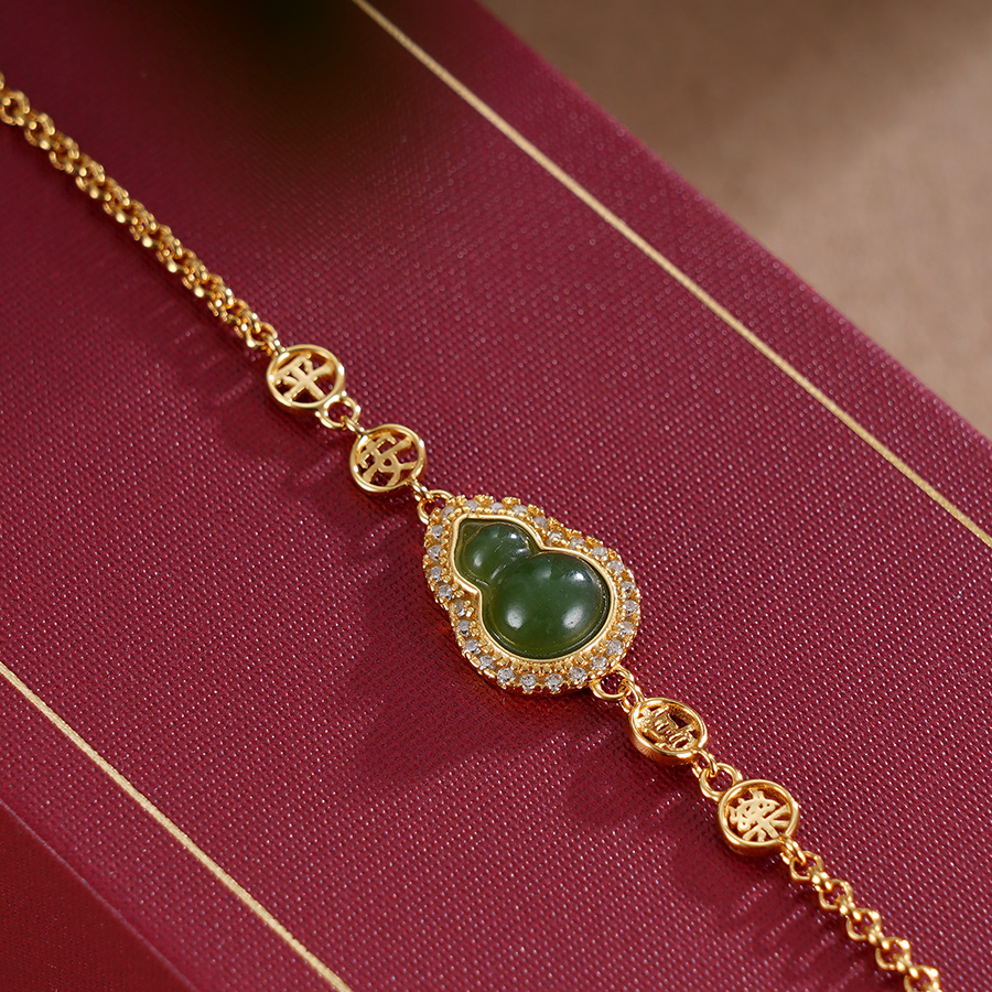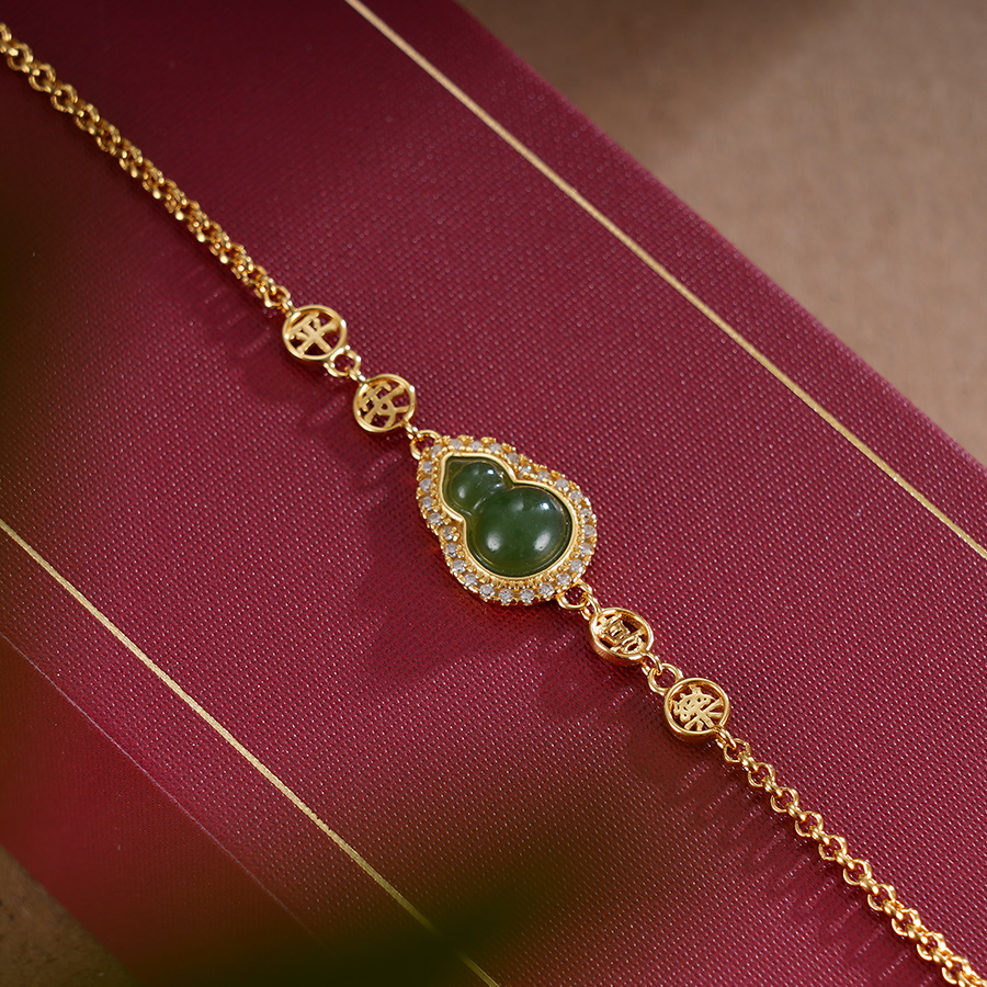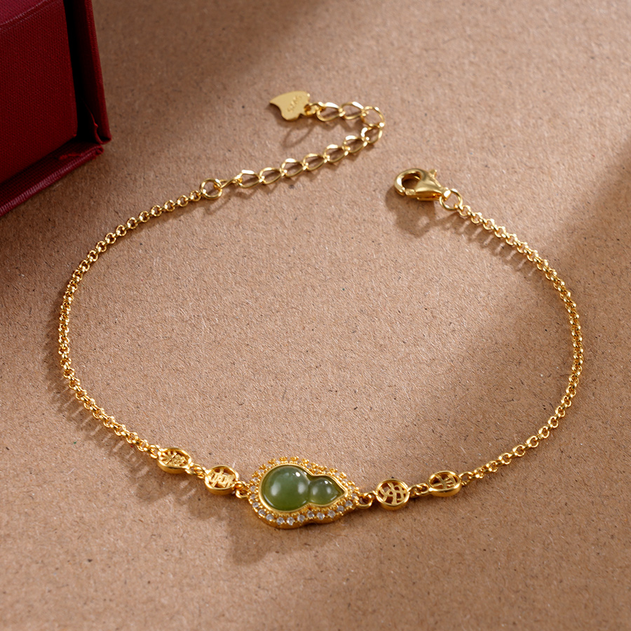 子佩集S925银【添福】手链【SL11543】和田玉镀金葫芦2401