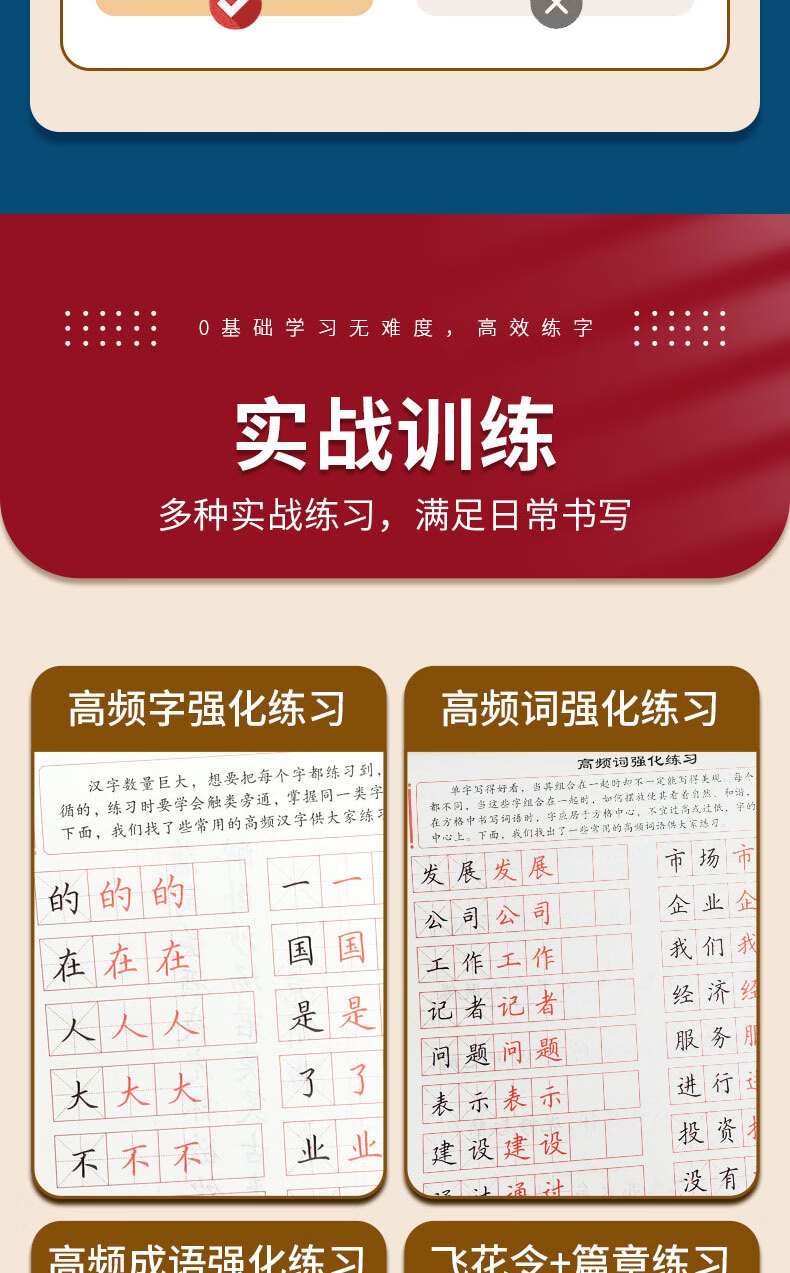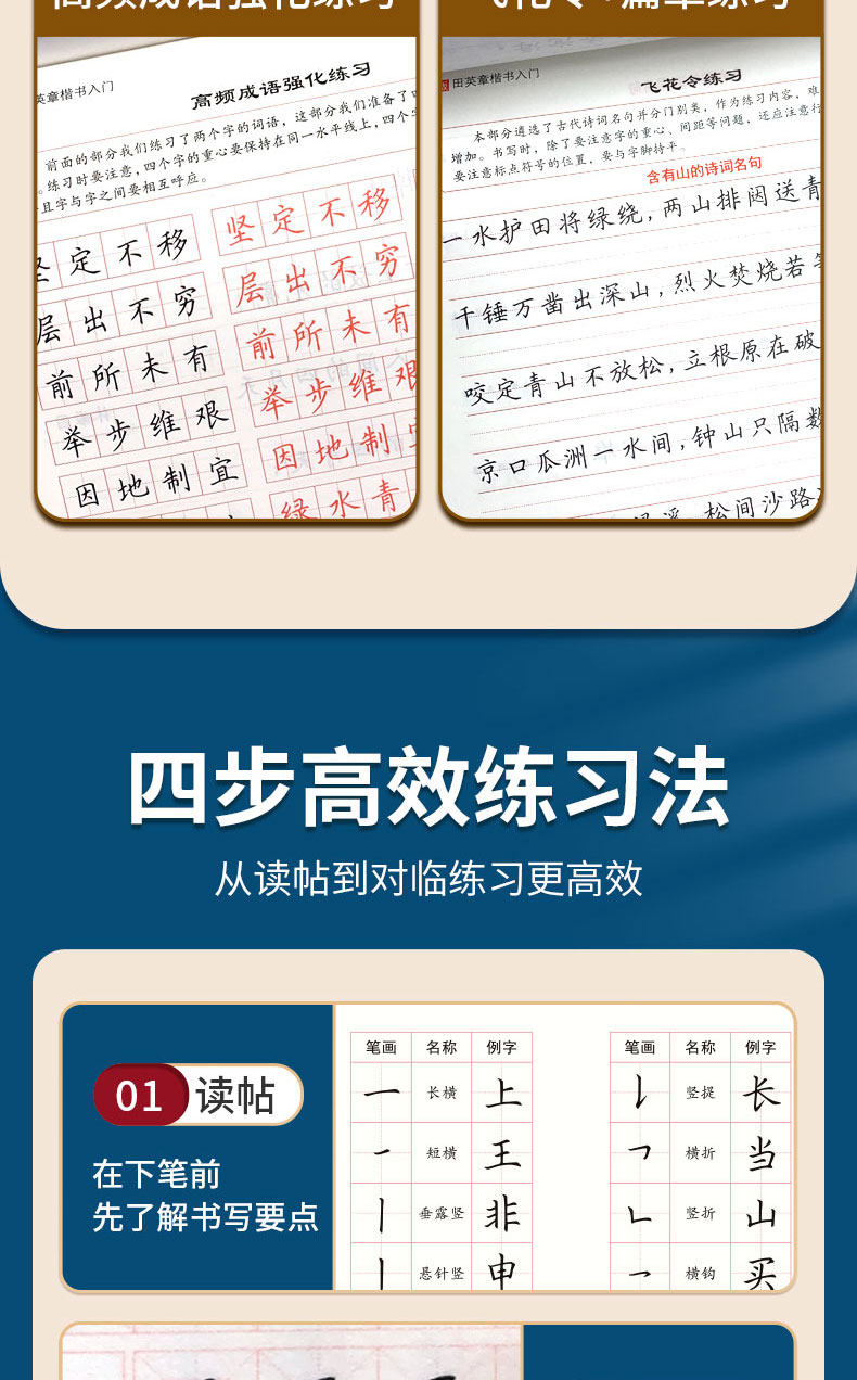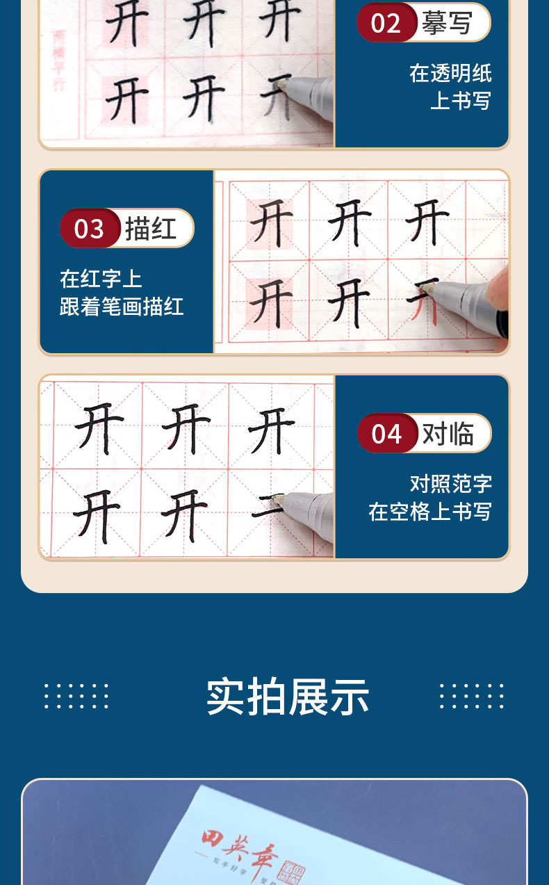 田英章新版楷书入门实战训练田英章书手写体 学生成人初学者临摹描红练字帖硬笔书法练习钢笔字帖