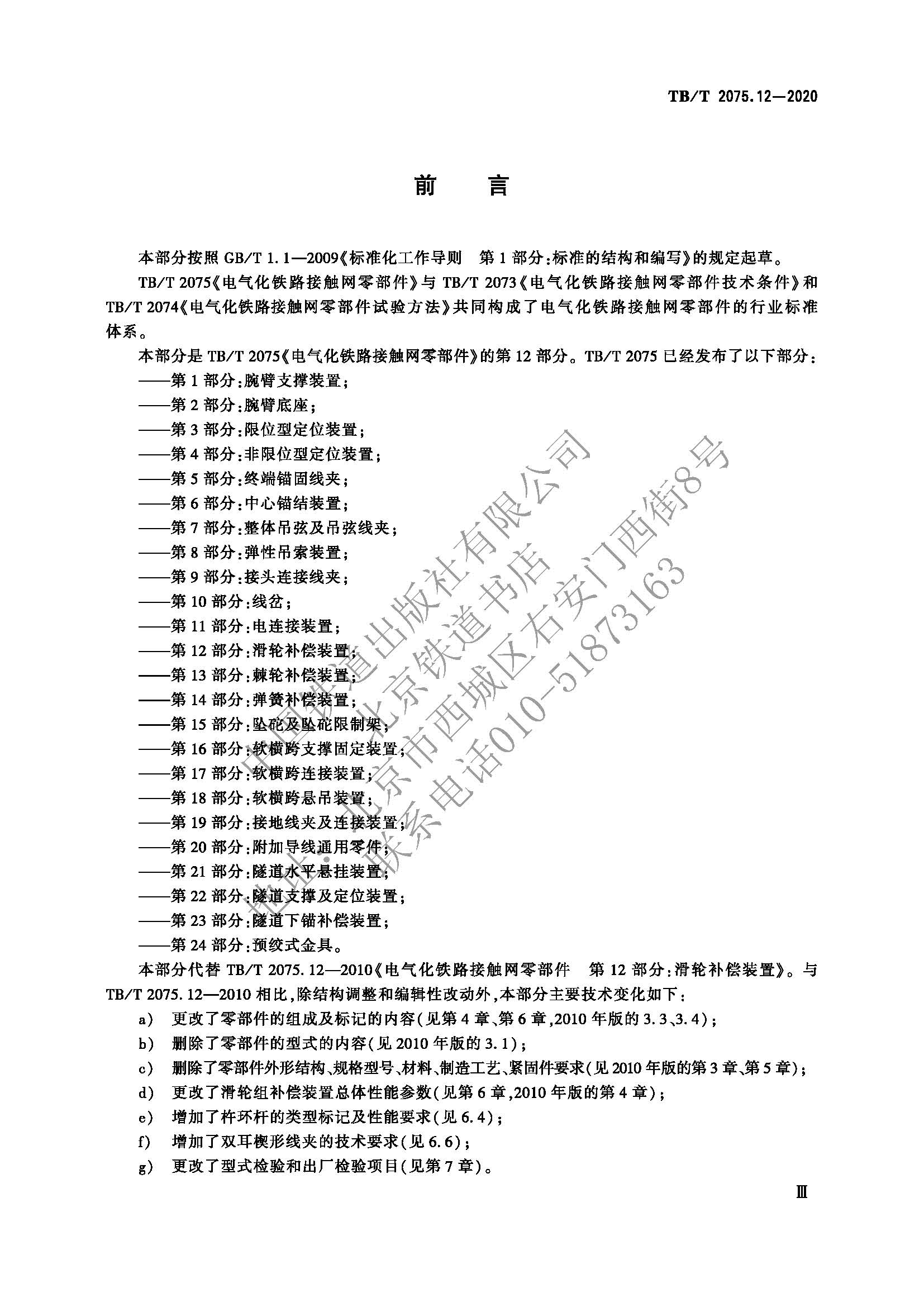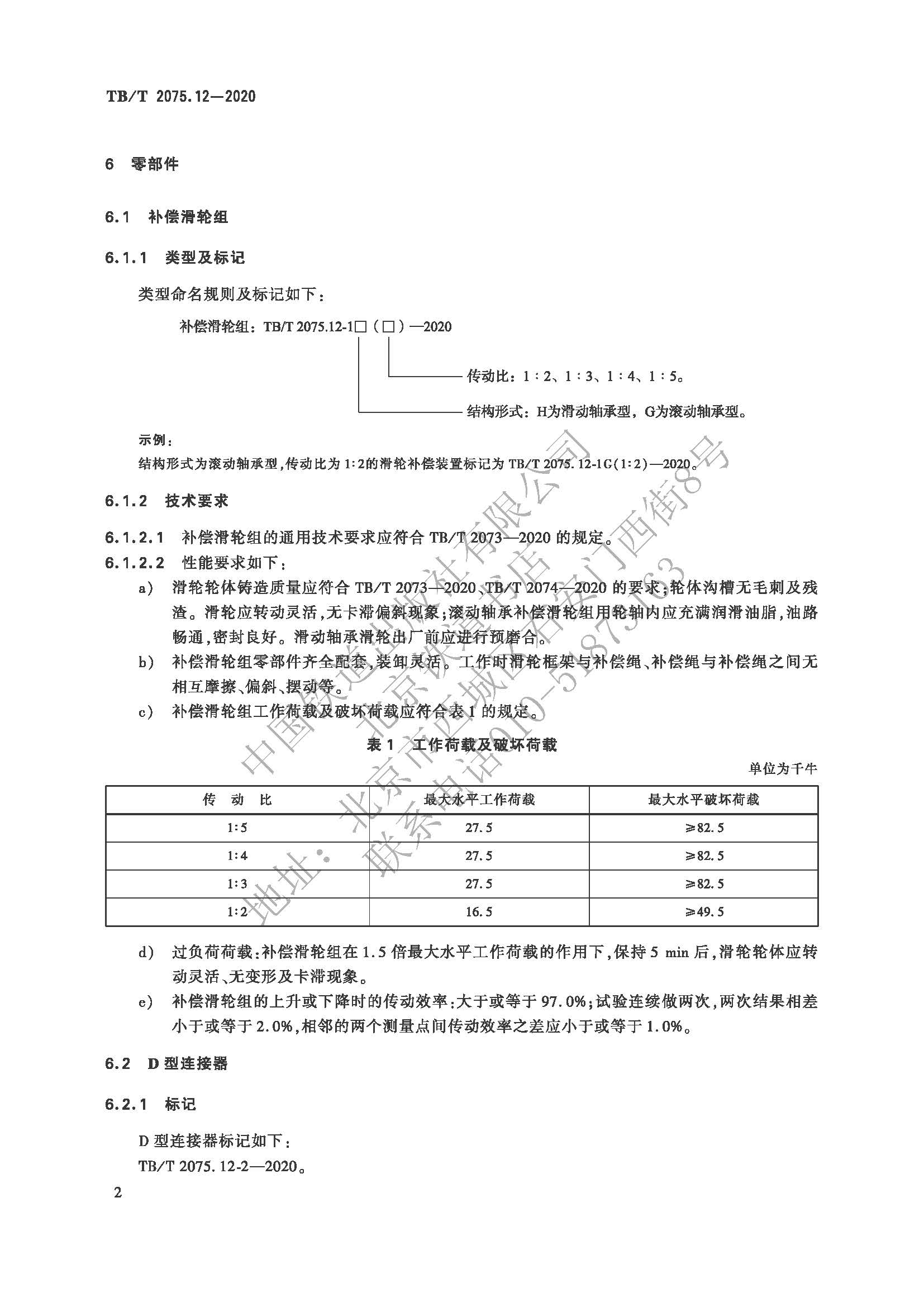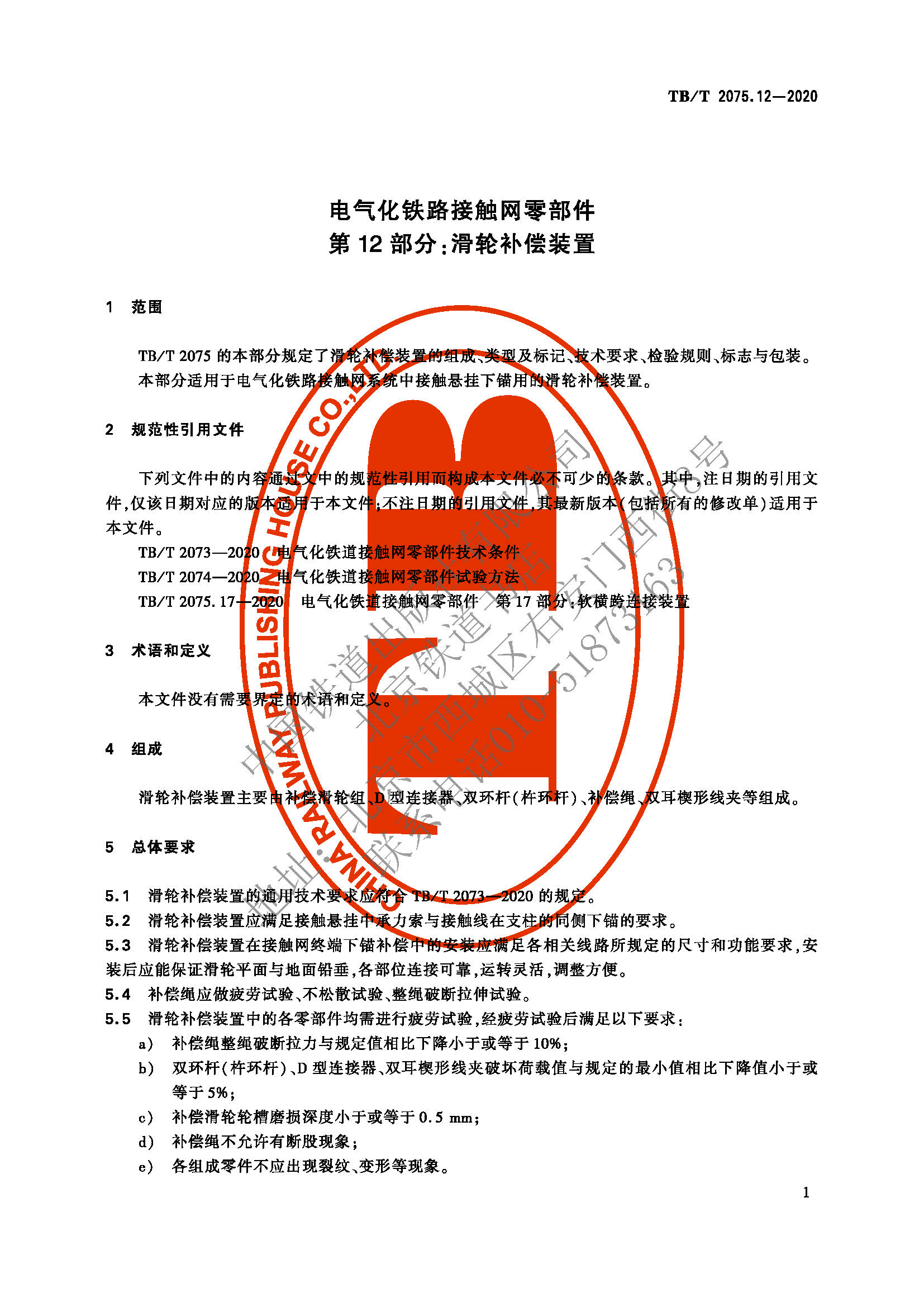15113.6240电气化铁路接触网零部件 第12部分:滑轮补偿装置 TB/T 2075.12-2020
