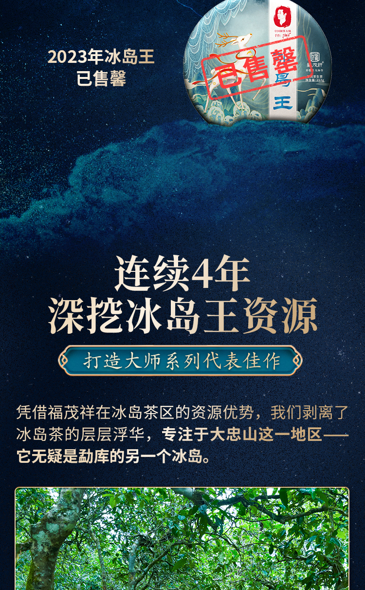 【冰岛王】大师系列代表作 第四年出品 2024年春茶临沧茶区大忠山普洱茶生茶古树纯料茶饼357g