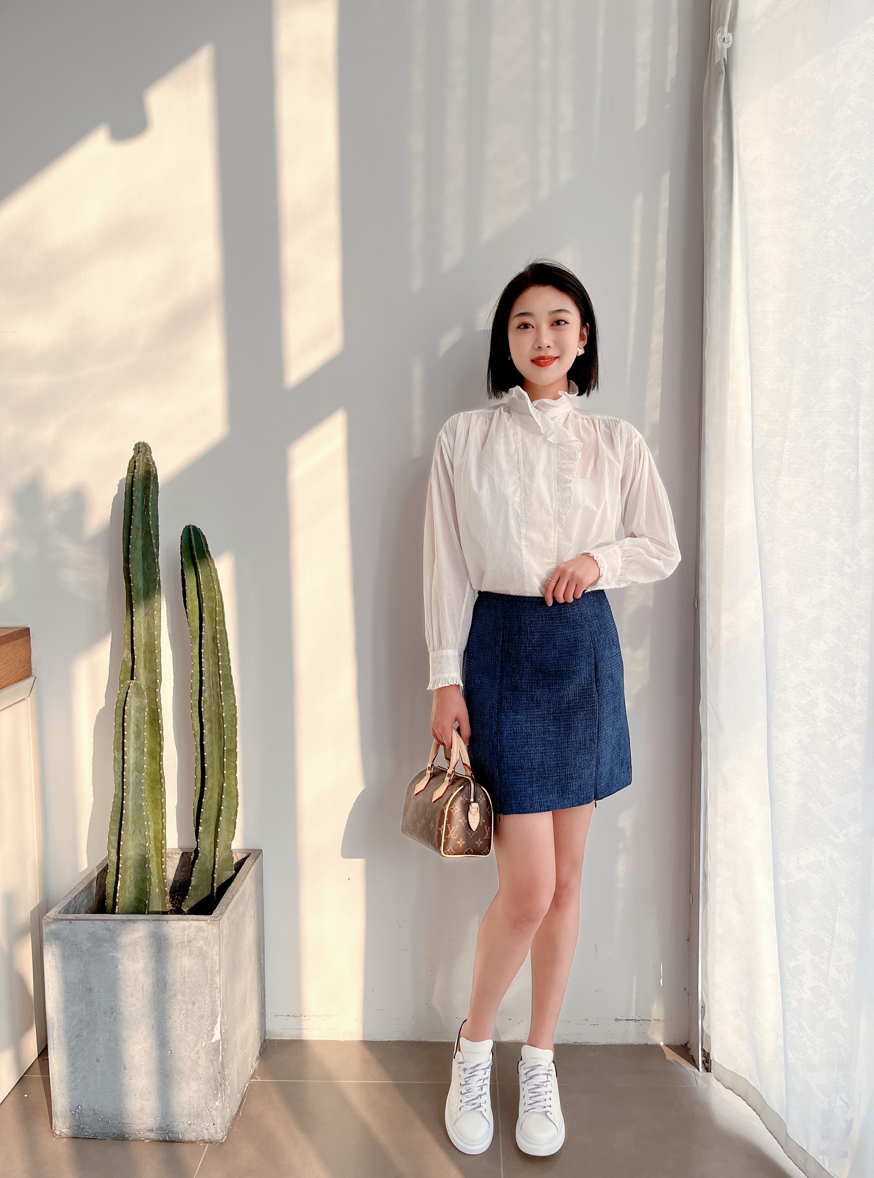 SPELLEDIT正品HOHE小香风粗呢A字拉链短裙