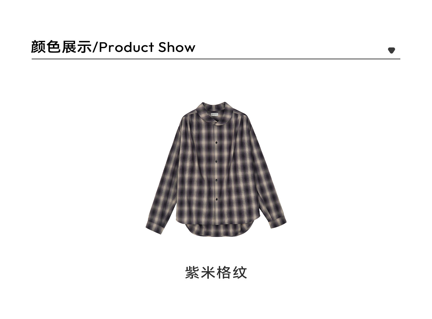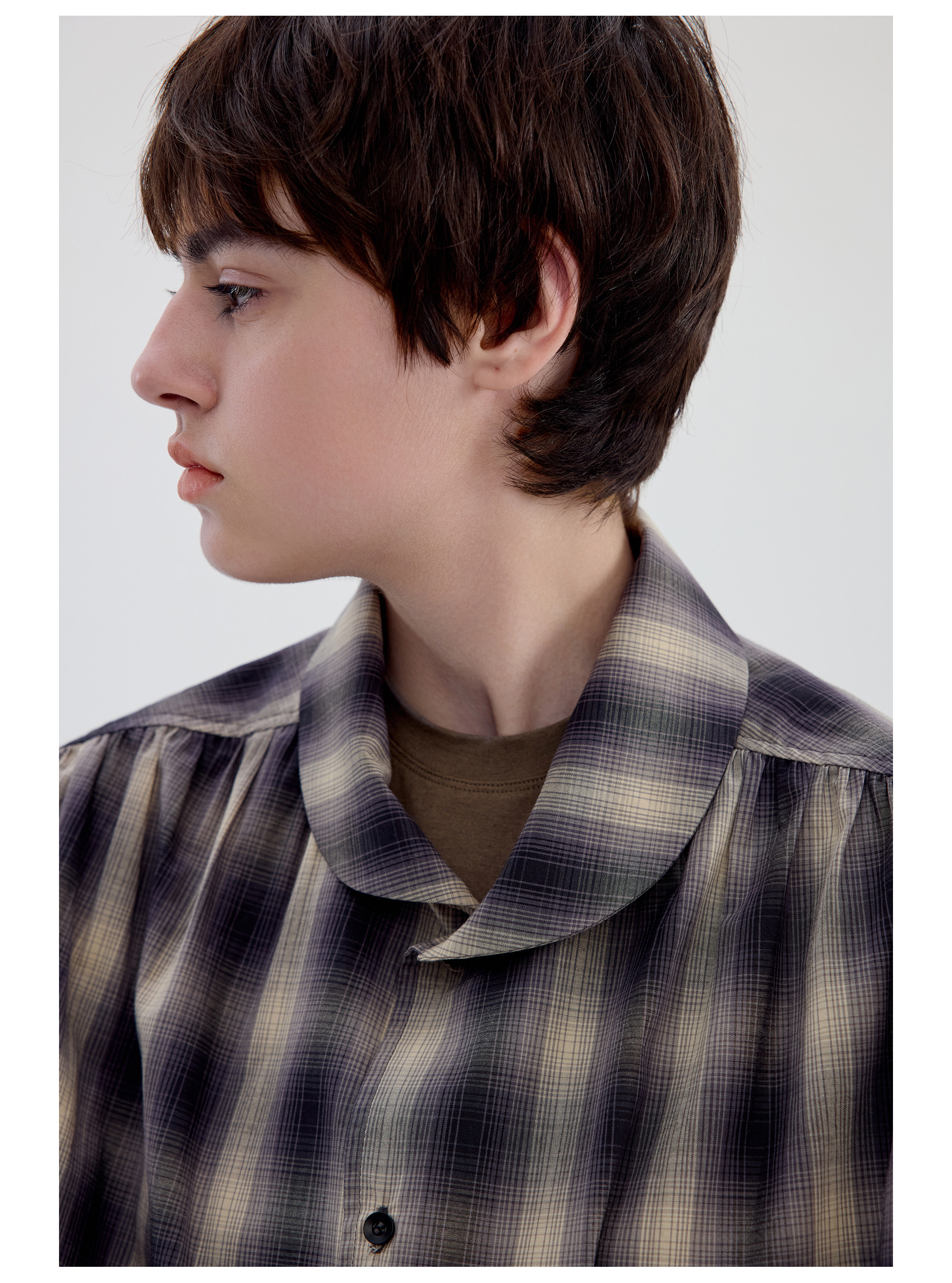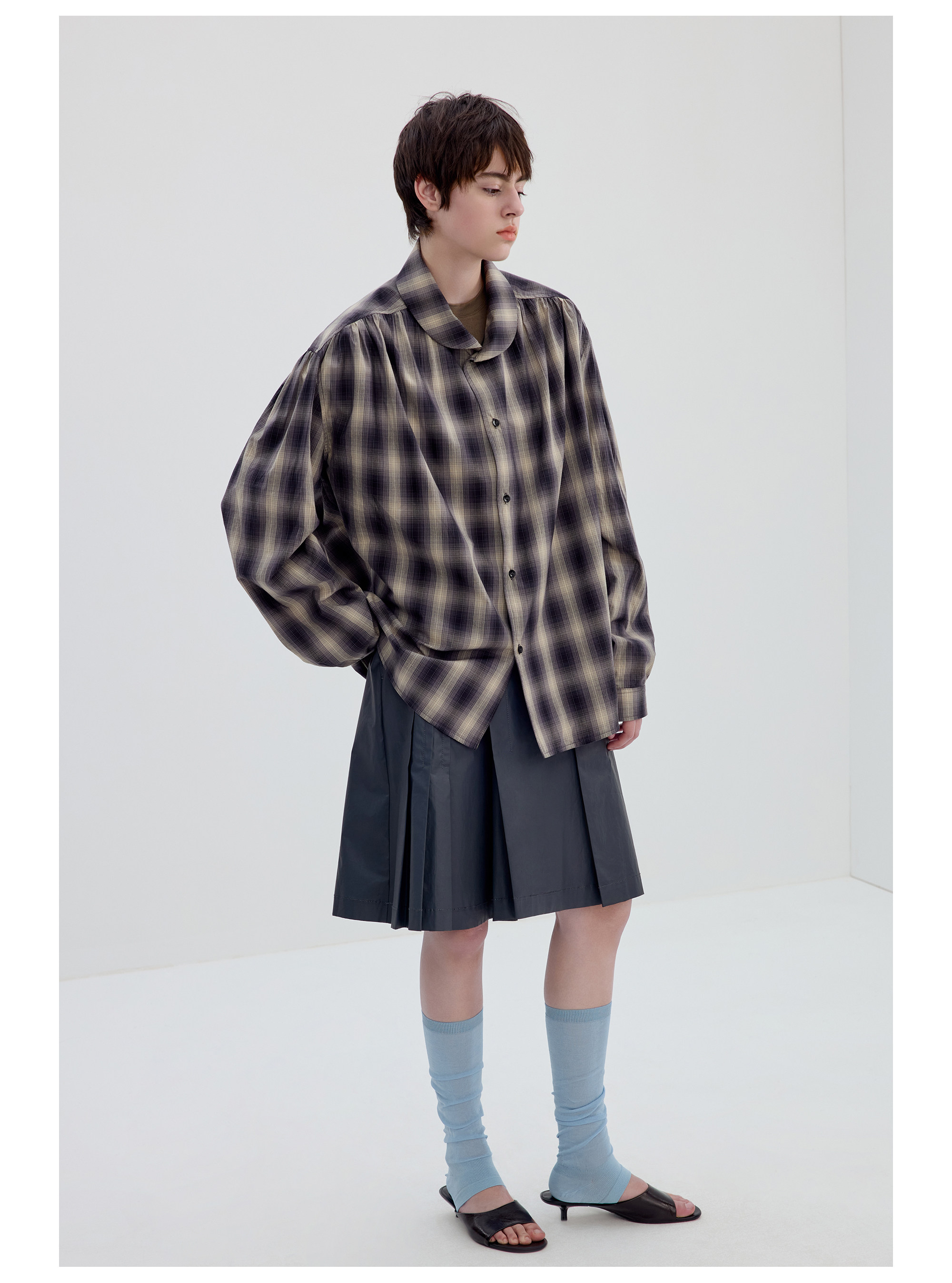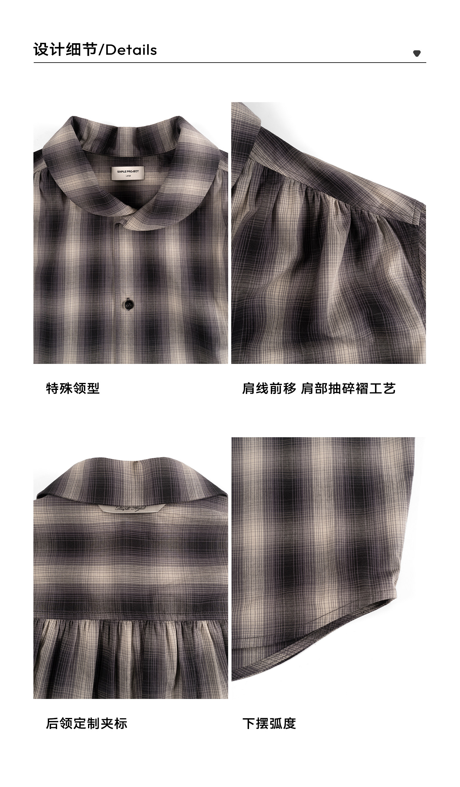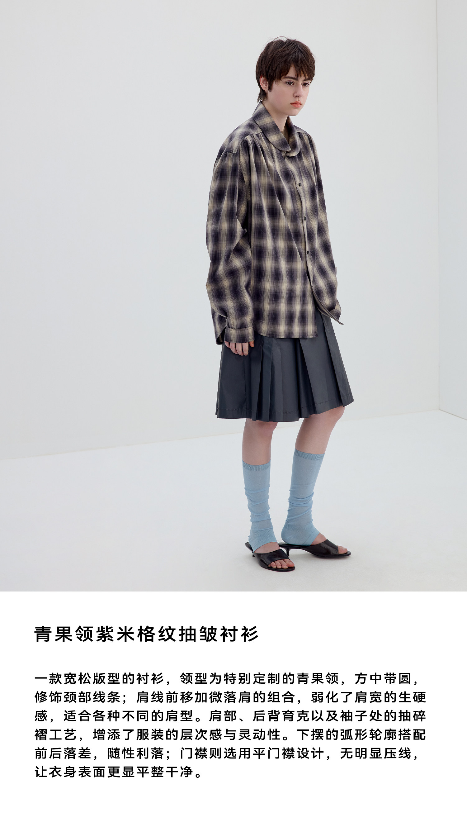 Simple Project/Y2633/青果领紫米格纹抽皱衬衫