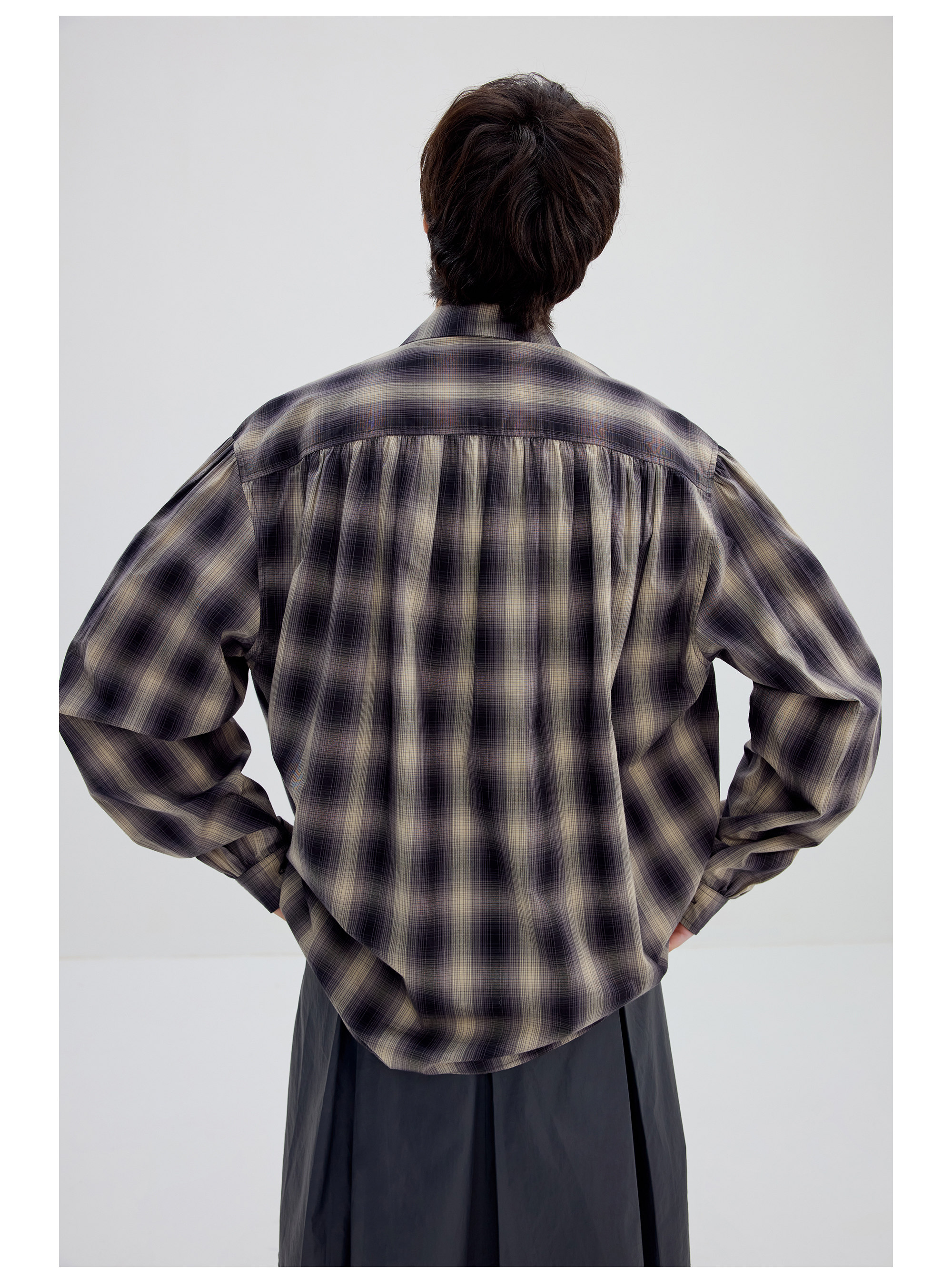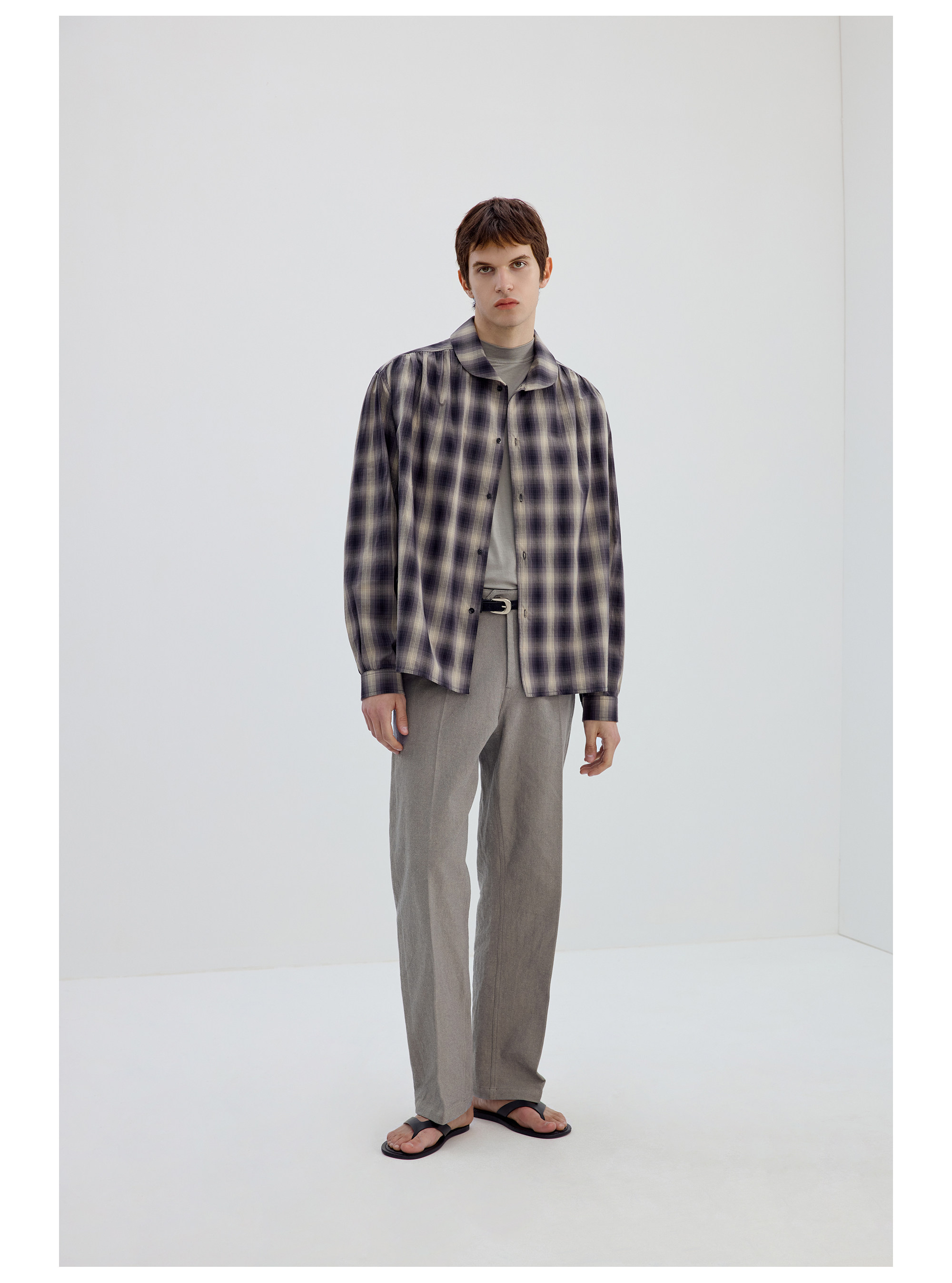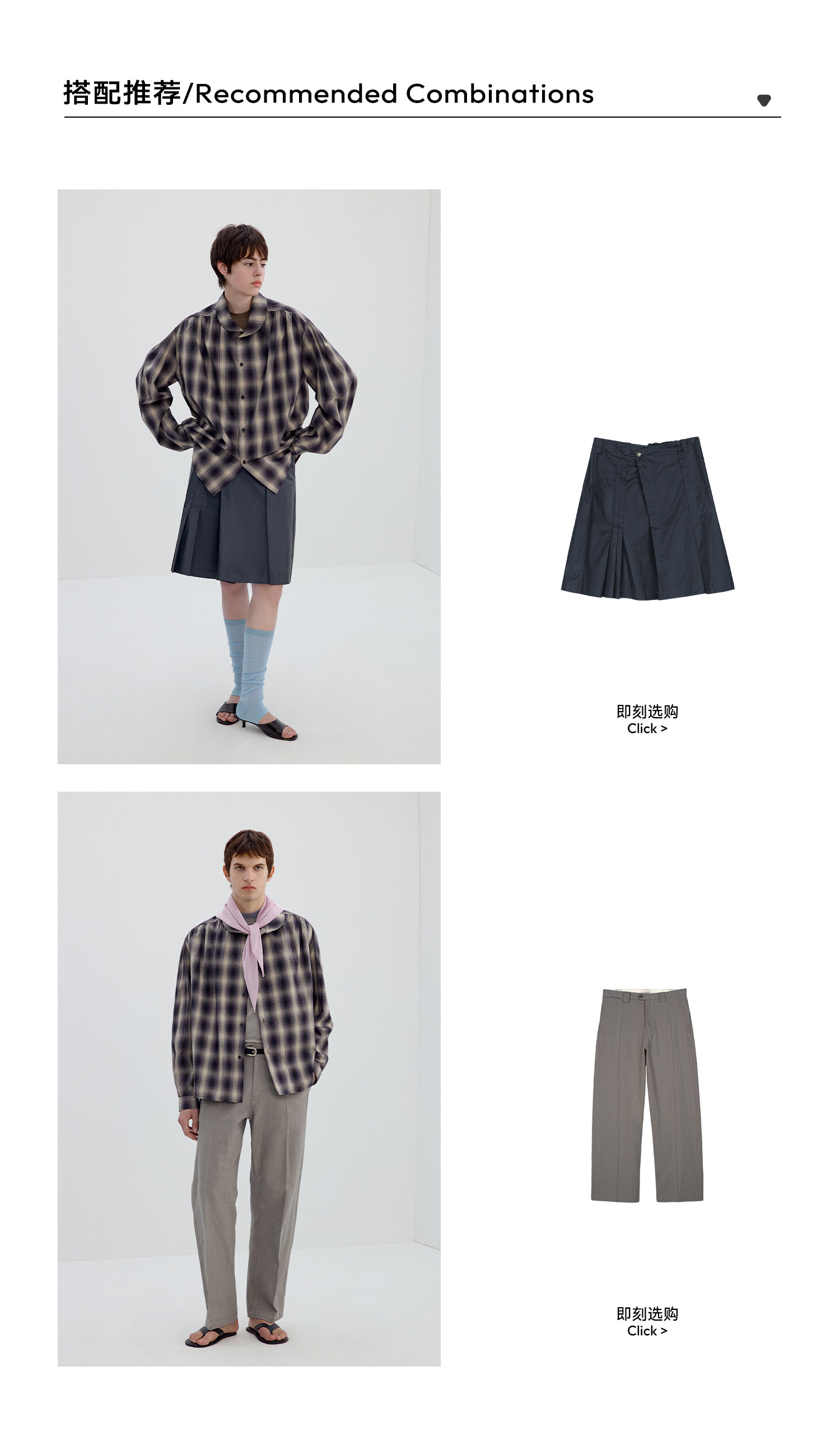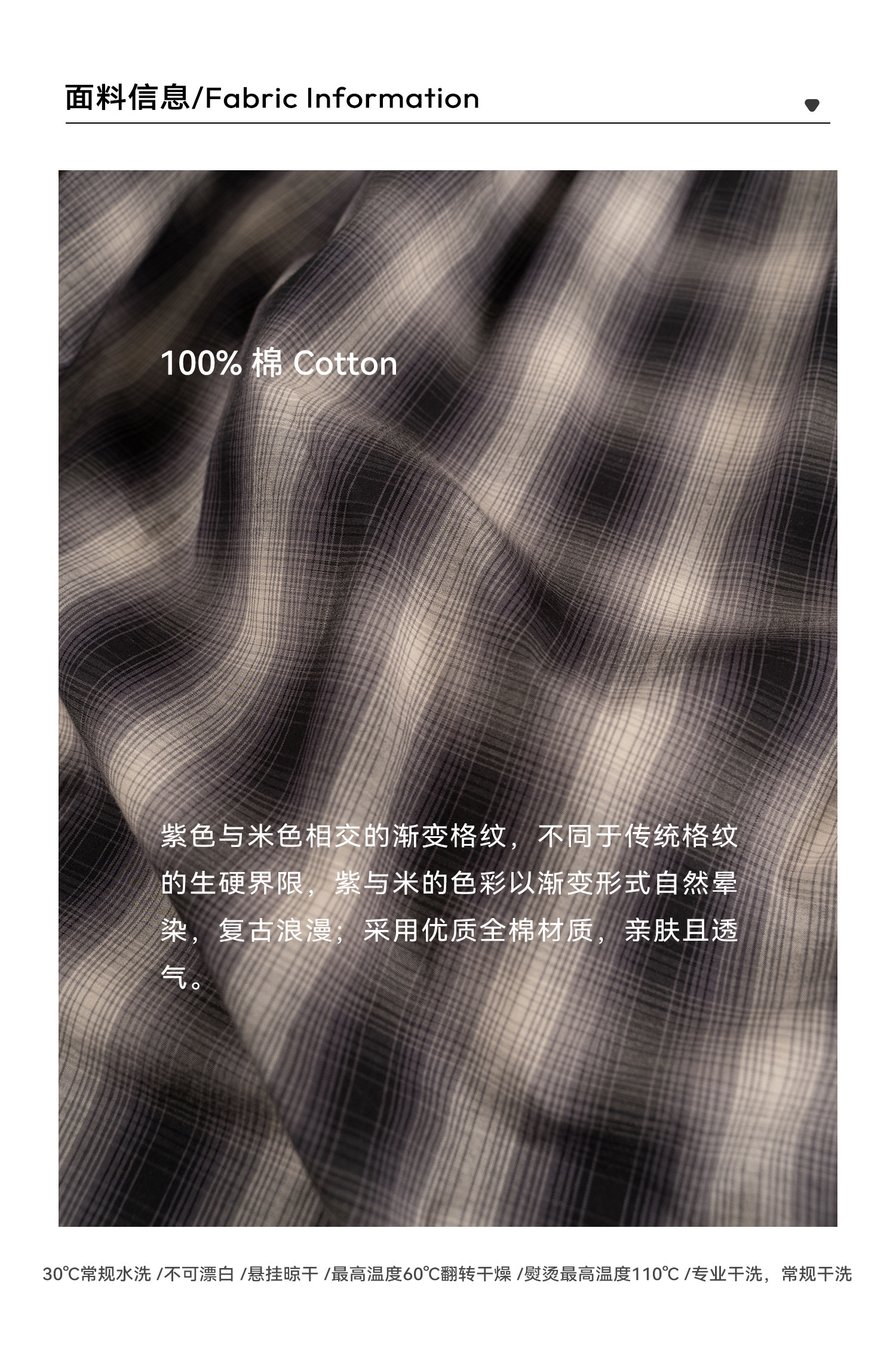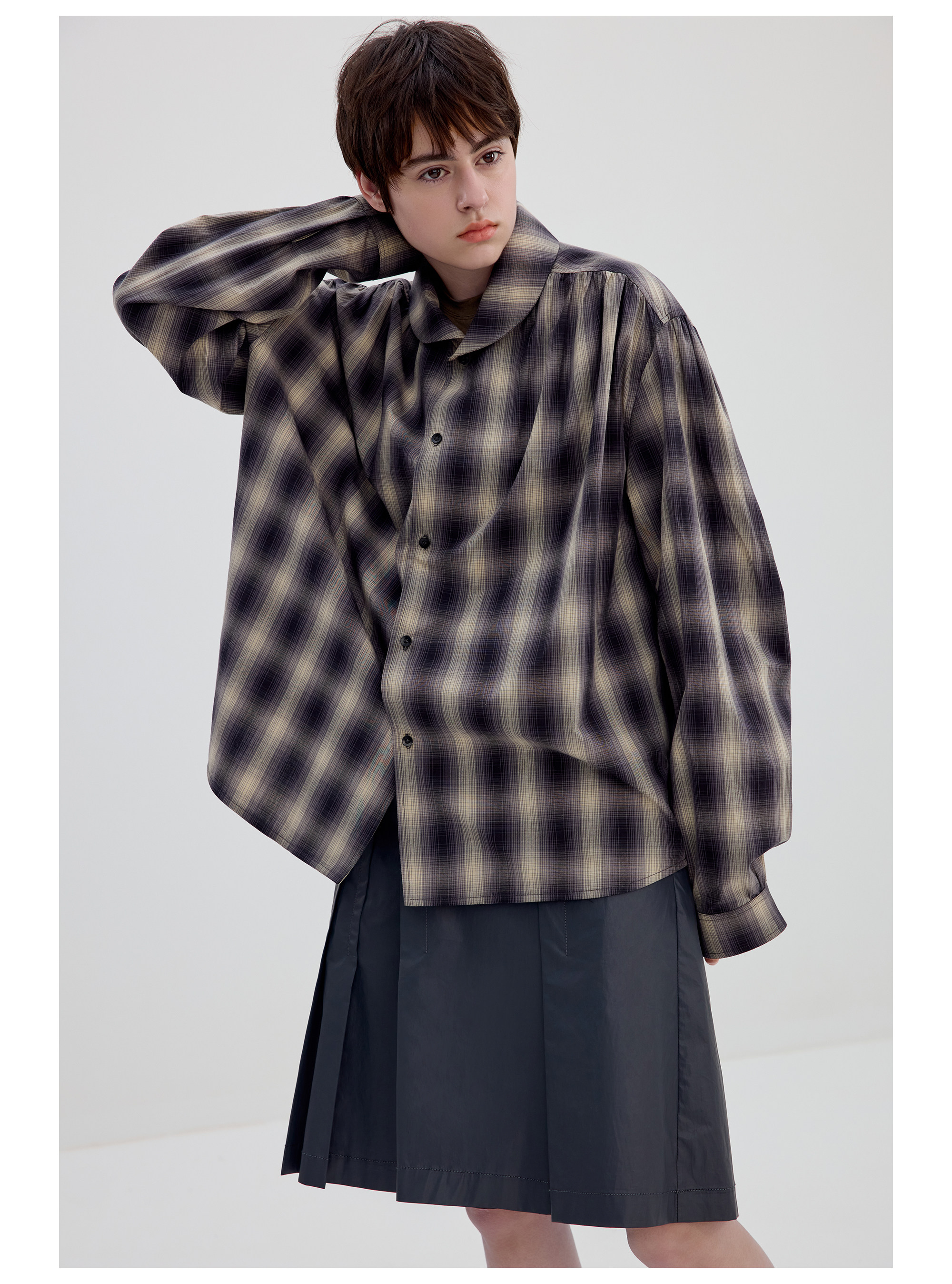 Simple Project/Y2633/青果领紫米格纹抽皱衬衫