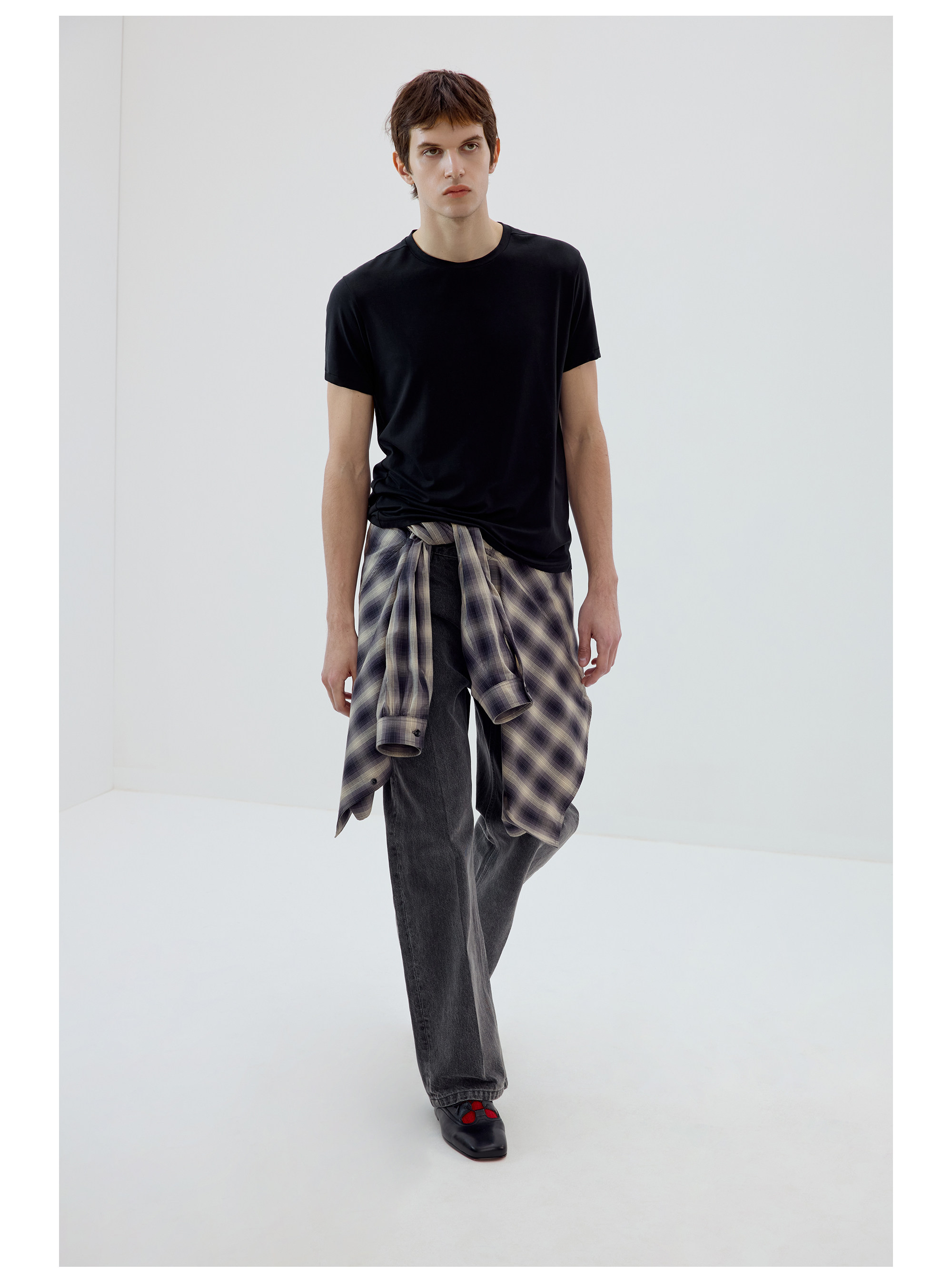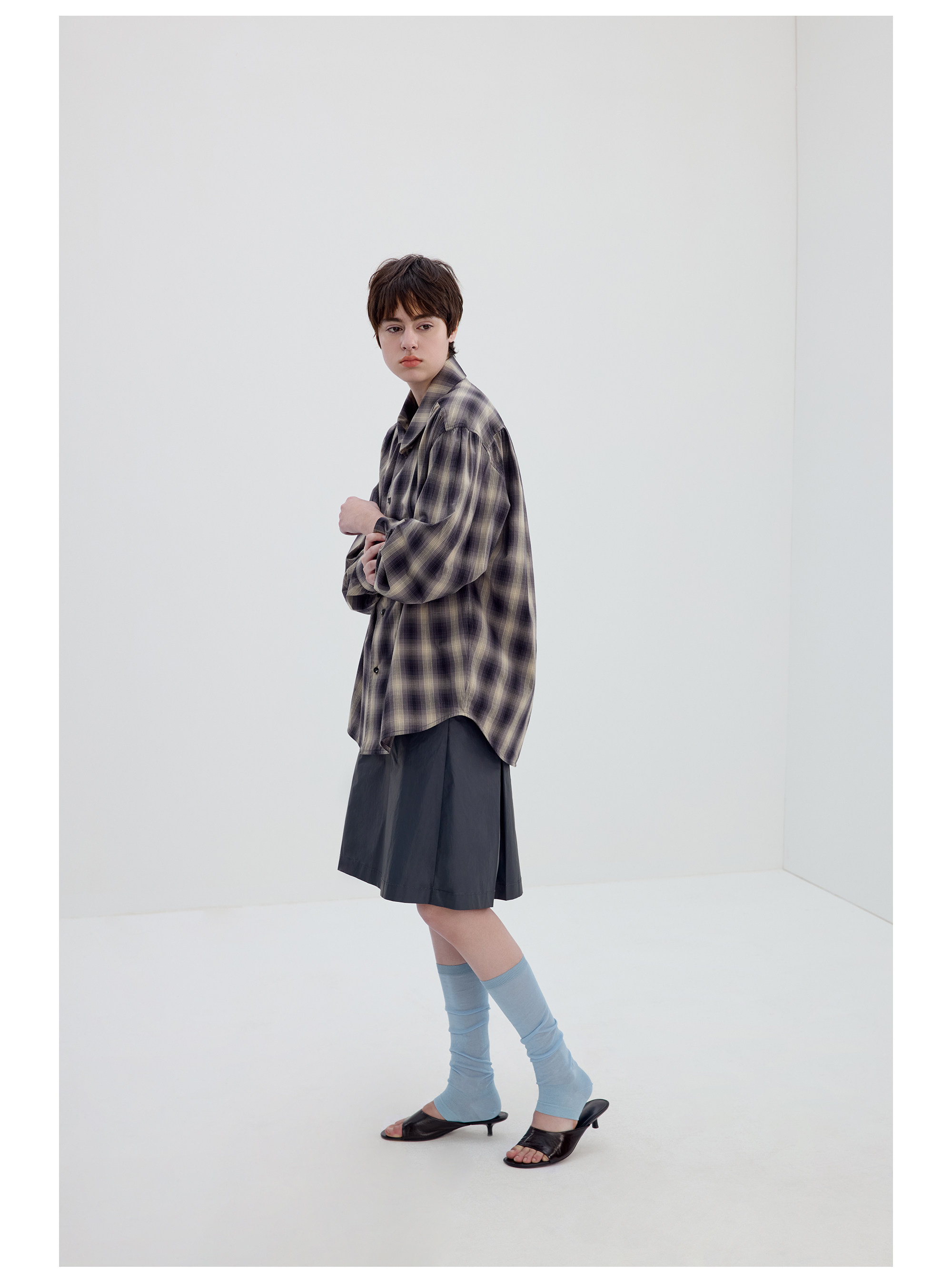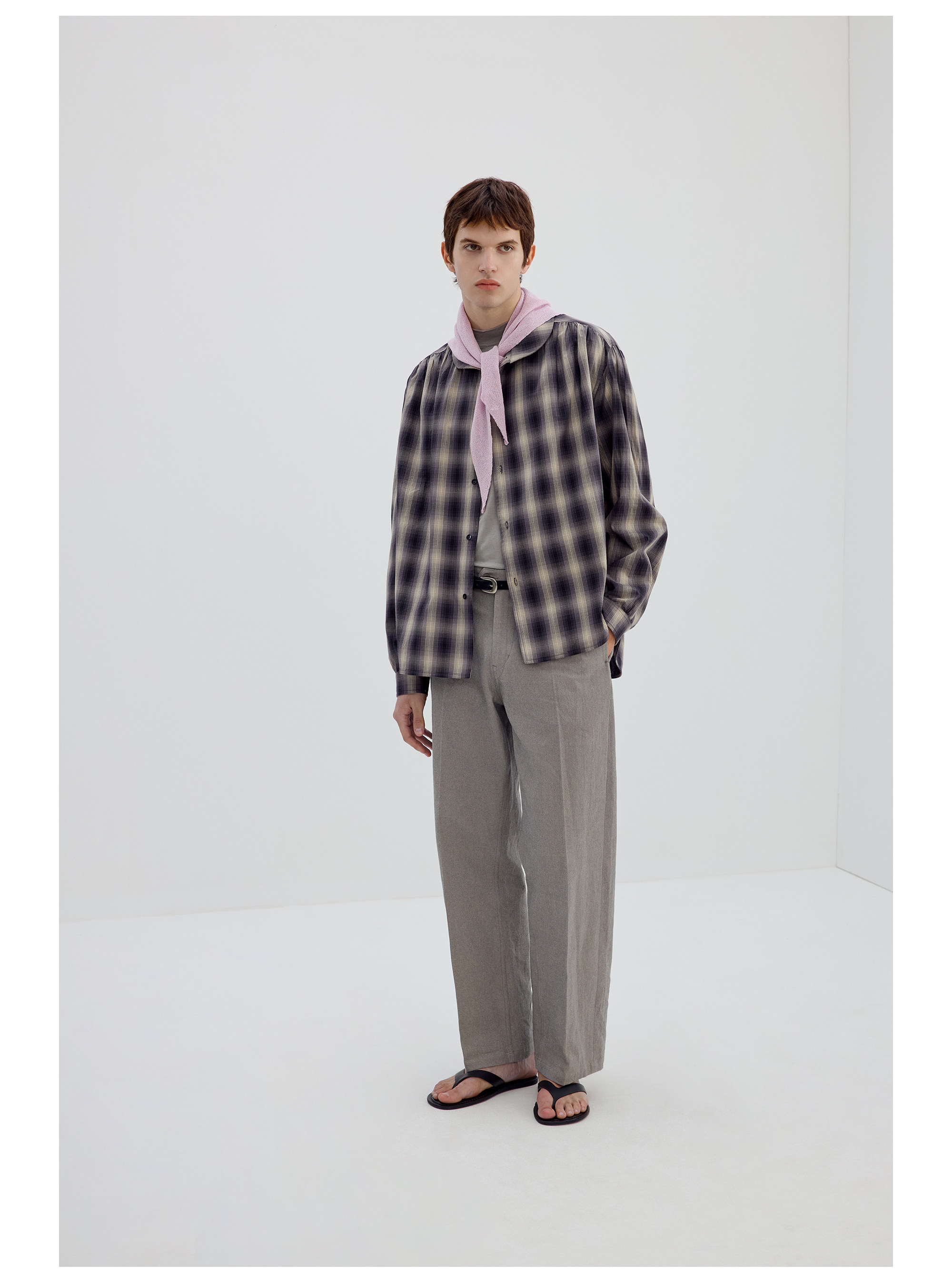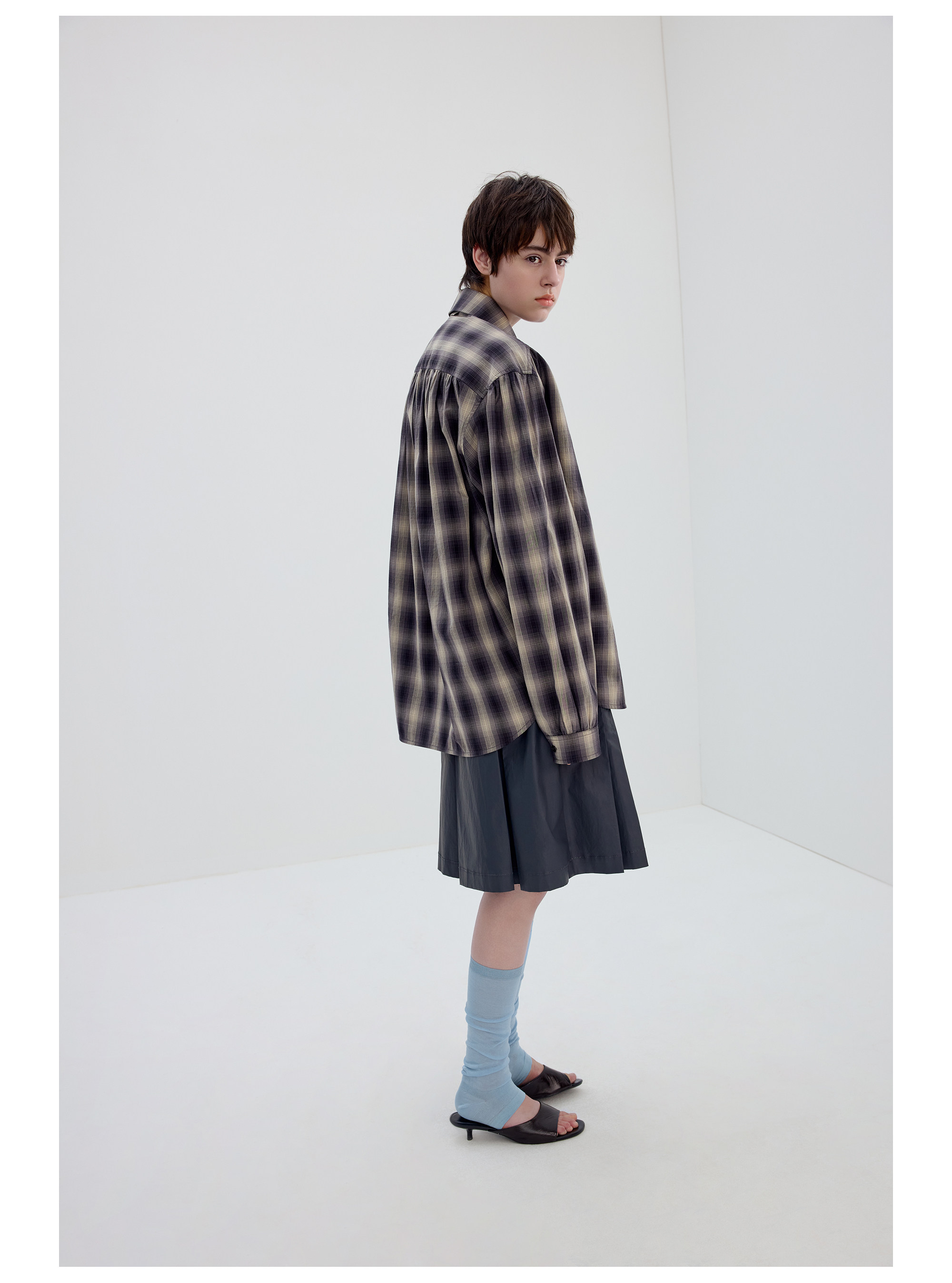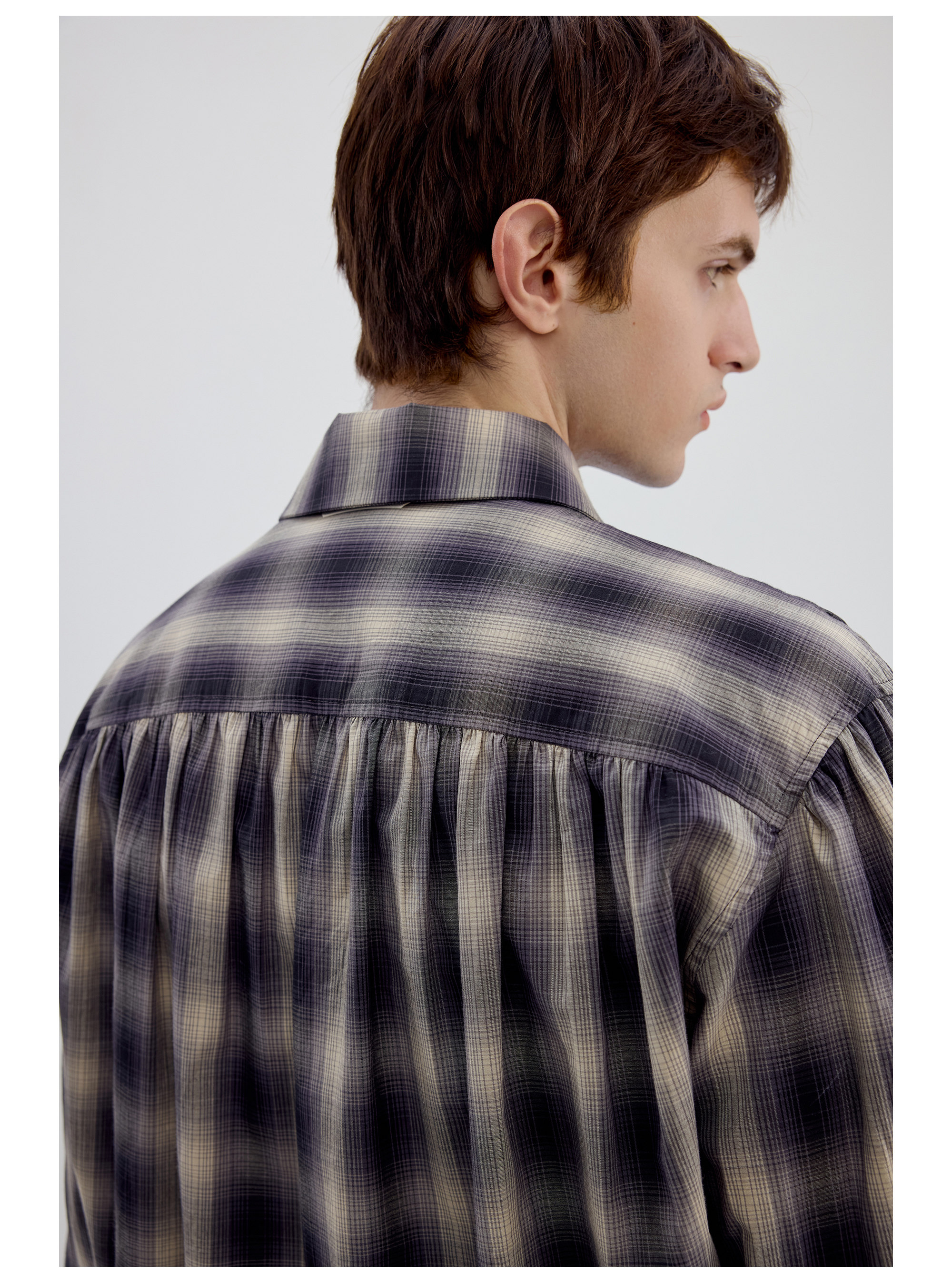 Simple Project/Y2633/青果领紫米格纹抽皱衬衫