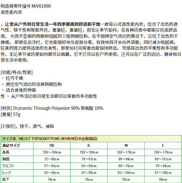 【实体店现货】MILLET觅乐女士户外运动休闲速干跨栏 背心 MIV01890