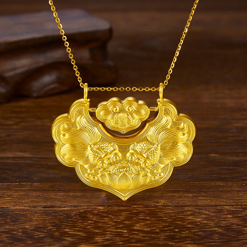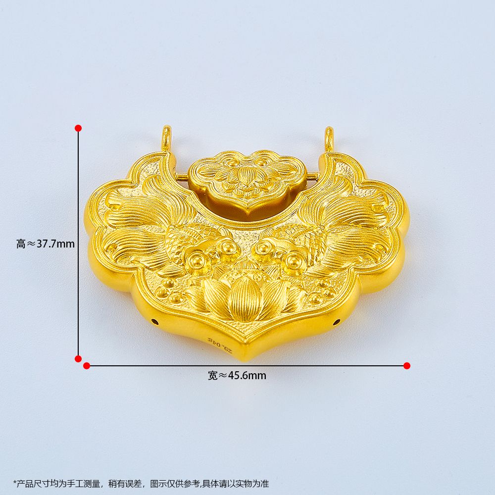 【限时克减150元】足金 #儿童/宝宝 【錾刻工艺】古法双面连年有余双鱼锦鲤锁包莲花平安如意锁包空心吊坠(不含链)(YGFDZ00216-2)(预售产品下单后不退款不退货不换货不补差价)
