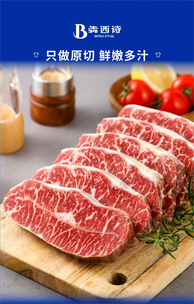 犇西诗原切谷饲板腱牛排原切牛排套餐800g