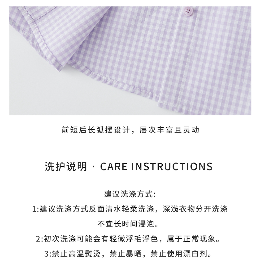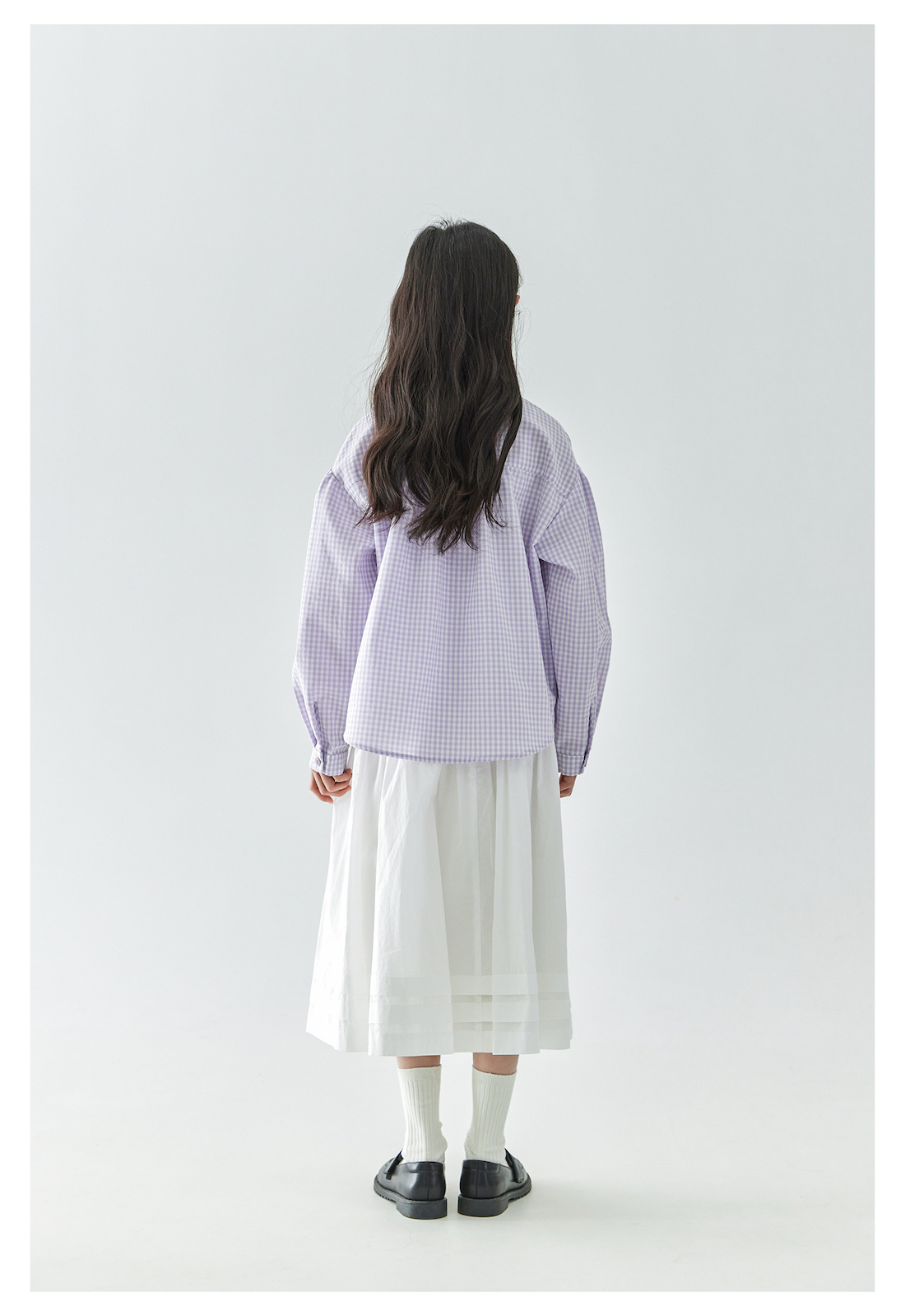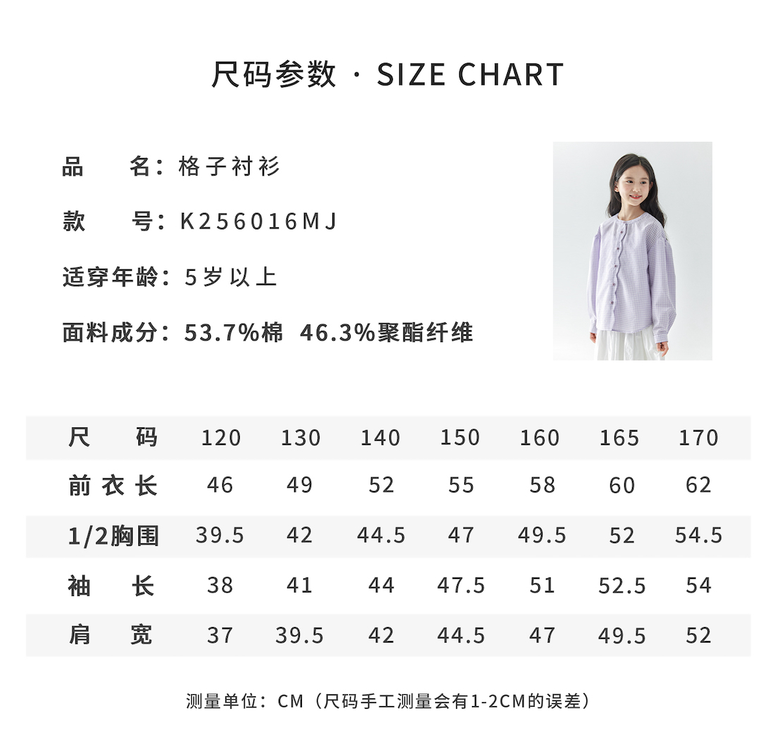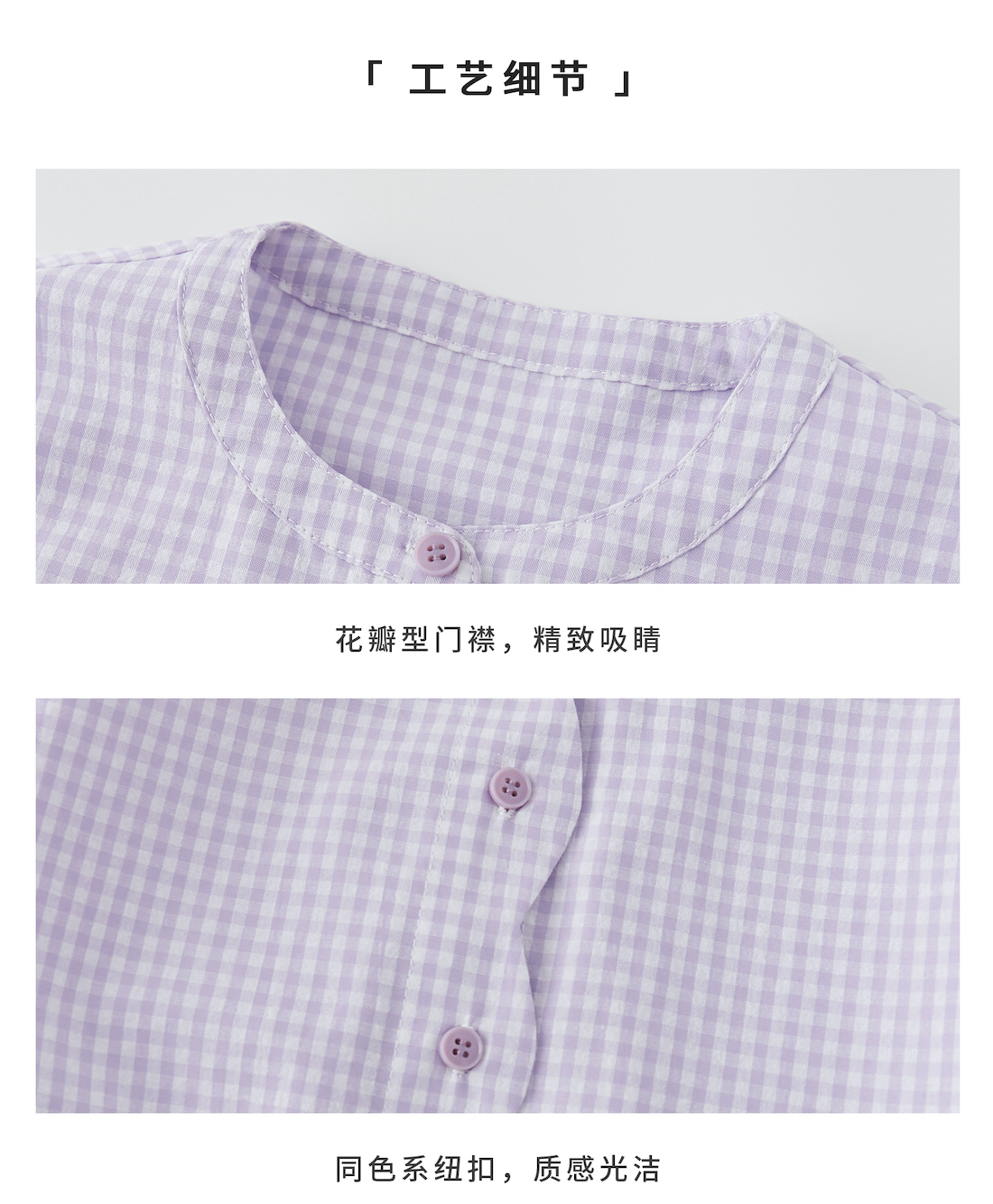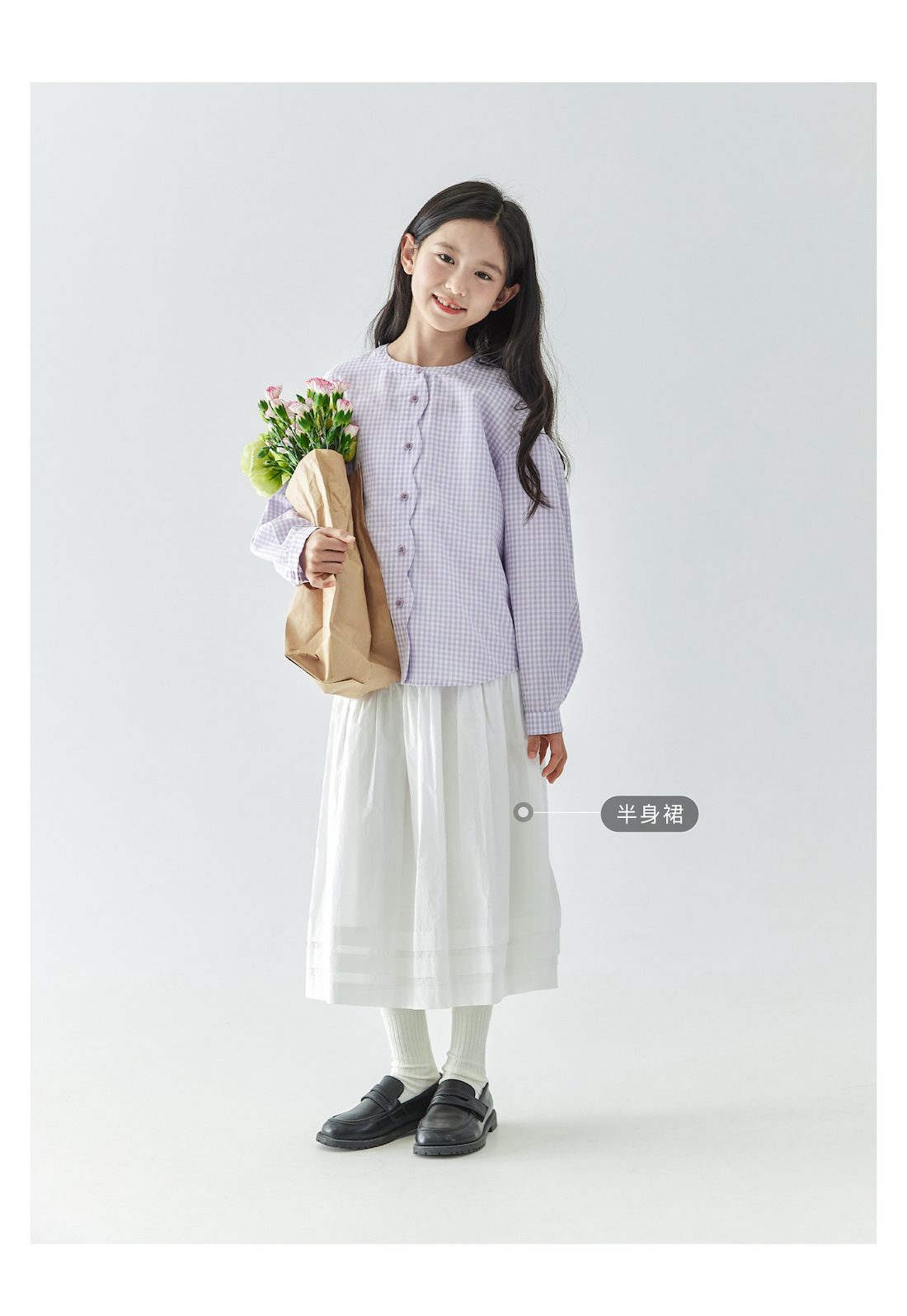 【代发】女款格子衬衫 棵初童装紫色格子长袖女童花瓣门襟文艺小衫