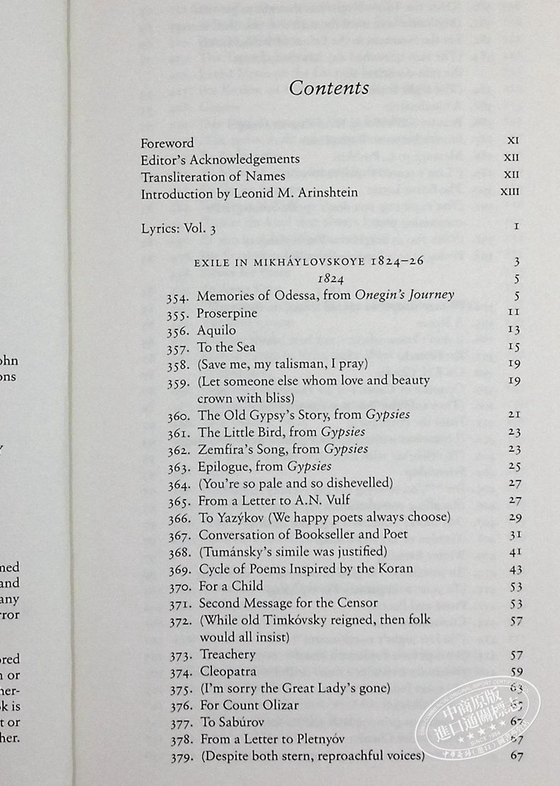 本卷是Alma出版的《亚历山大·普希金诗歌作品全集》系列的一部分,收集了普希金在20多岁时,在流亡到米哈伊洛夫斯科耶和随后回到大都市生活期间所写的诗。其中包括他的一些抒情杰作,如《致安娜·克恩》和《我爱着你》。 可以说是俄语中最著名的两首爱情诗--《致大海》、《安德烈·谢尼埃》、《先知》、《致尼古拉一世的诗句》、《西伯利亚矿区深处》、《阿里翁》、《天使》、《护身符》、《纪念》、《一朵花》和《安查尔,毒树》,每首诗都以俄语-英语双语对照的诗句呈现。本书内容丰富,有注释、图片和关于普希金生活和作品的附录,对于希望探索这位俄罗斯诗人的天才的人来说,这将是必不可少的读物。