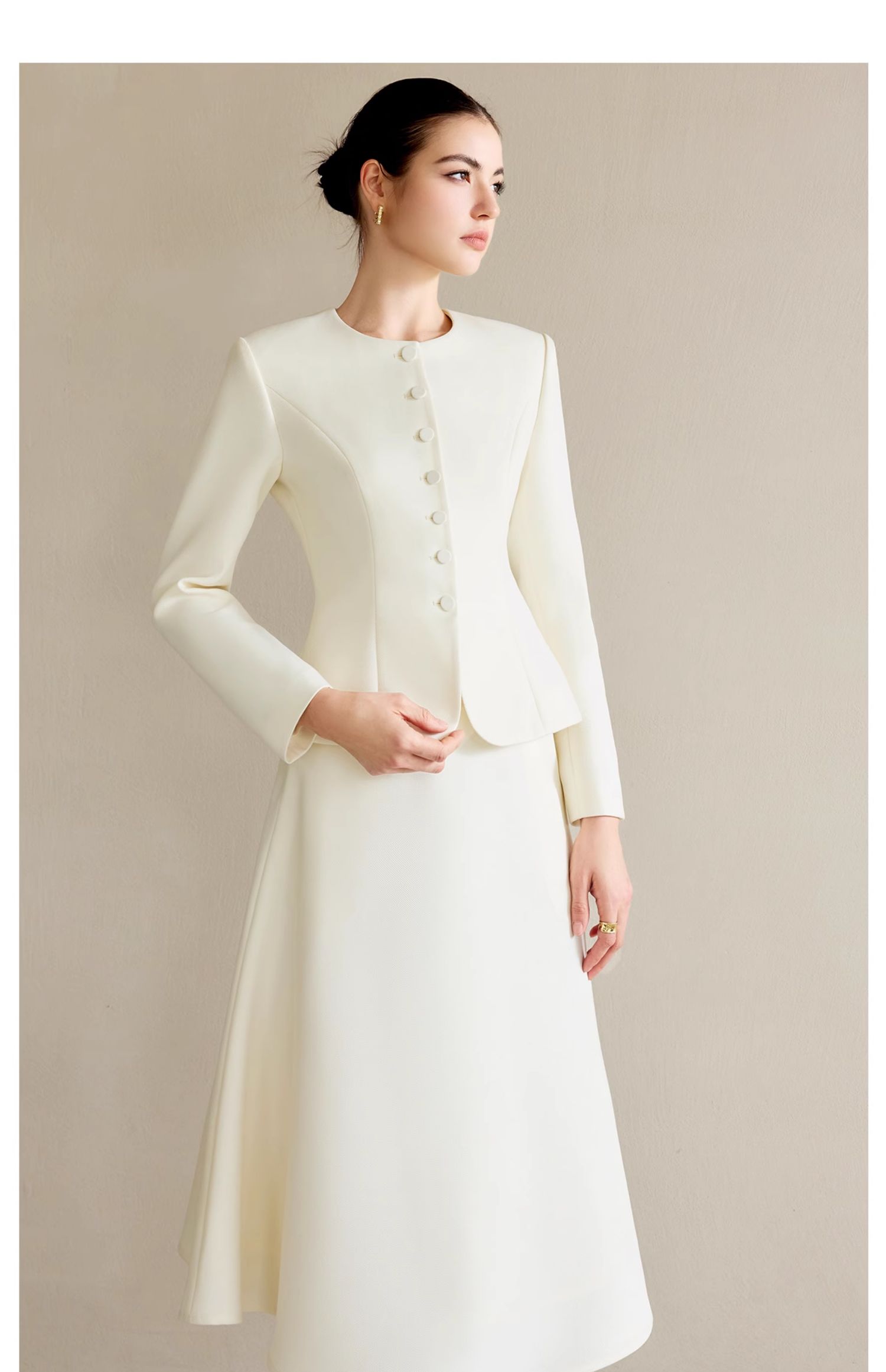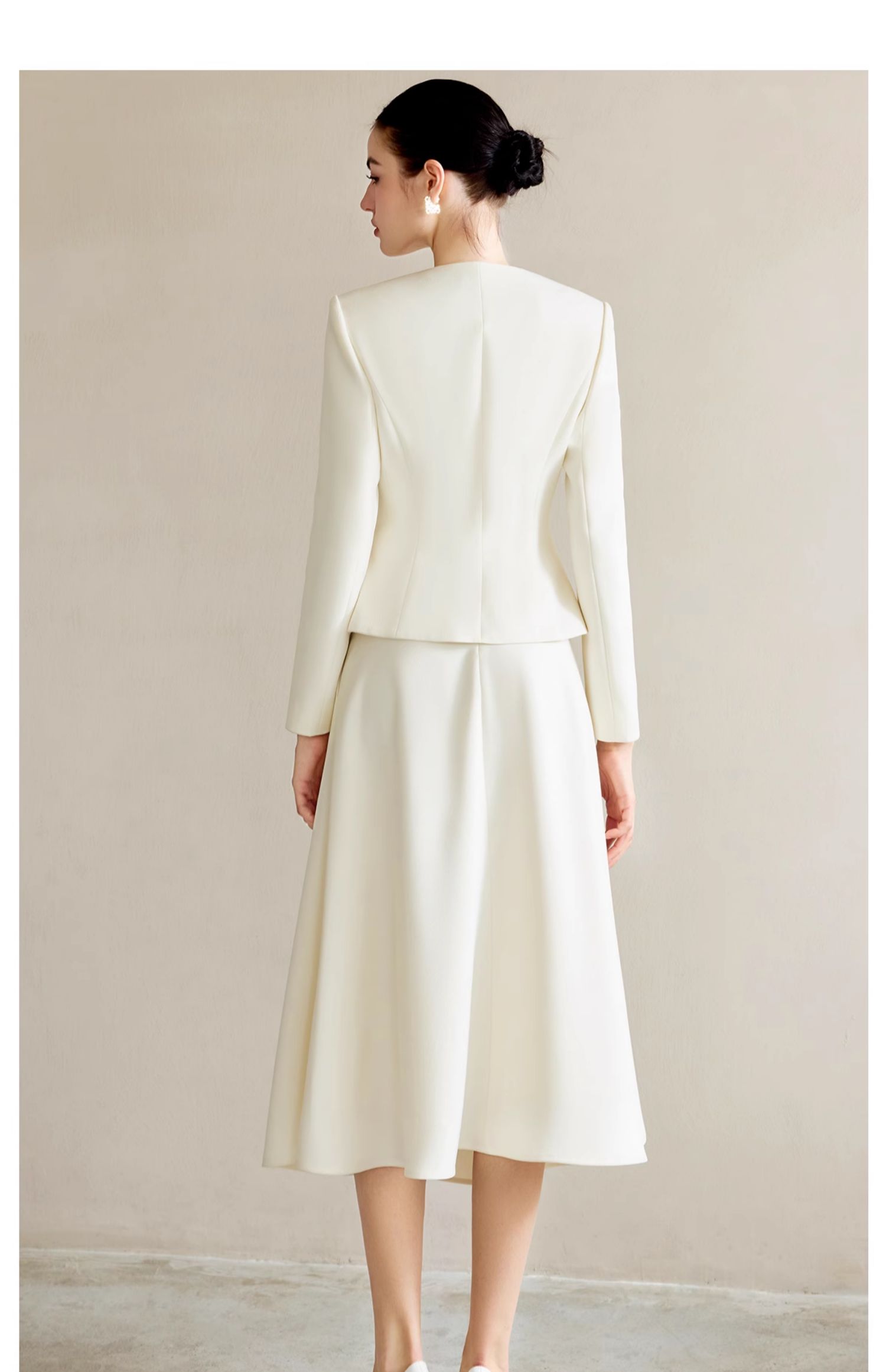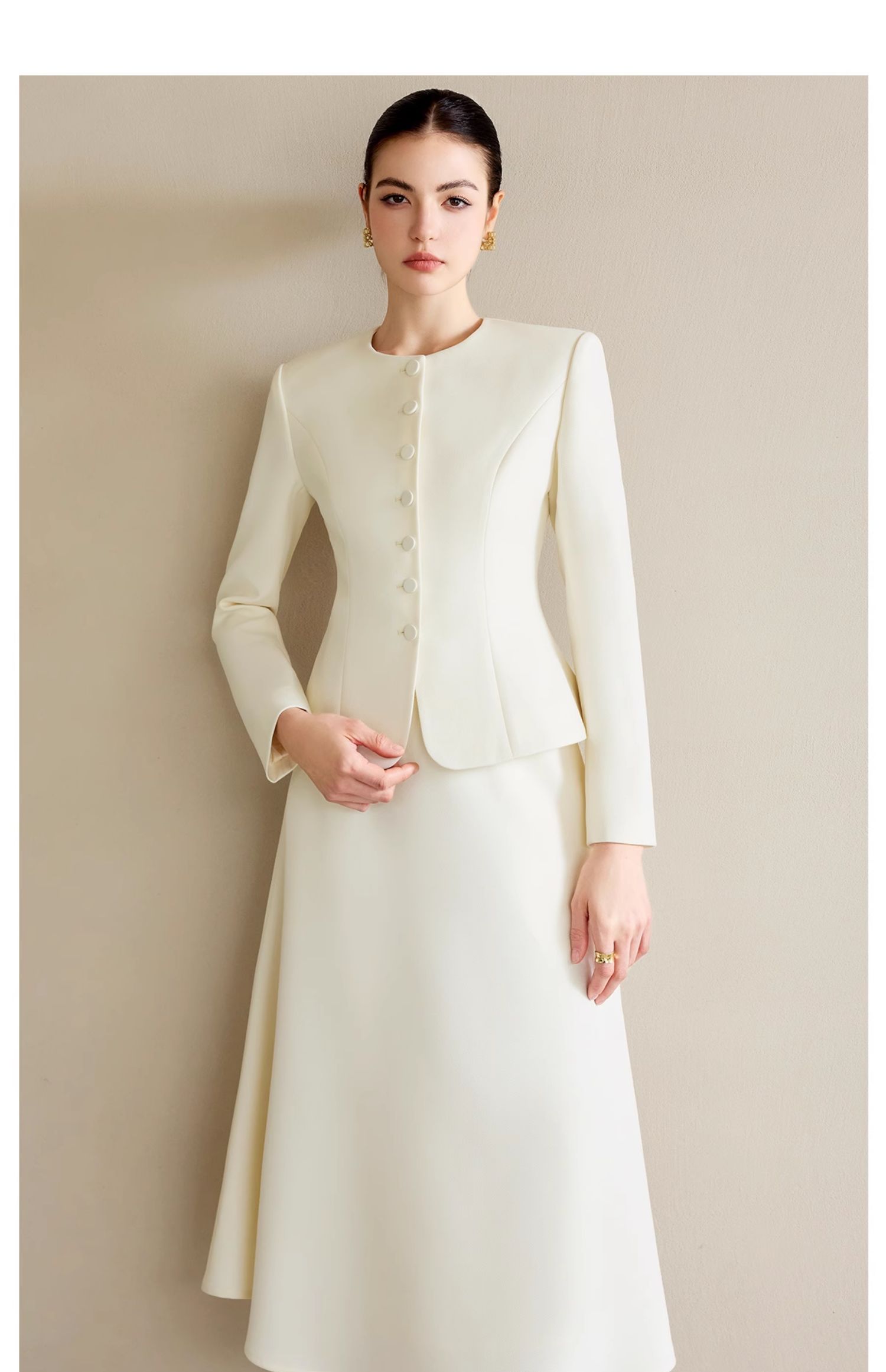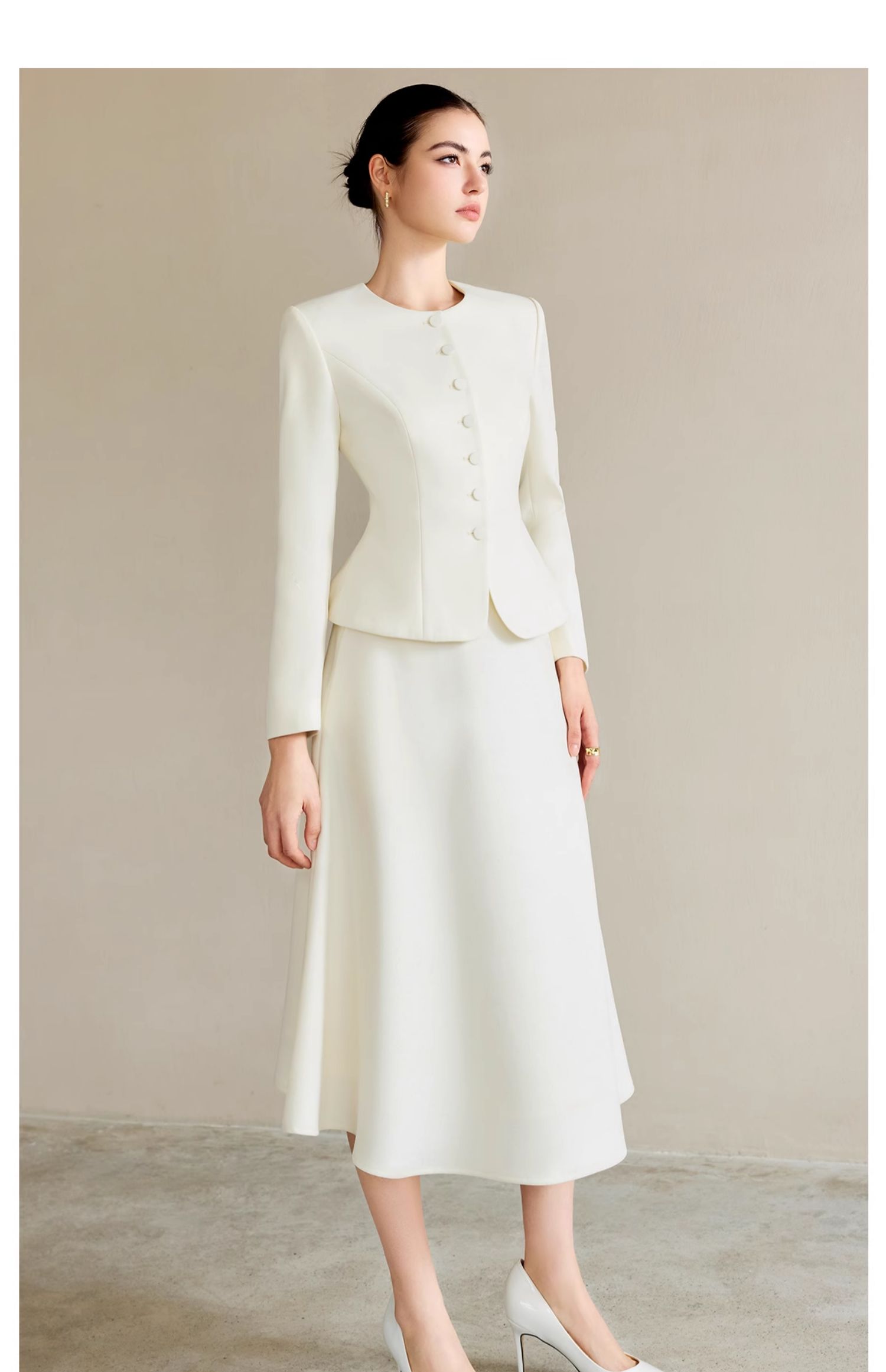 IWY/米白色职业装气质女神范套装女高端细闪银丝圆领西装正装伞裙两件套C2103-M+S2112
