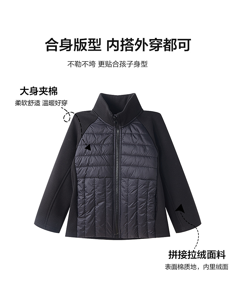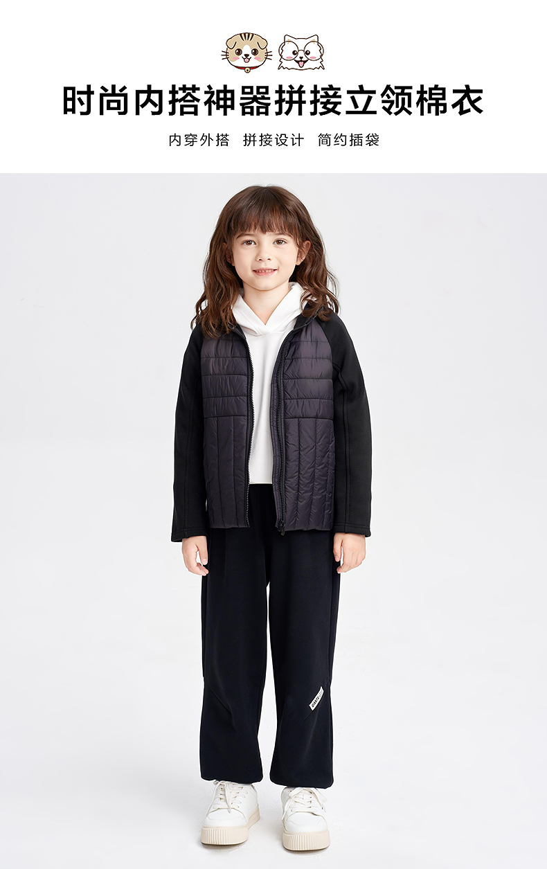 笛莎千与2025冬季新款男女童时尚内搭神器拼接立领棉衣