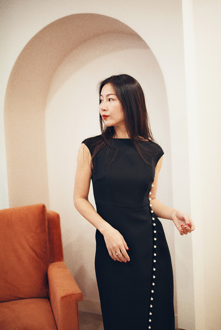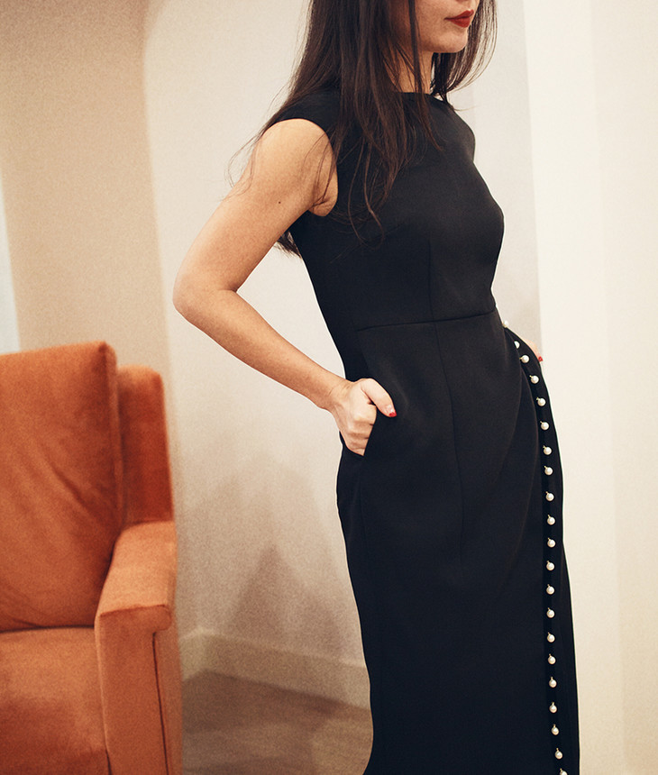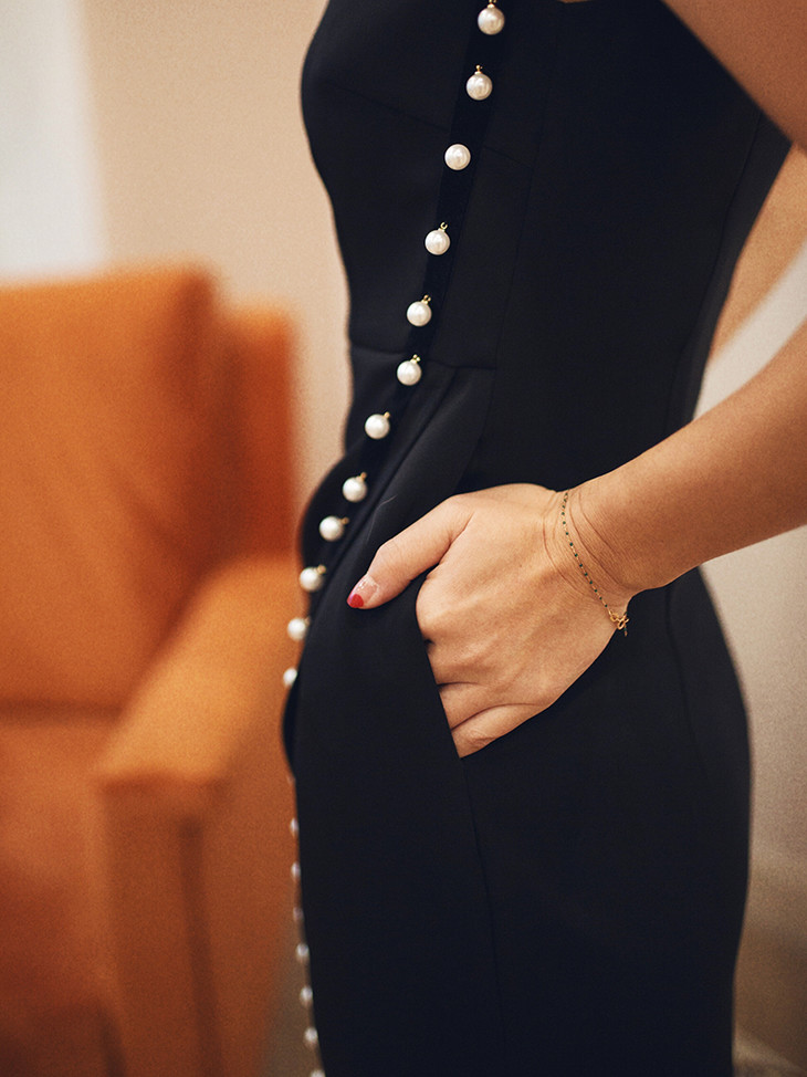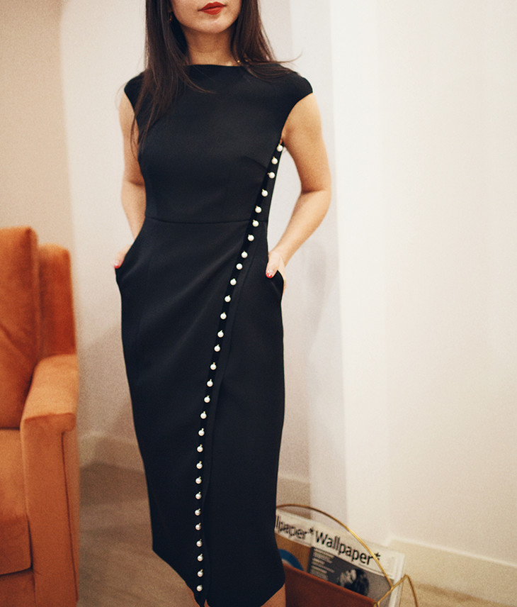 AtelierMissLu / Viola 光泽黑一字肩珍珠连身裙