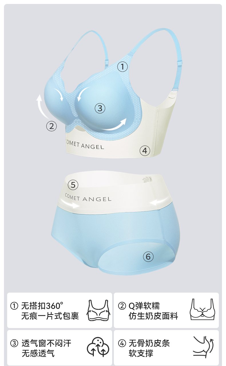 送内裤 里裆7.2%桑蚕丝 无痕内衣套装 FX-A-149 【彗星天使】