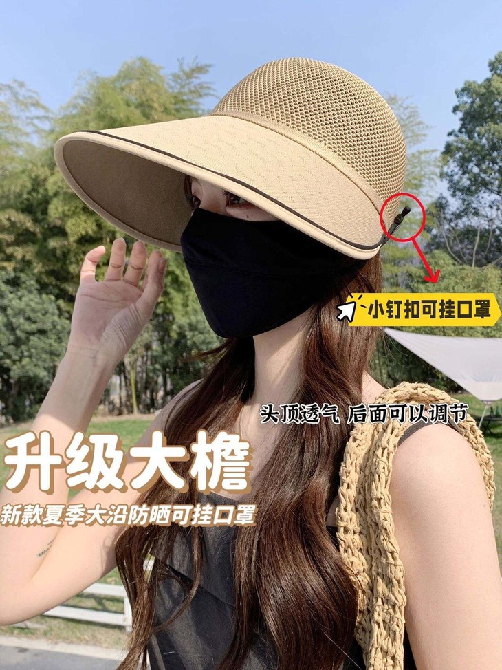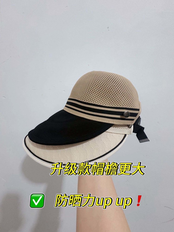 升级款比老款帽檐更大,防晒力up❗ 版型更挺括!修饰脸型,更显脸小❗ 可挂口罩,解放双耳❗