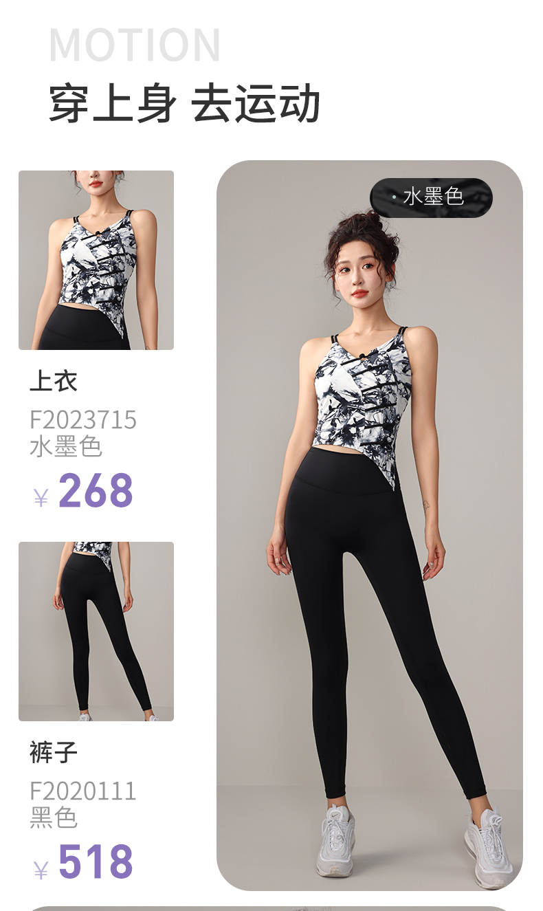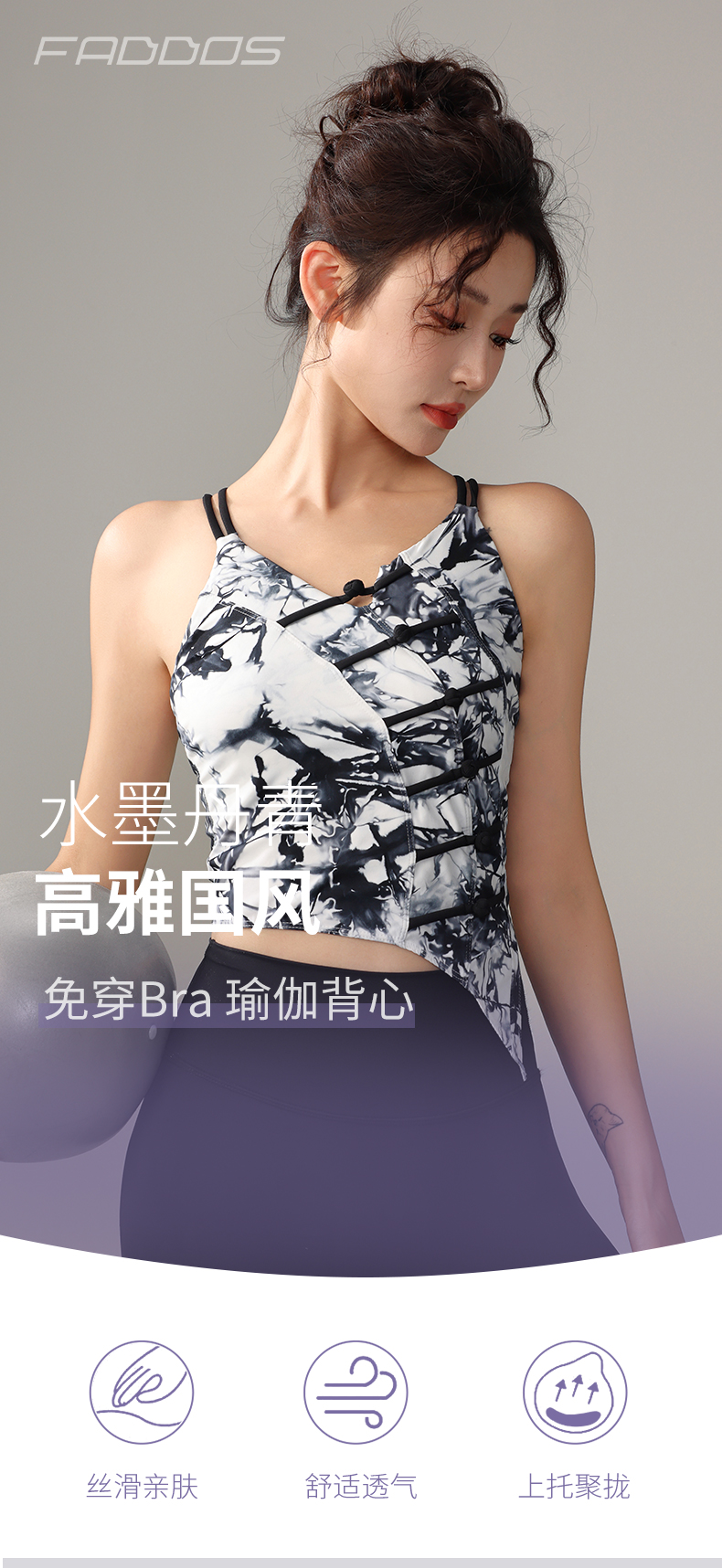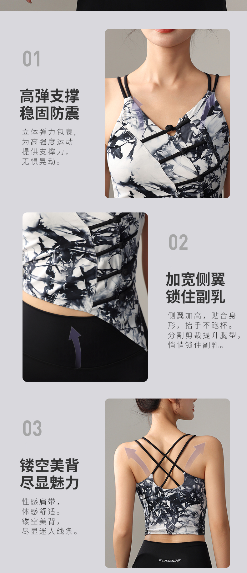 F2023715梵蒂欧国风水墨瑜伽吊带背心(含胸垫)