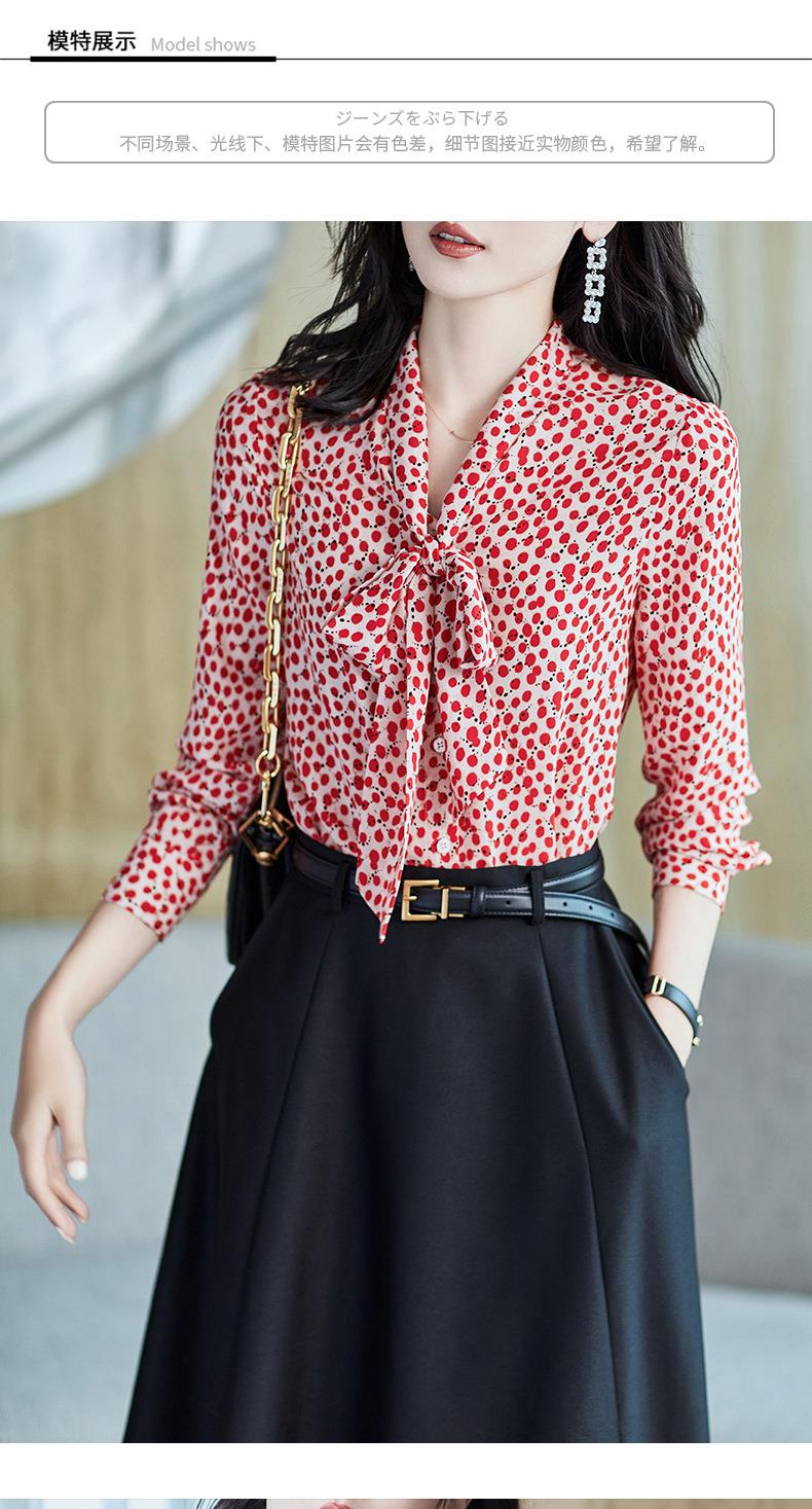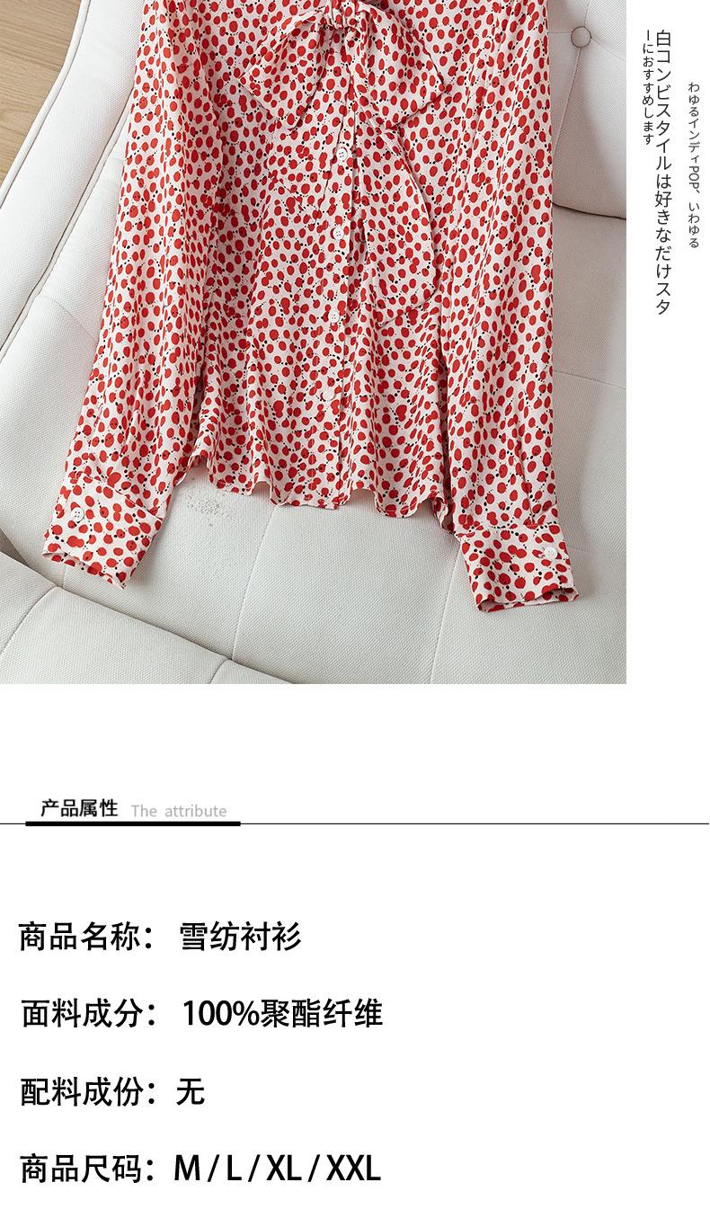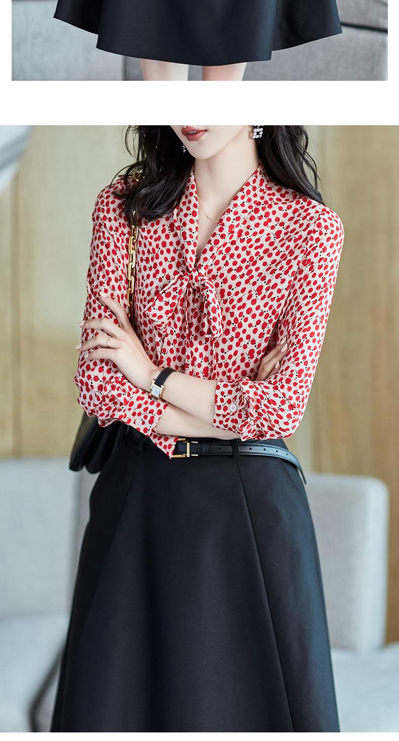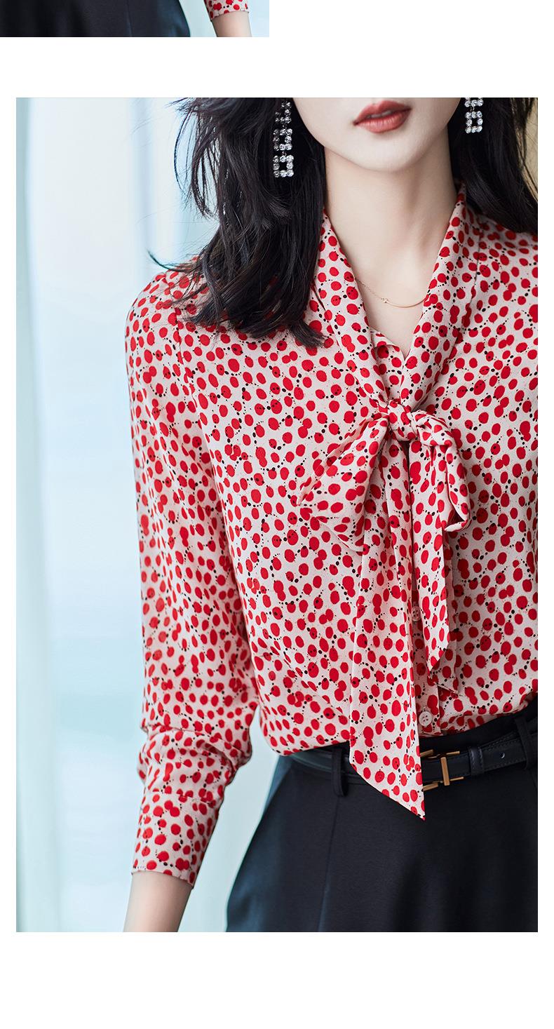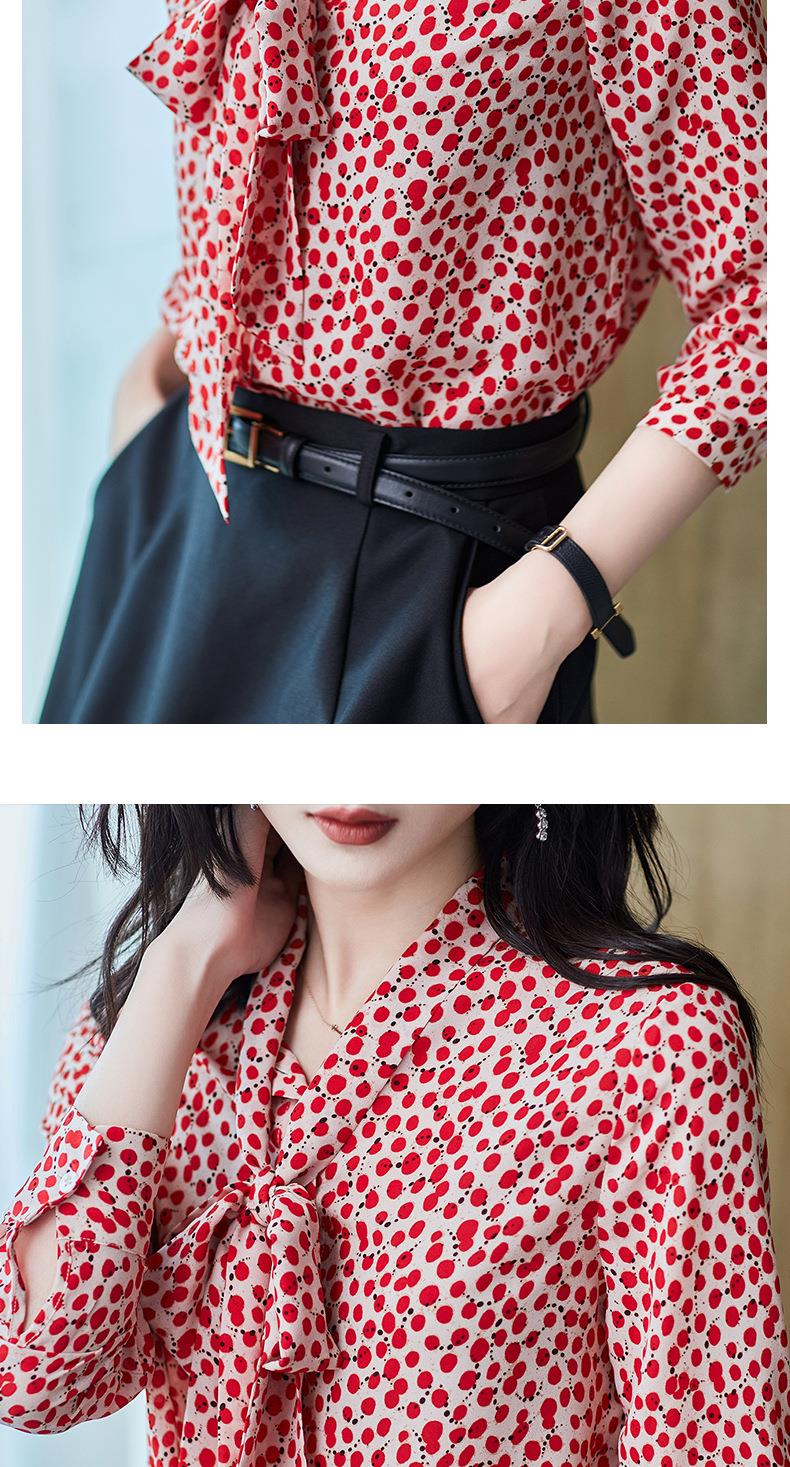 2023秋装新款衬衫女长袖宽松雪纺衫红色女士衬衣A2722