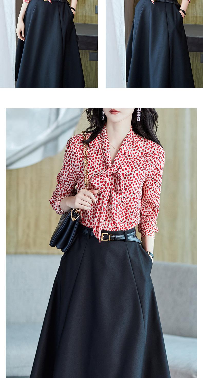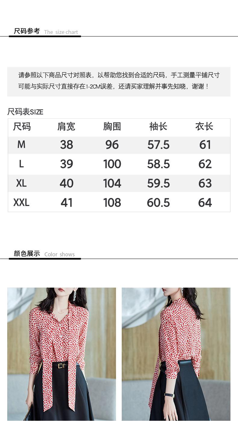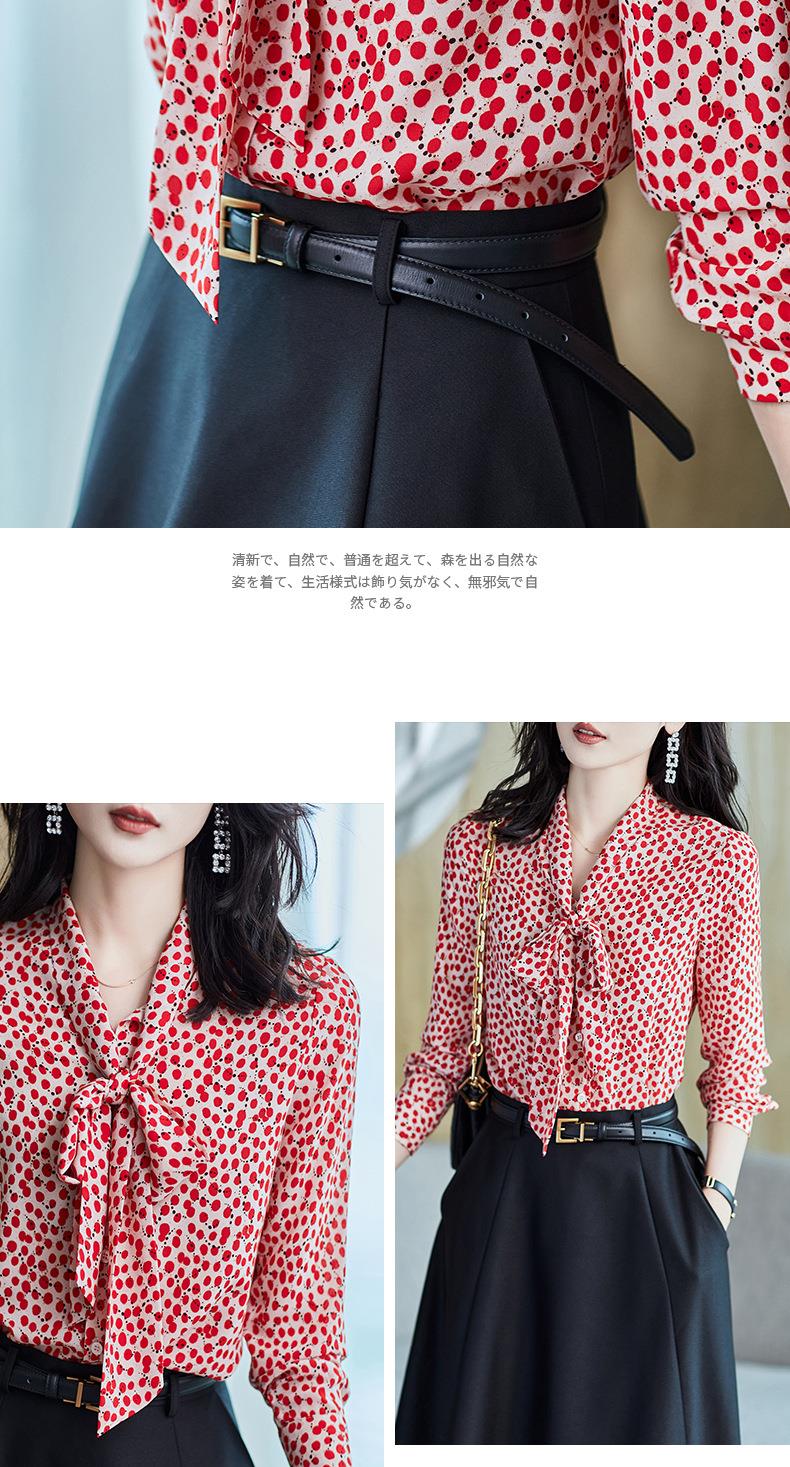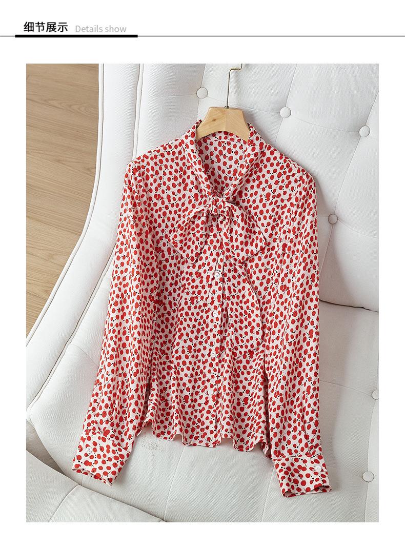 2023秋装新款衬衫女长袖宽松雪纺衫红色女士衬衣A2722