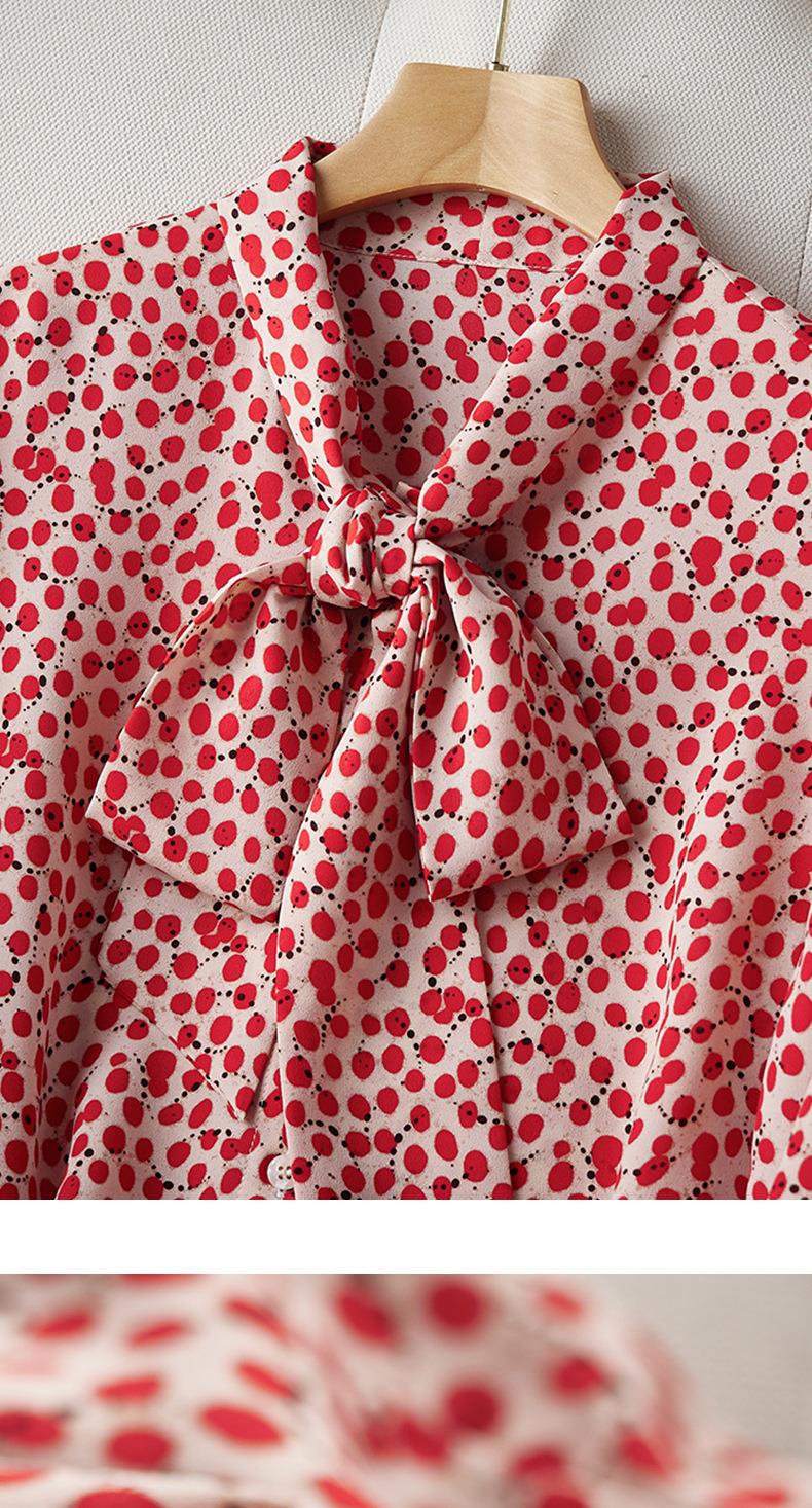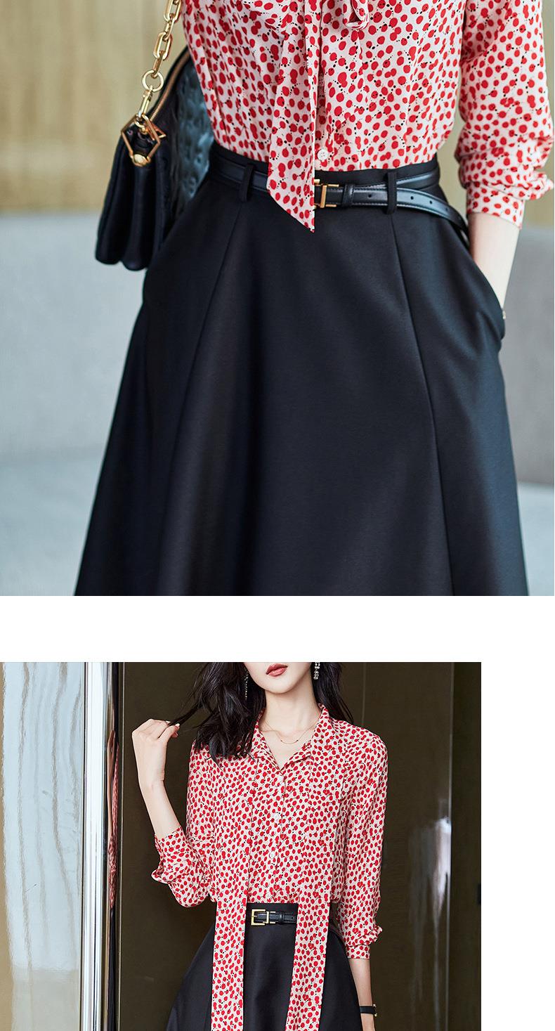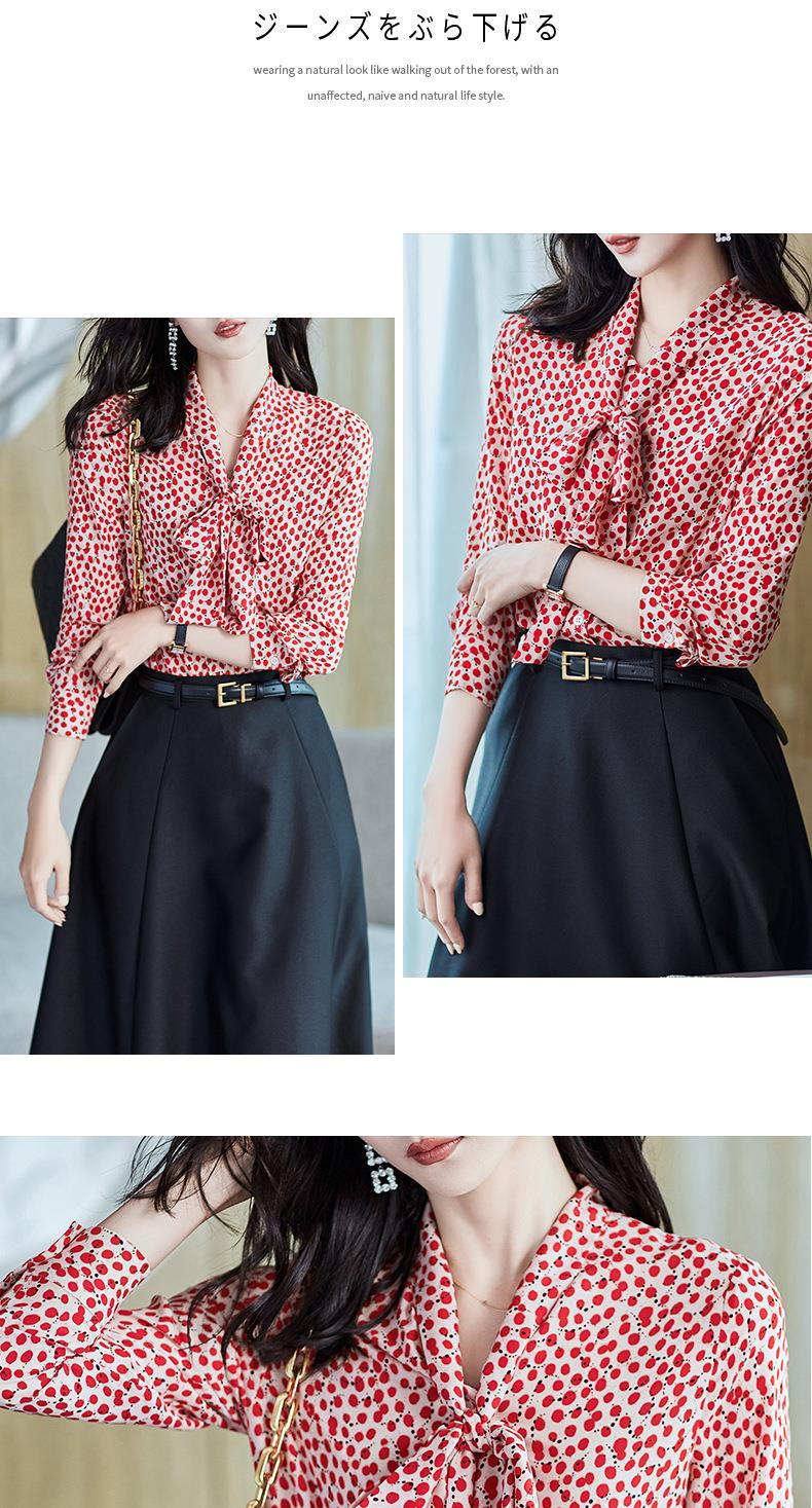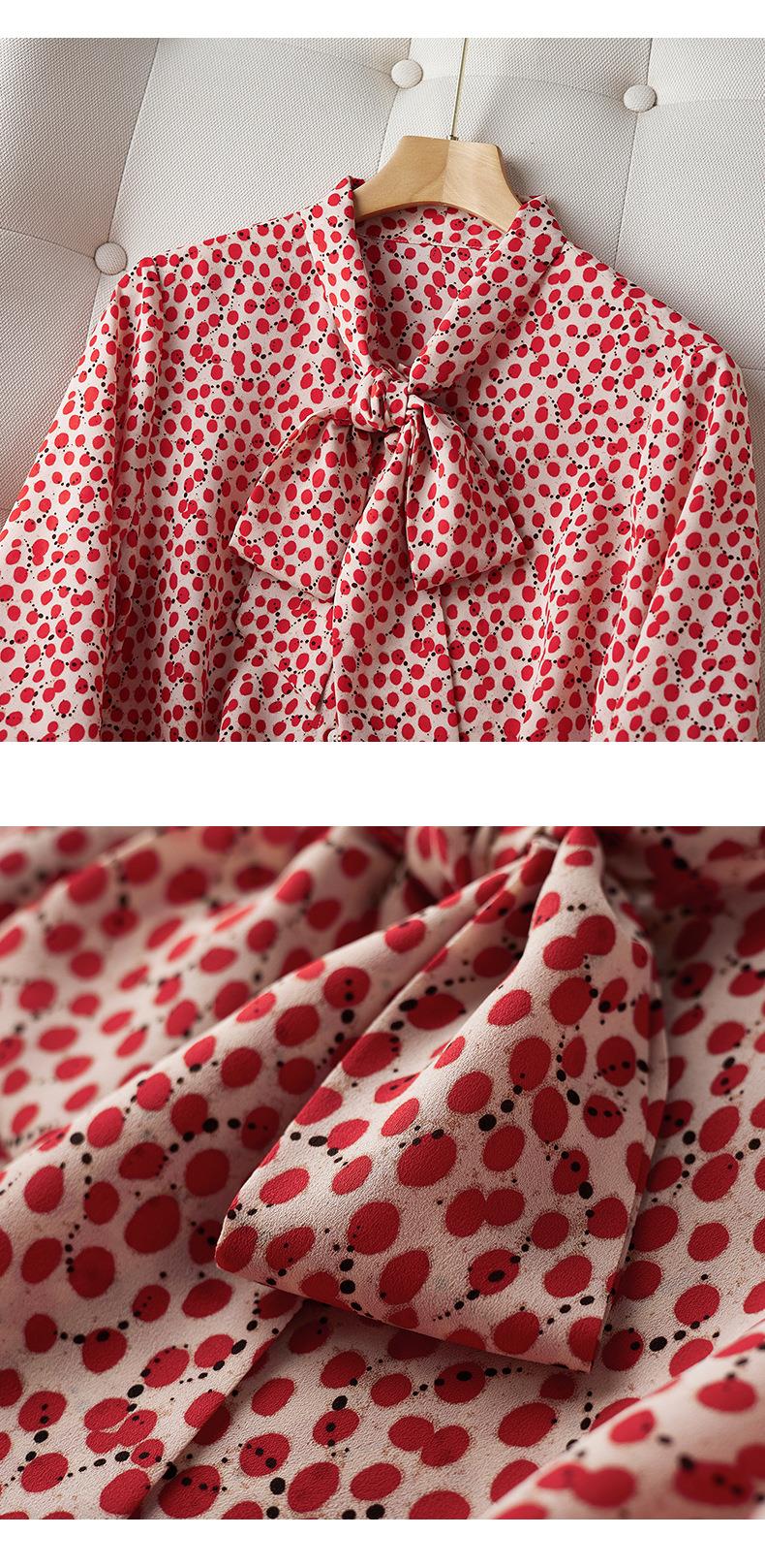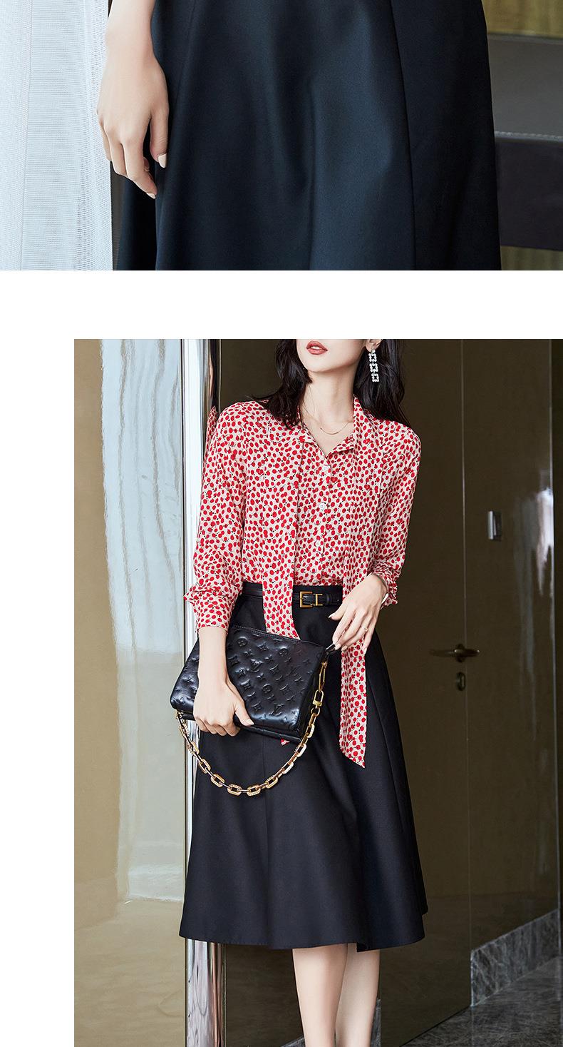 2023秋装新款衬衫女长袖宽松雪纺衫红色女士衬衣A2722
