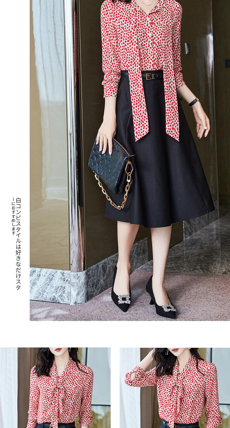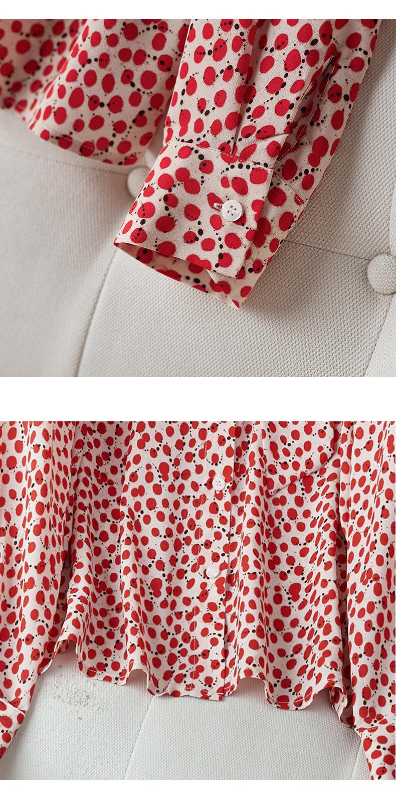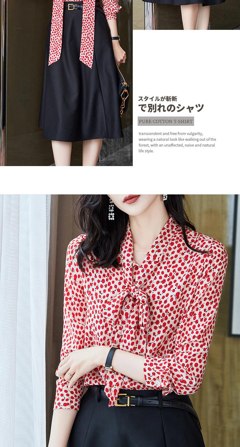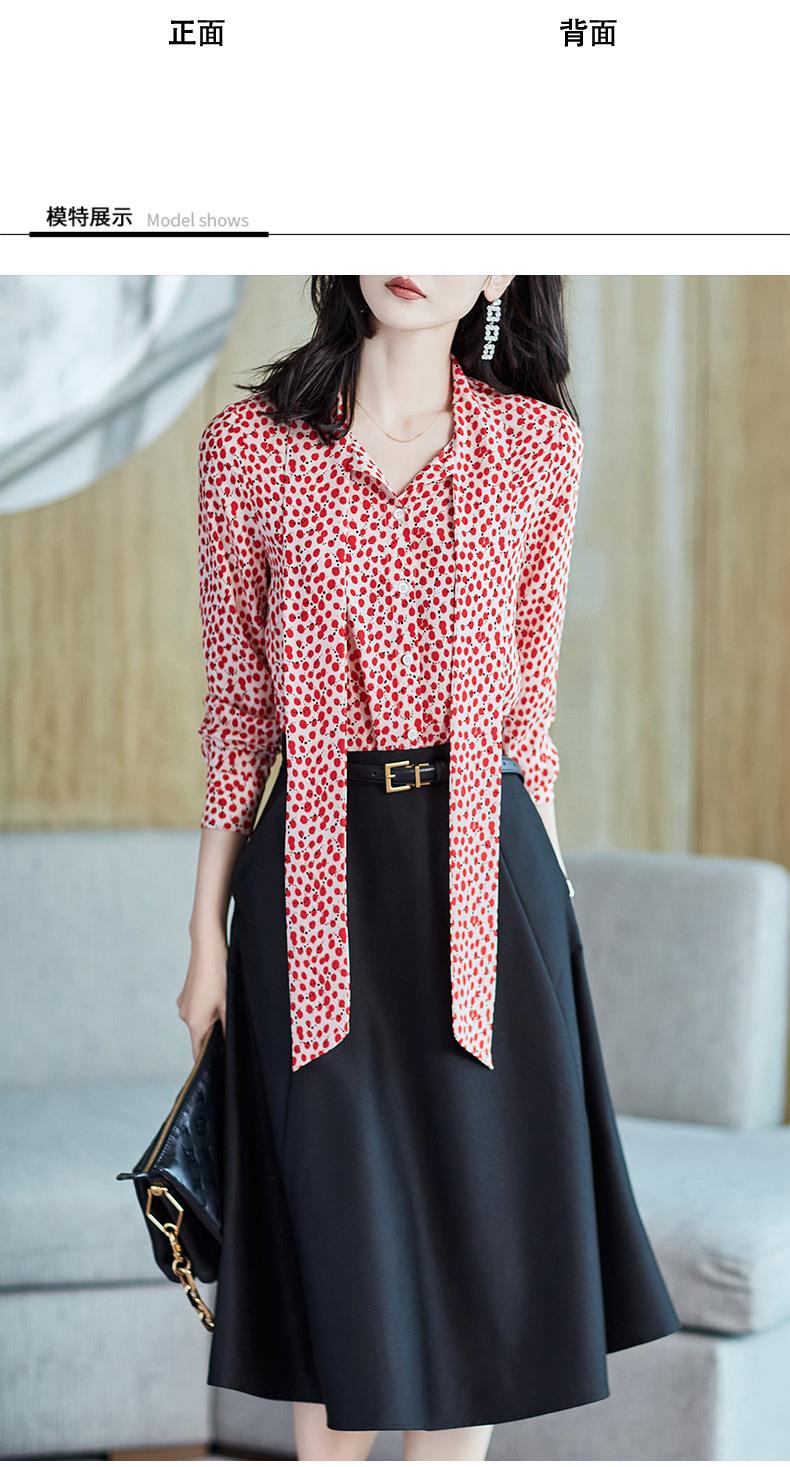 2023秋装新款衬衫女长袖宽松雪纺衫红色女士衬衣A2722