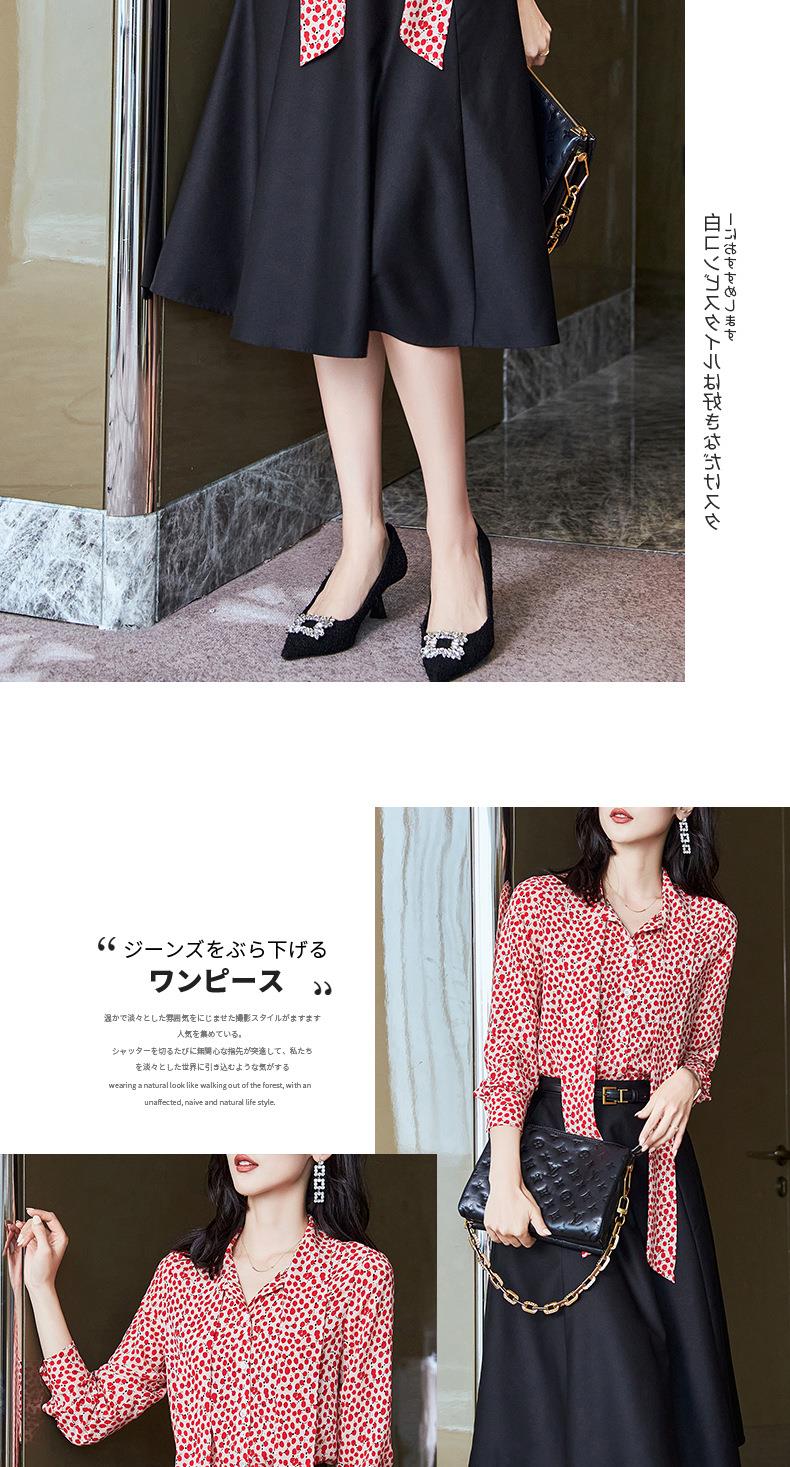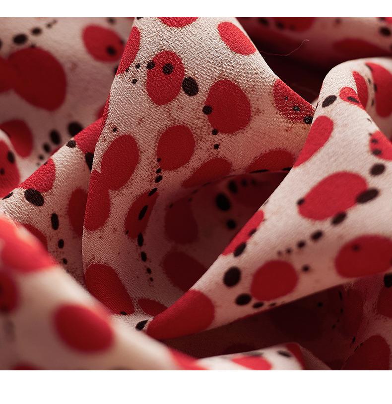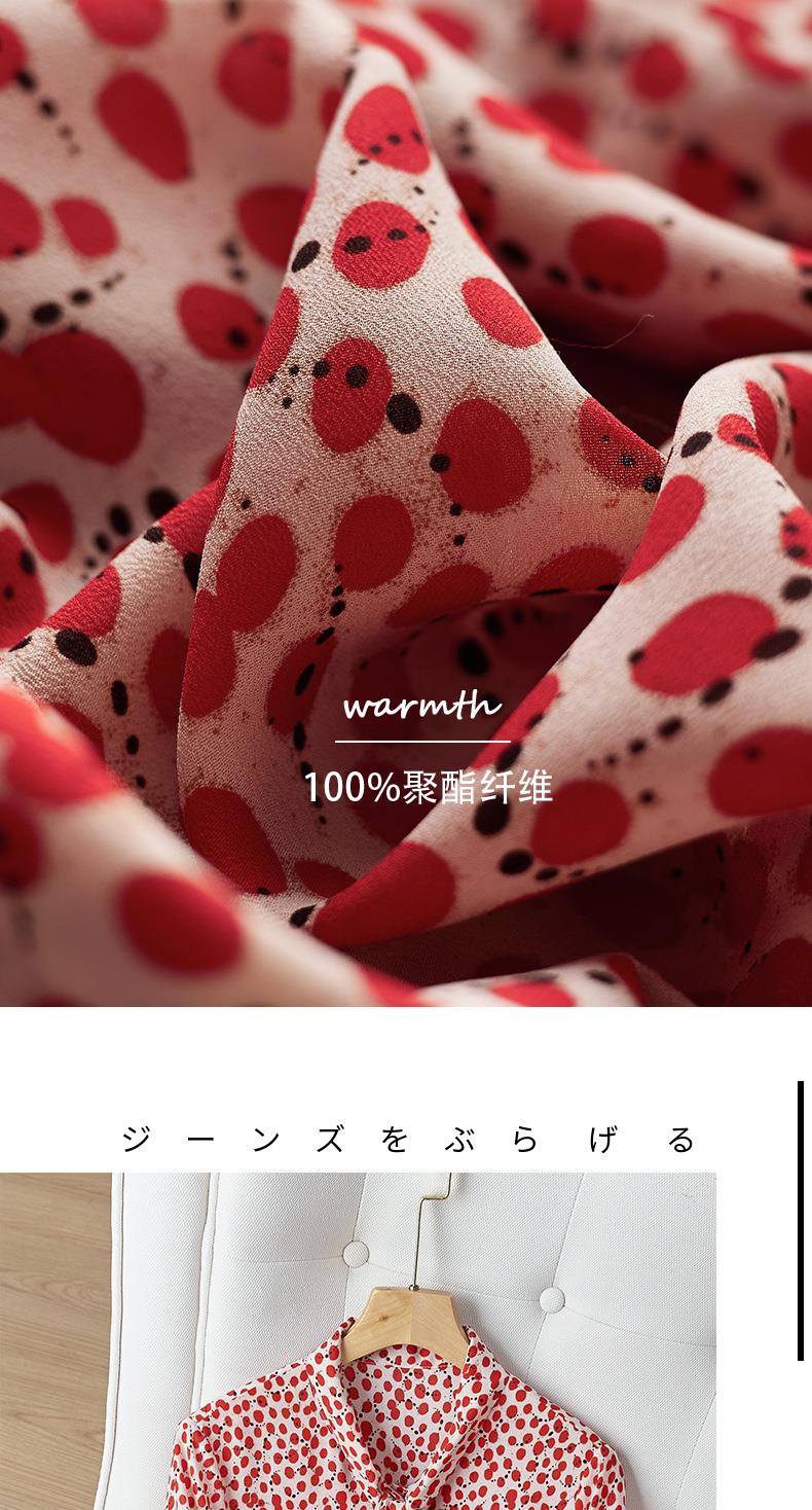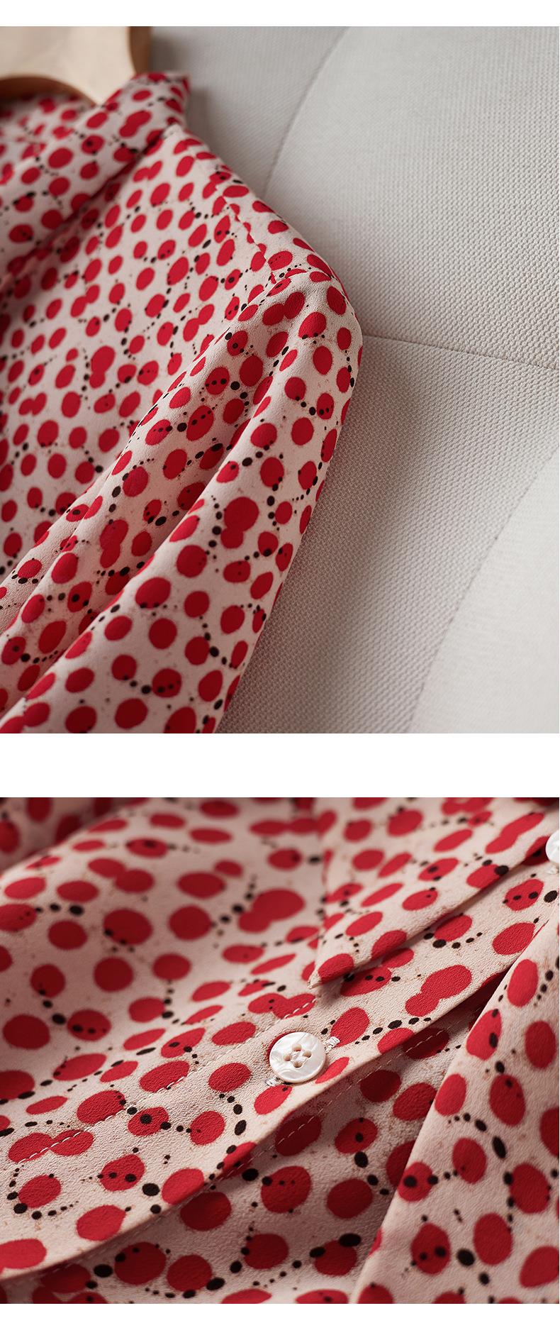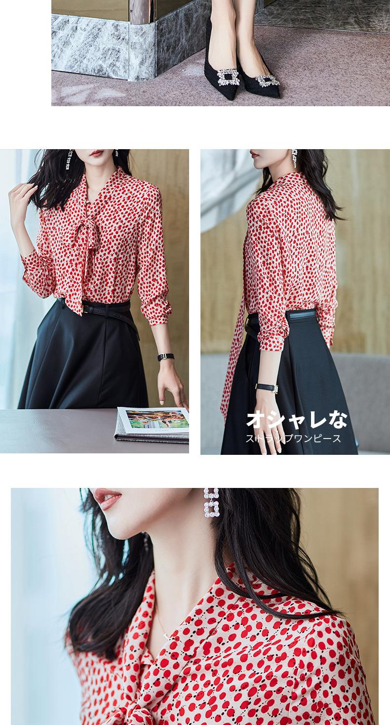 2023秋装新款衬衫女长袖宽松雪纺衫红色女士衬衣A2722