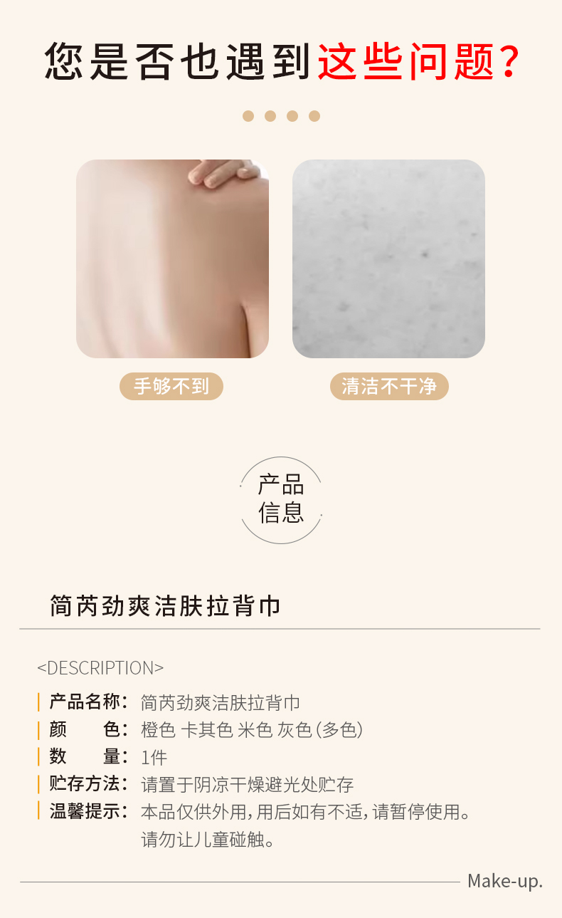 简芮劲爽洁肤拉背巾 混色随机发 (230888)