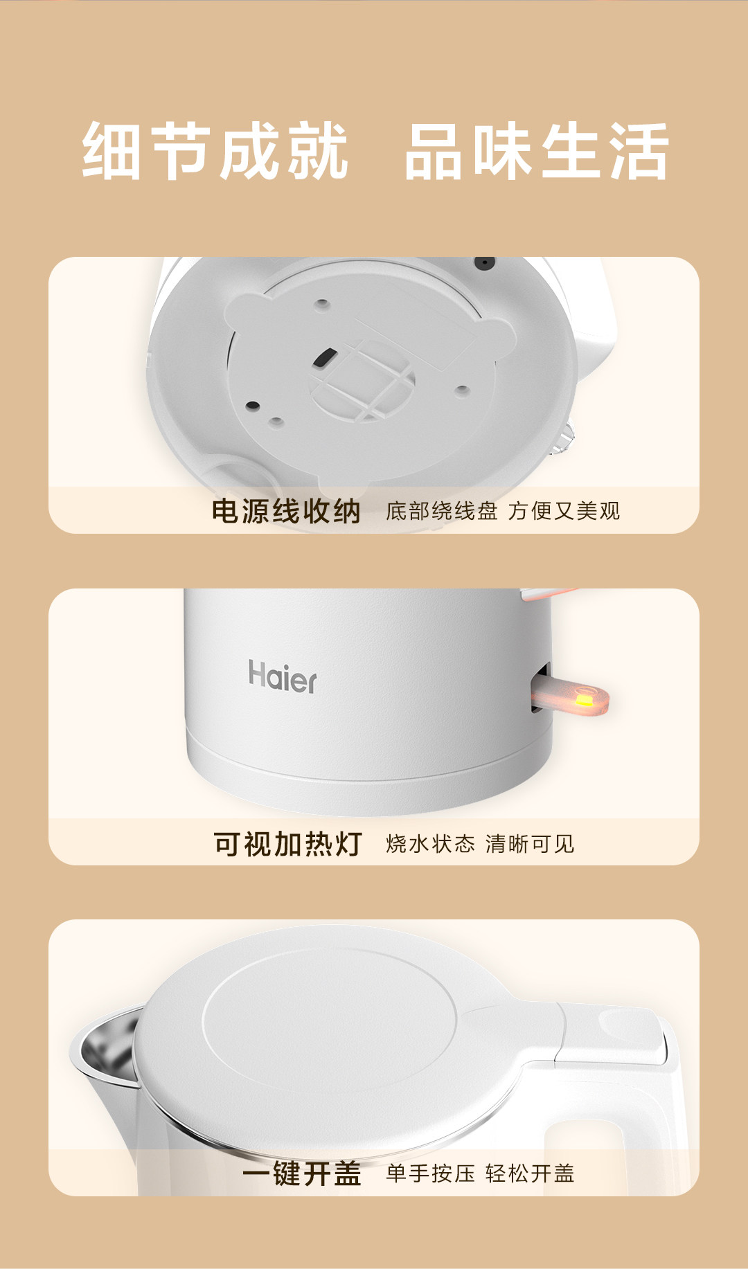 海尔电热水壶家用HKT-K5M17W升级款大功率不锈钢无缝内胆