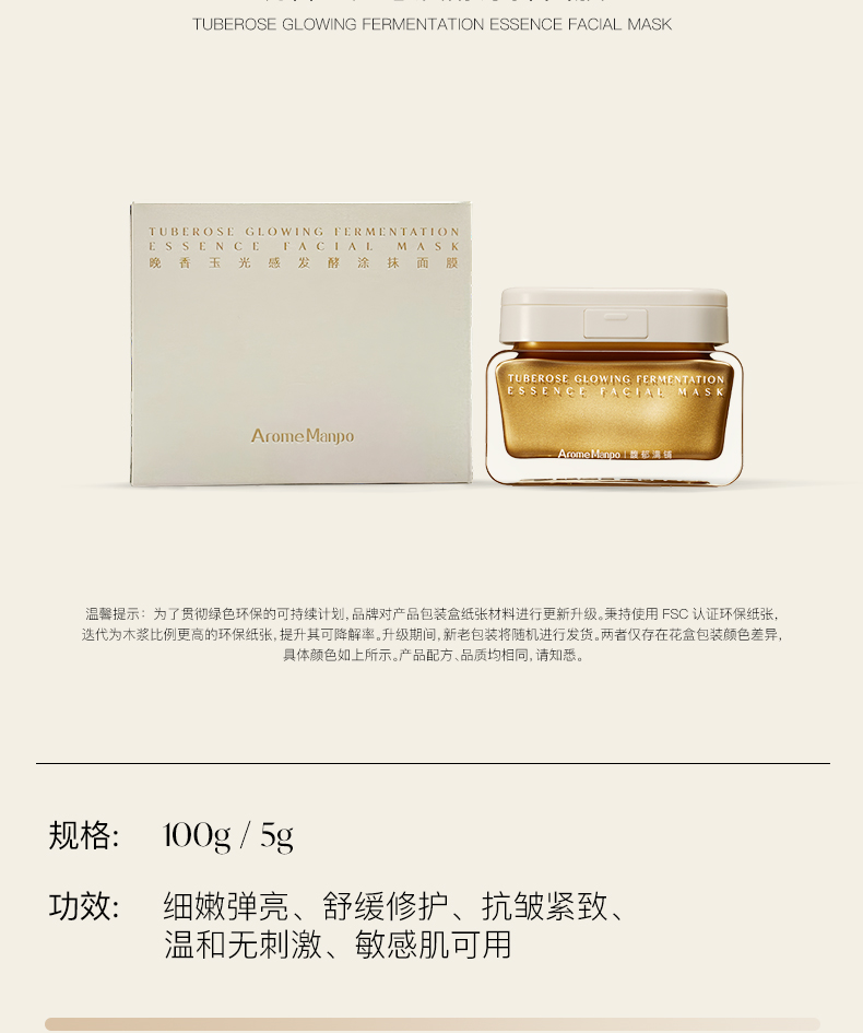 【恬趣轻奢专属】AromeManpo/馥郁满铺晚香玉光感发酵涂抹面膜 100g