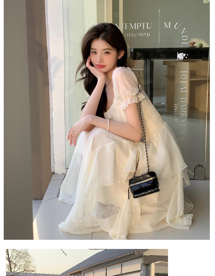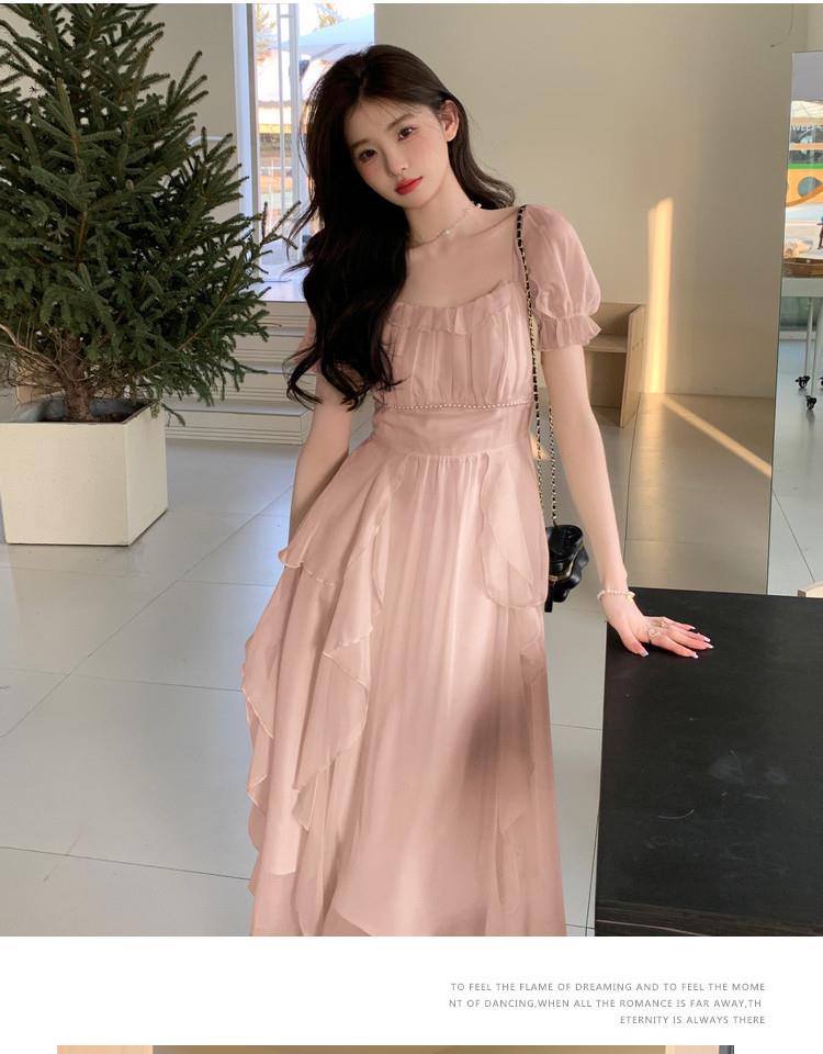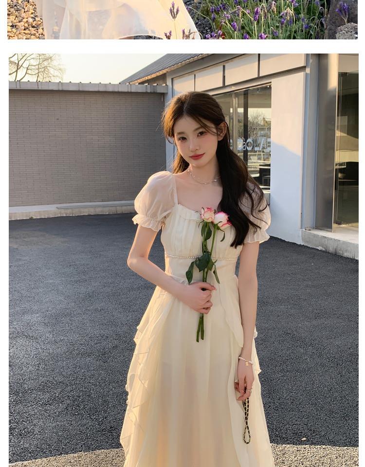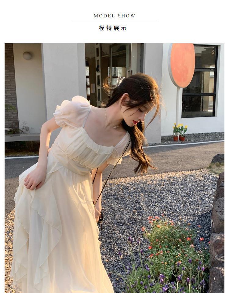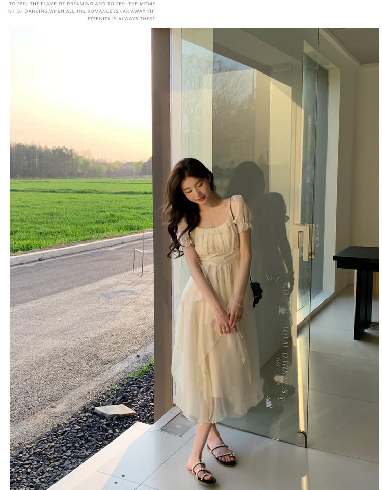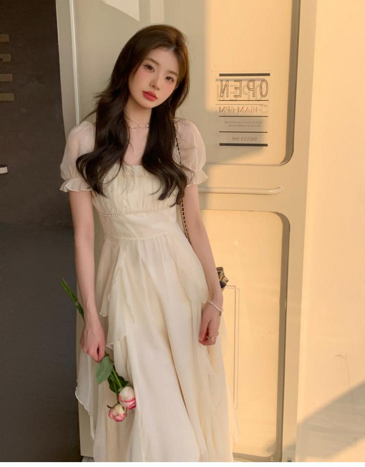 法式方领温柔风仙女长款连衣裙女夏季新款设计感度假海边飘逸裙子