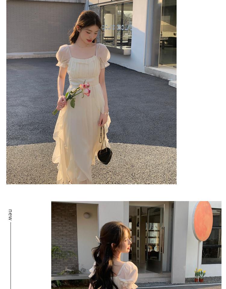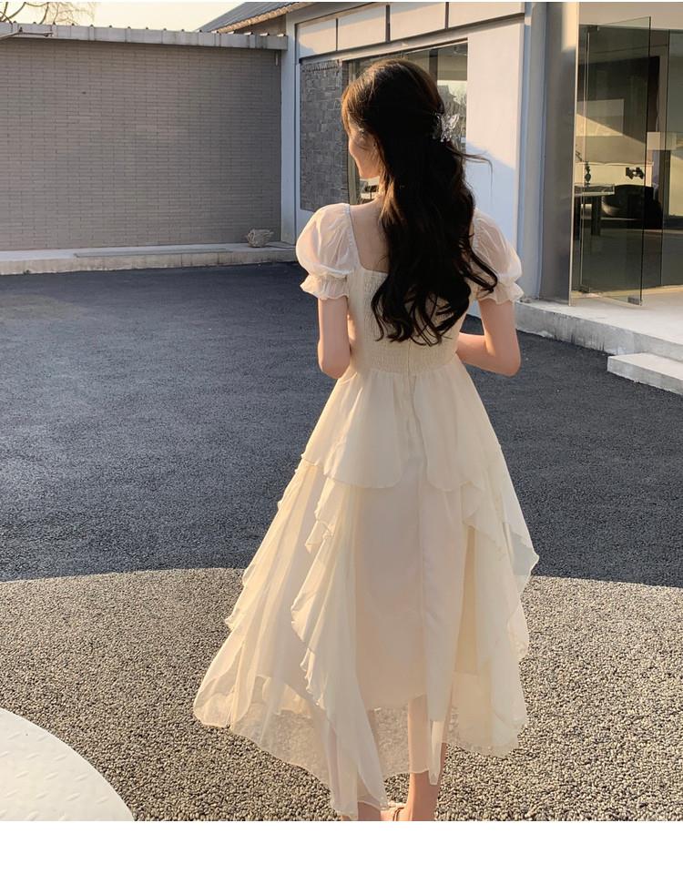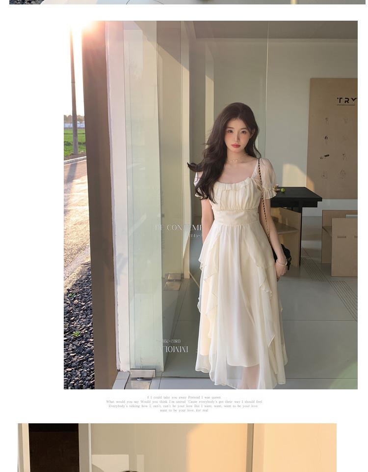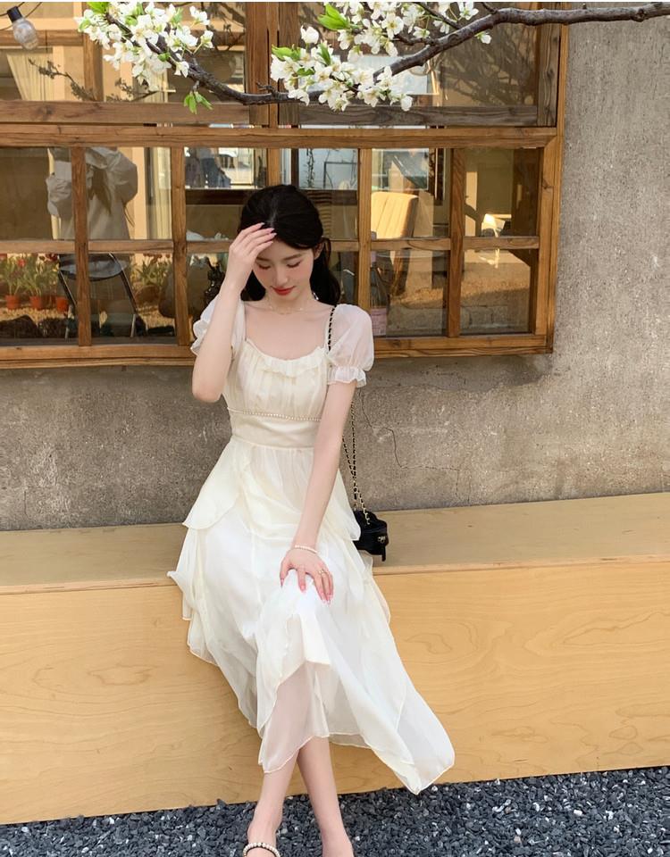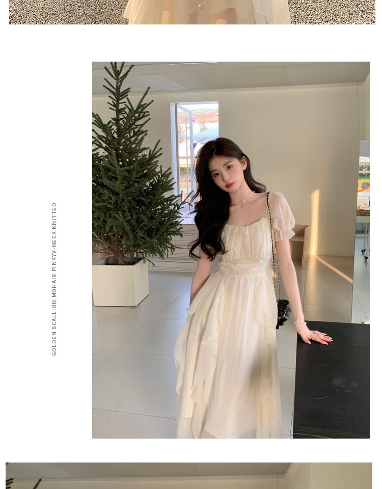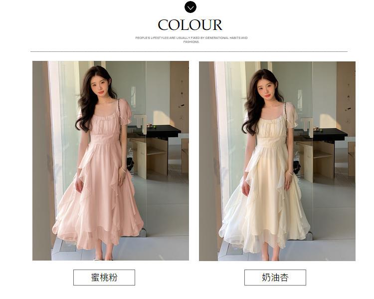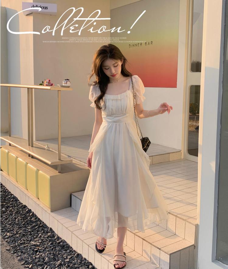法式方领温柔风仙女长款连衣裙女夏季新款设计感度假海边飘逸裙子