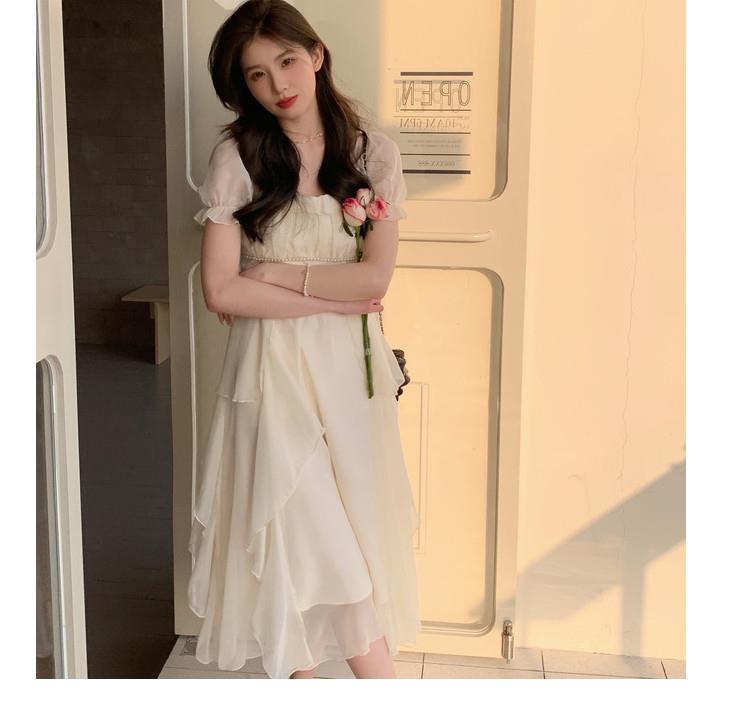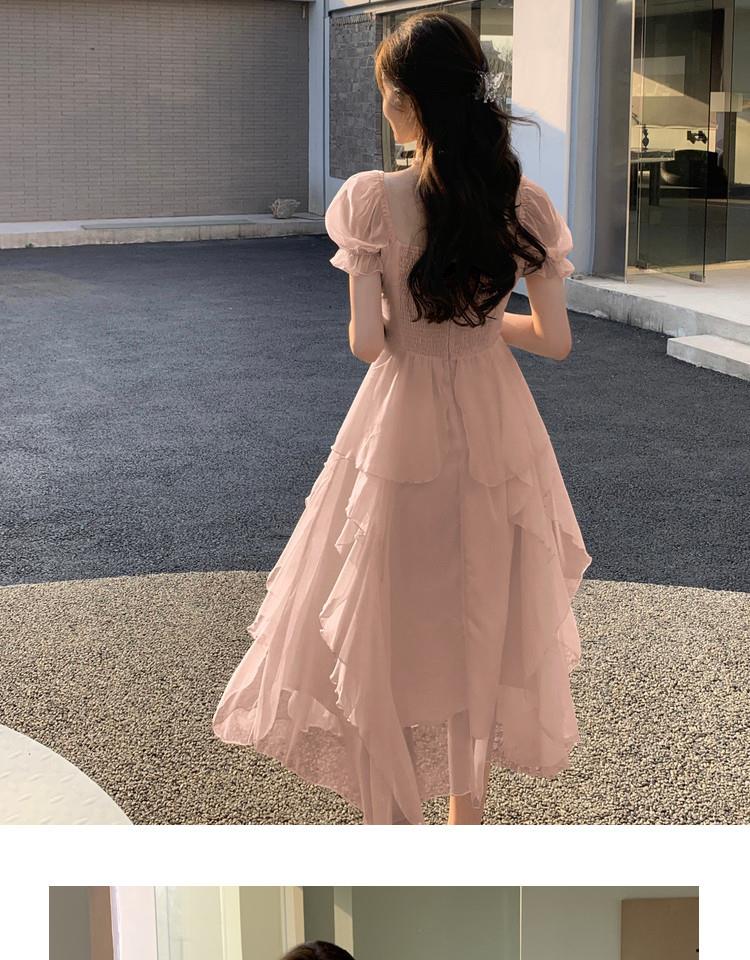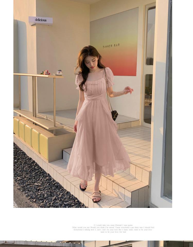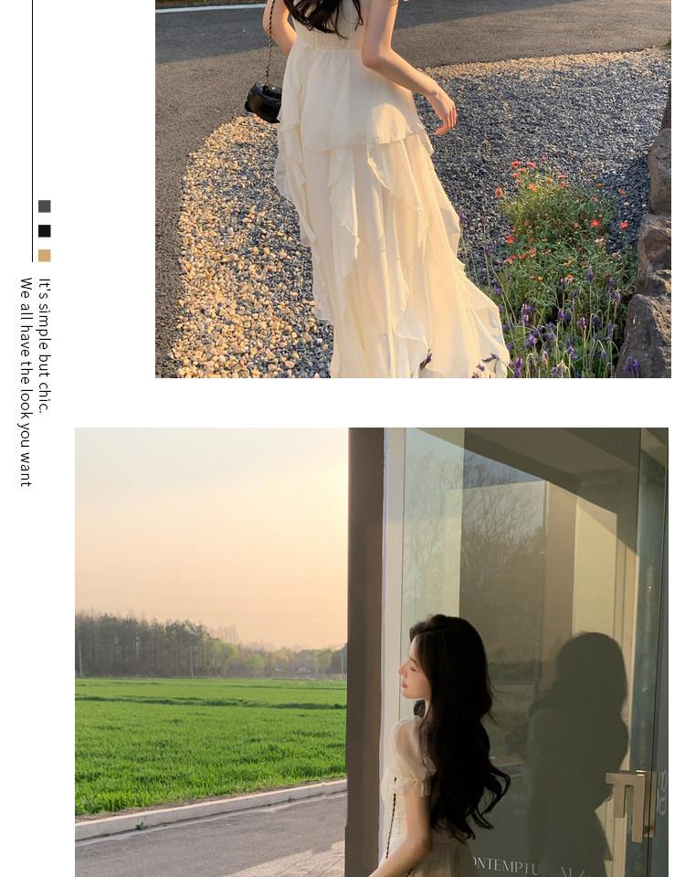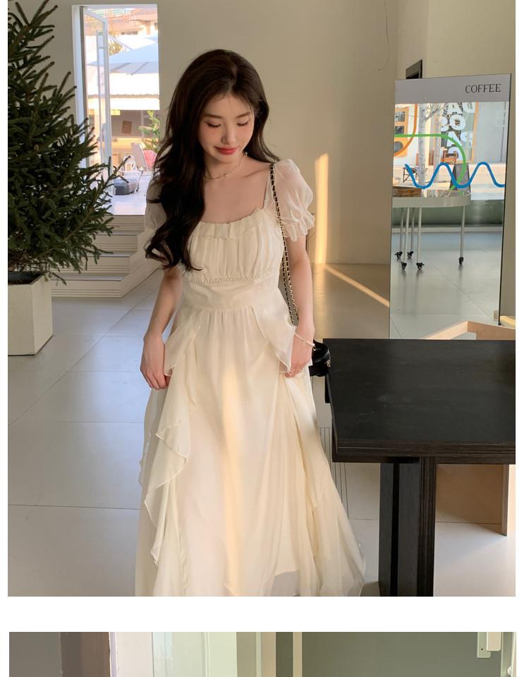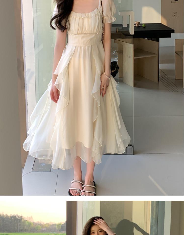 法式方领温柔风仙女长款连衣裙女夏季新款设计感度假海边飘逸裙子